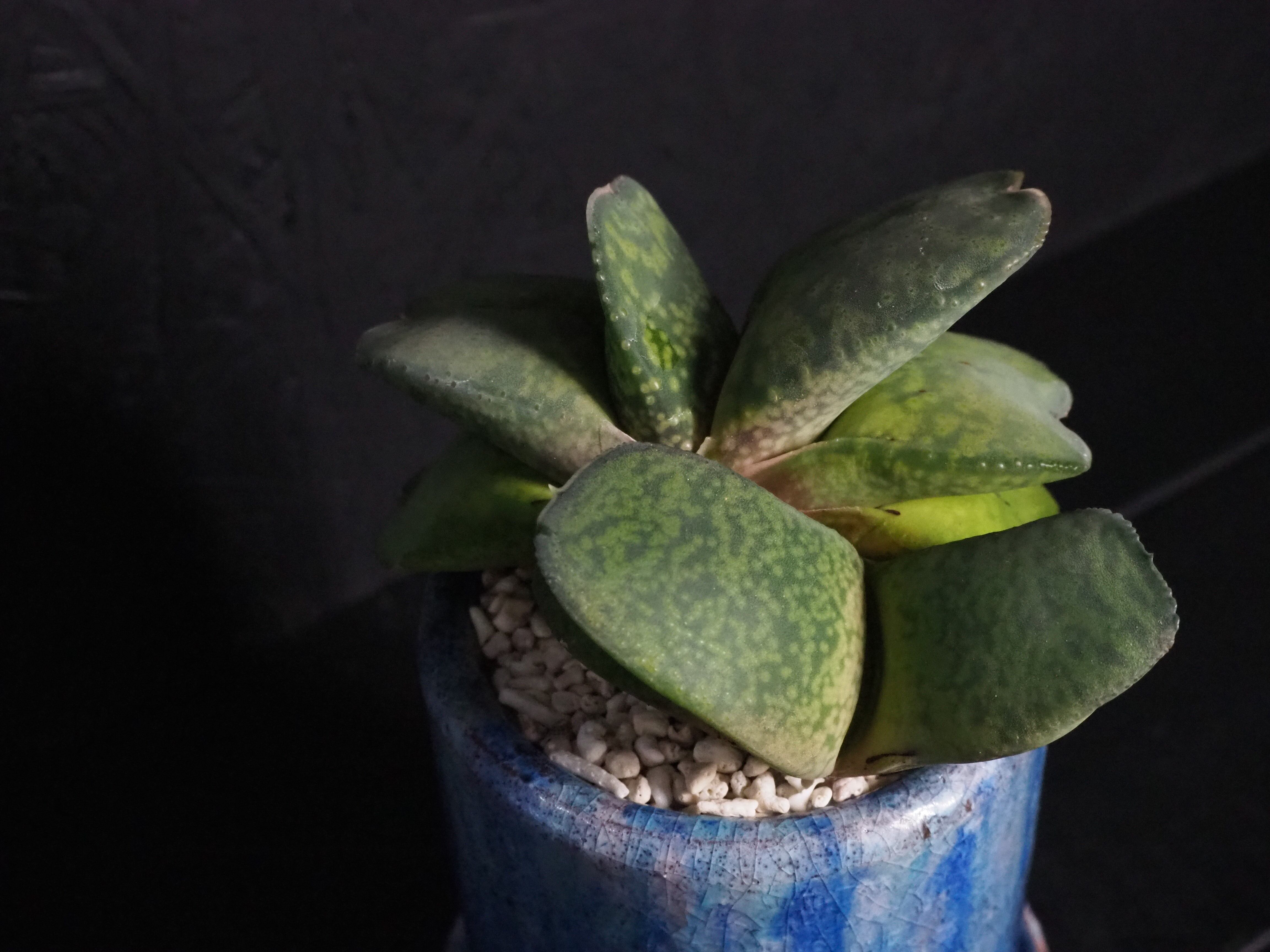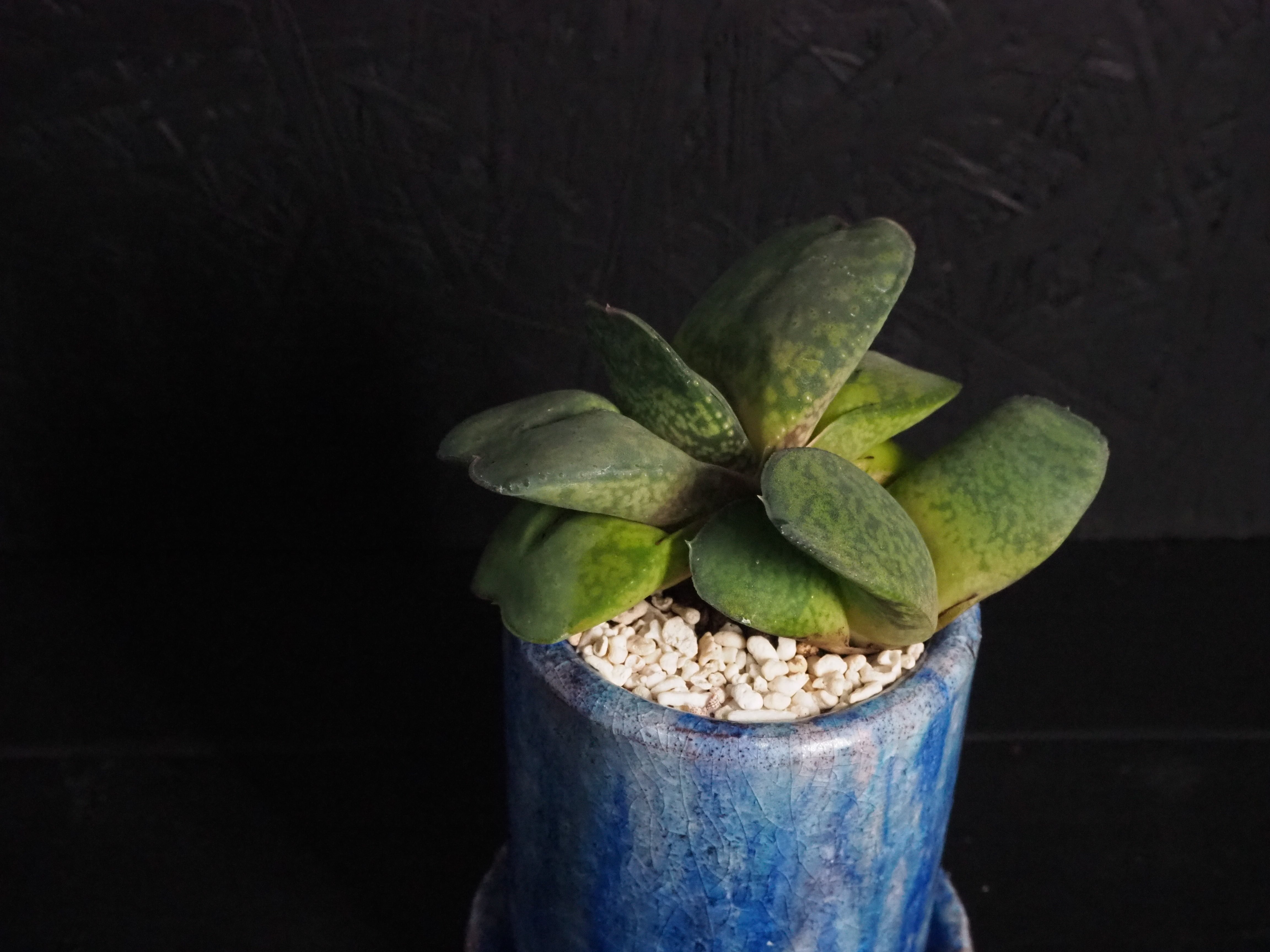 短い葉に引き締まったフォルムに仔株も吹いており、水捌け抜群の弊社オリジナルブレンドの用土で植栽済み。