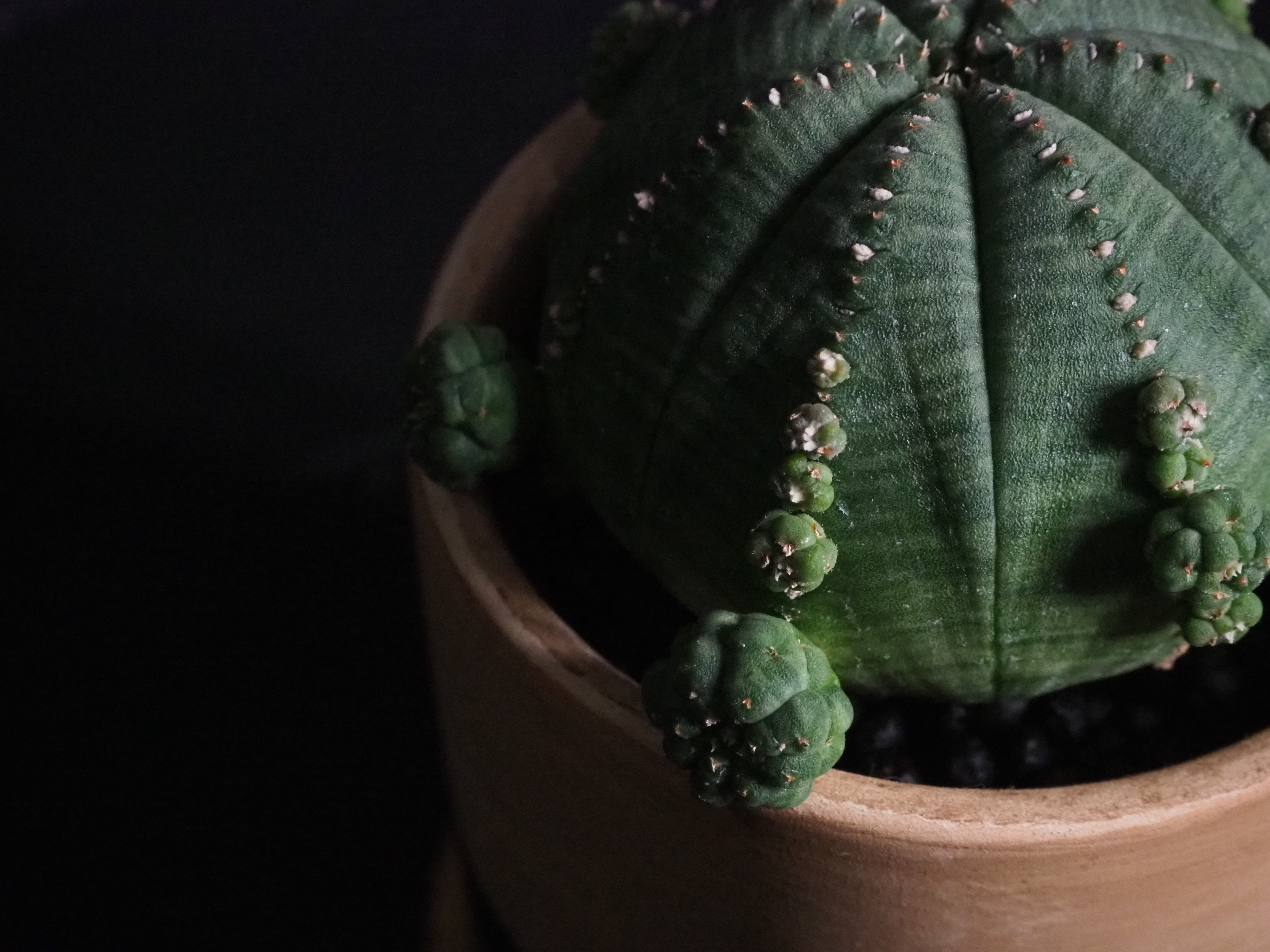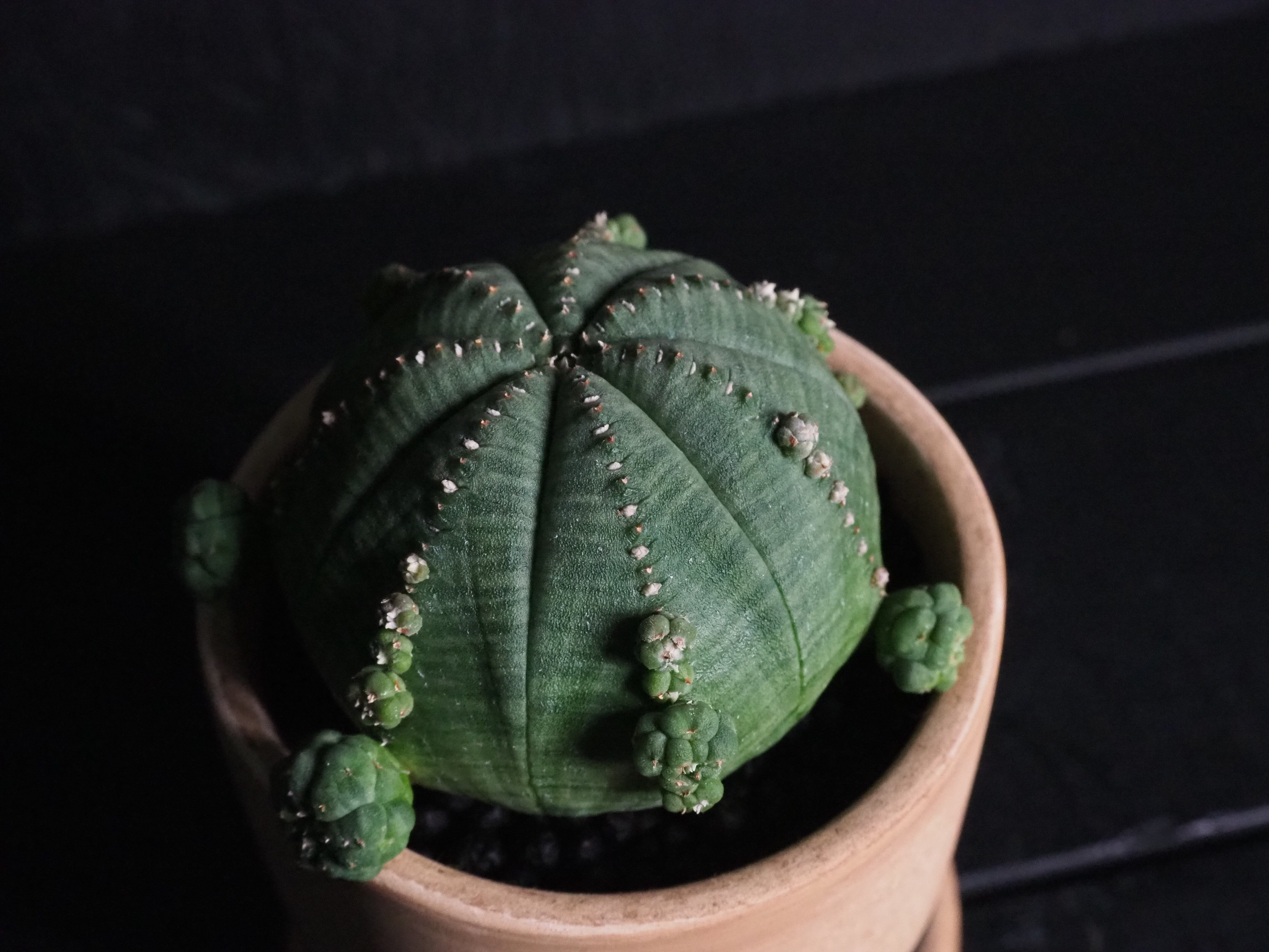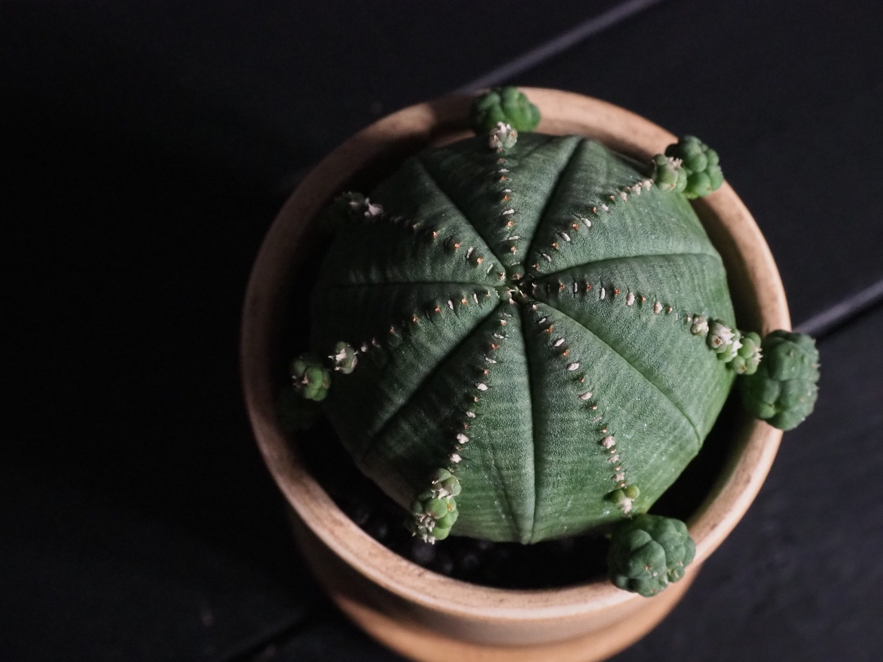 多肉系ユーフォルビア属の中でも暑さ寒さには割と強い方です。夏は特に気にする必要はありません。冬場は気温が10℃位になり始めたら室内の暖かい場所に取り込むようにしましょう。