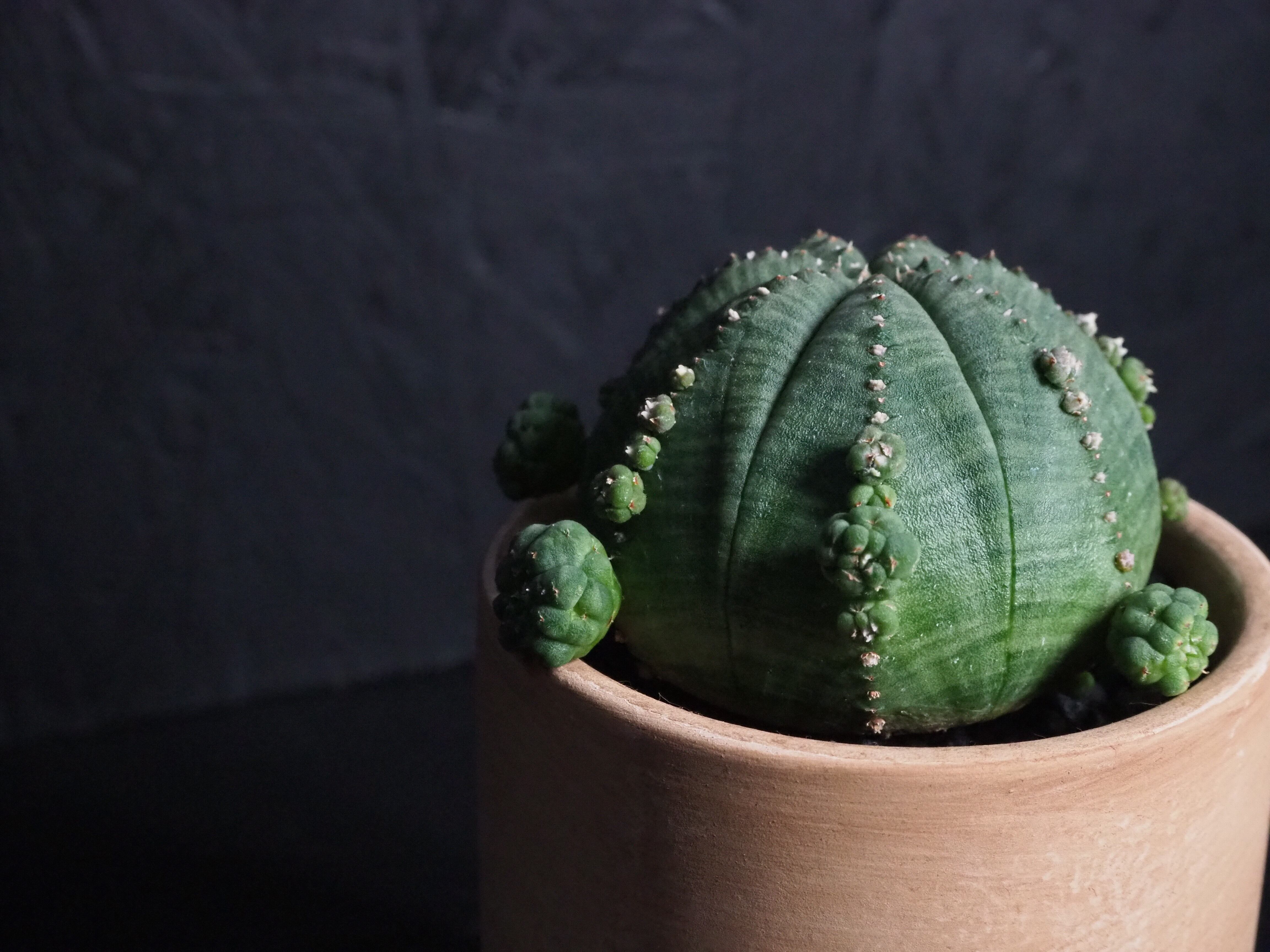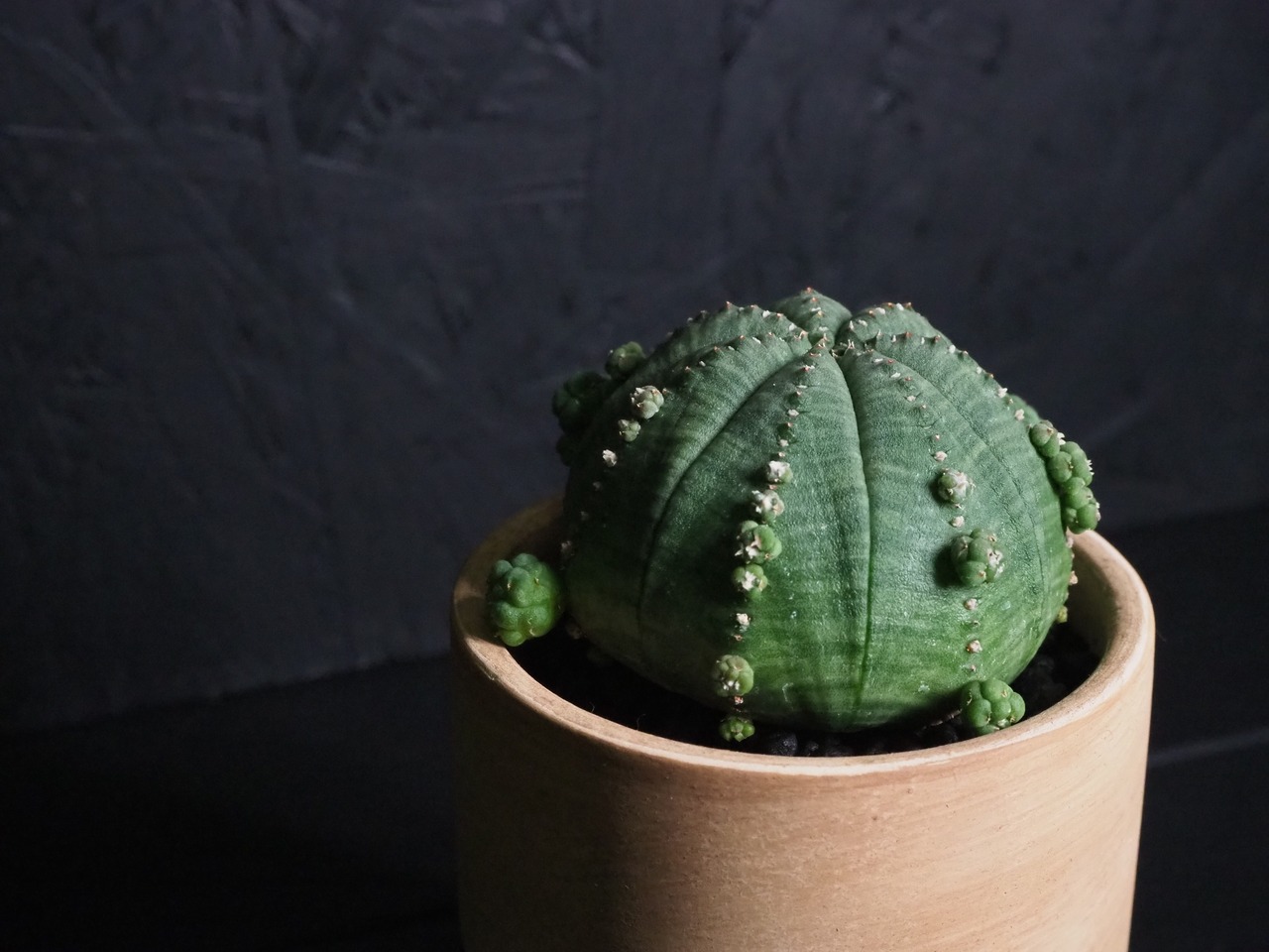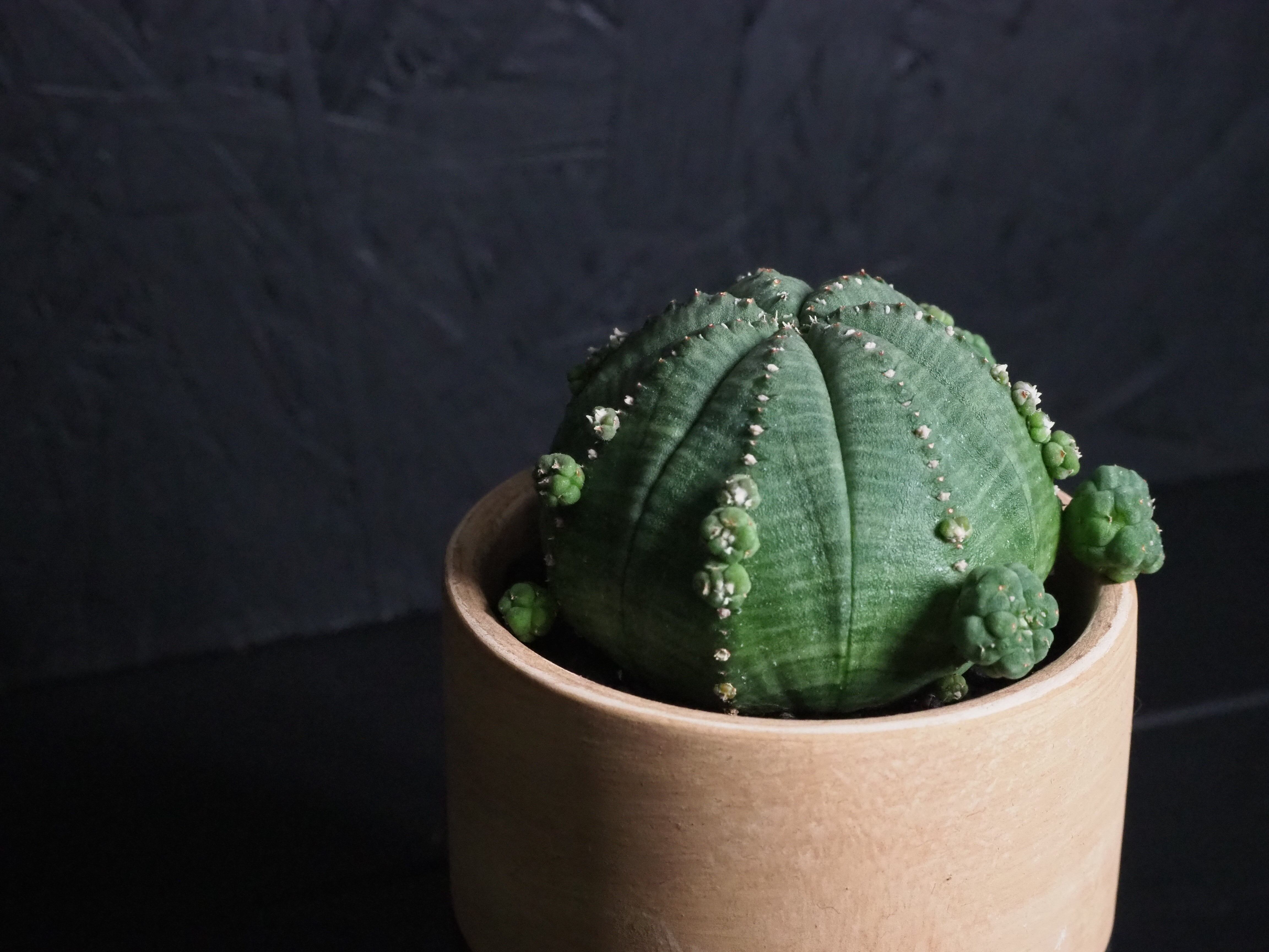 多肉系ユーフォルビア属の中でも暑さ寒さには割と強い方です。夏は特に気にする必要はありません。冬場は気温が10℃位になり始めたら室内の暖かい場所に取り込むようにしましょう。