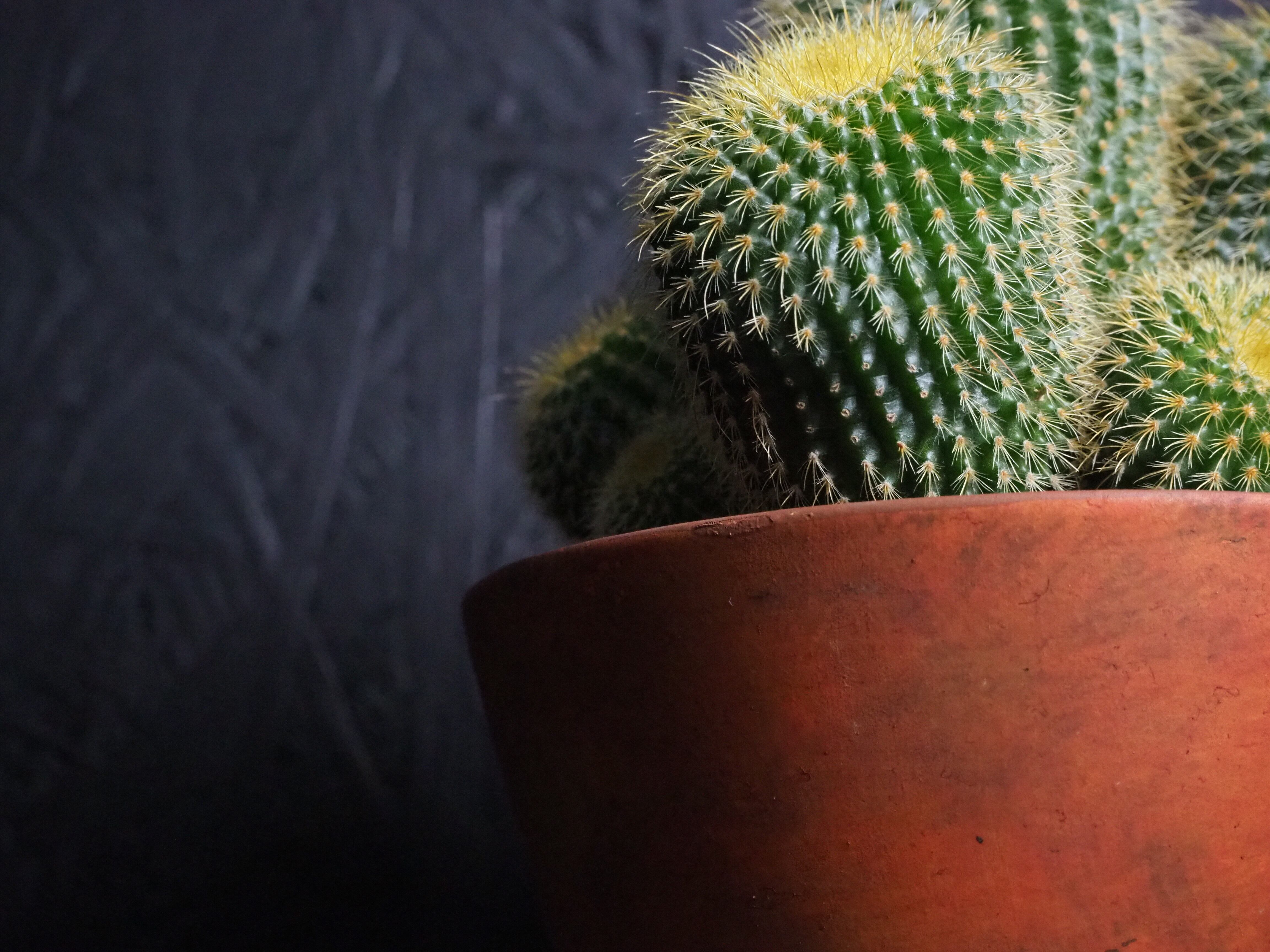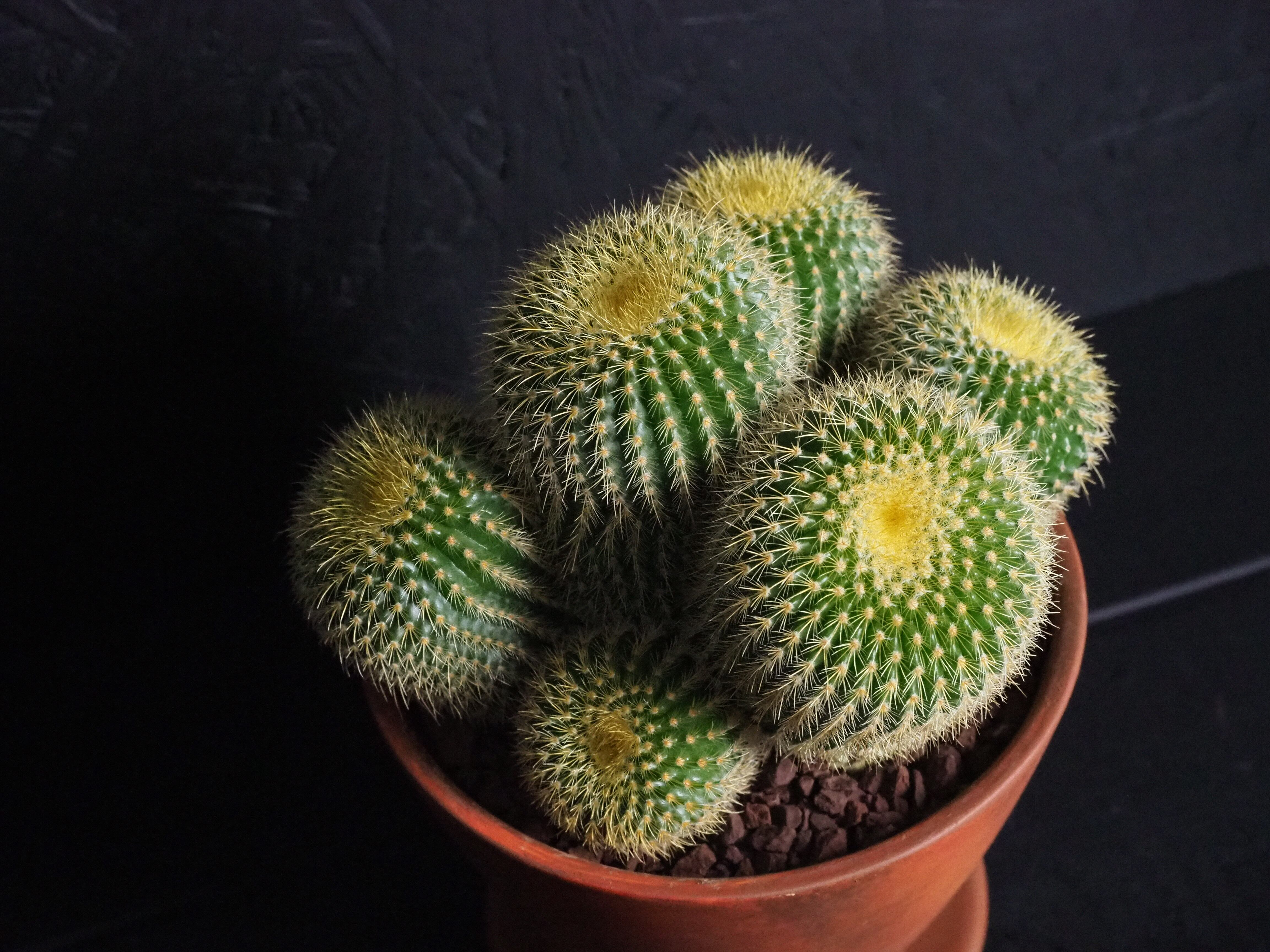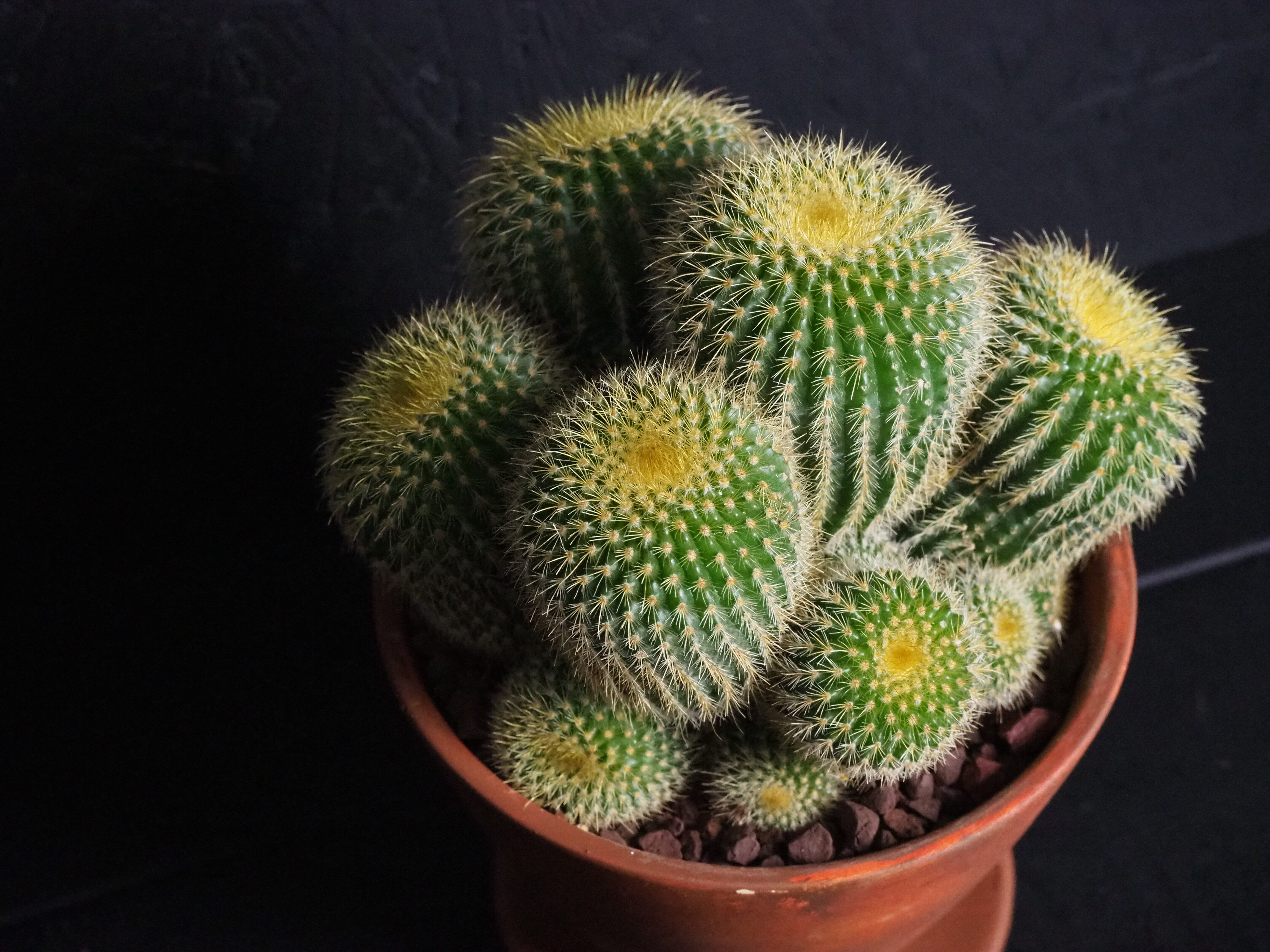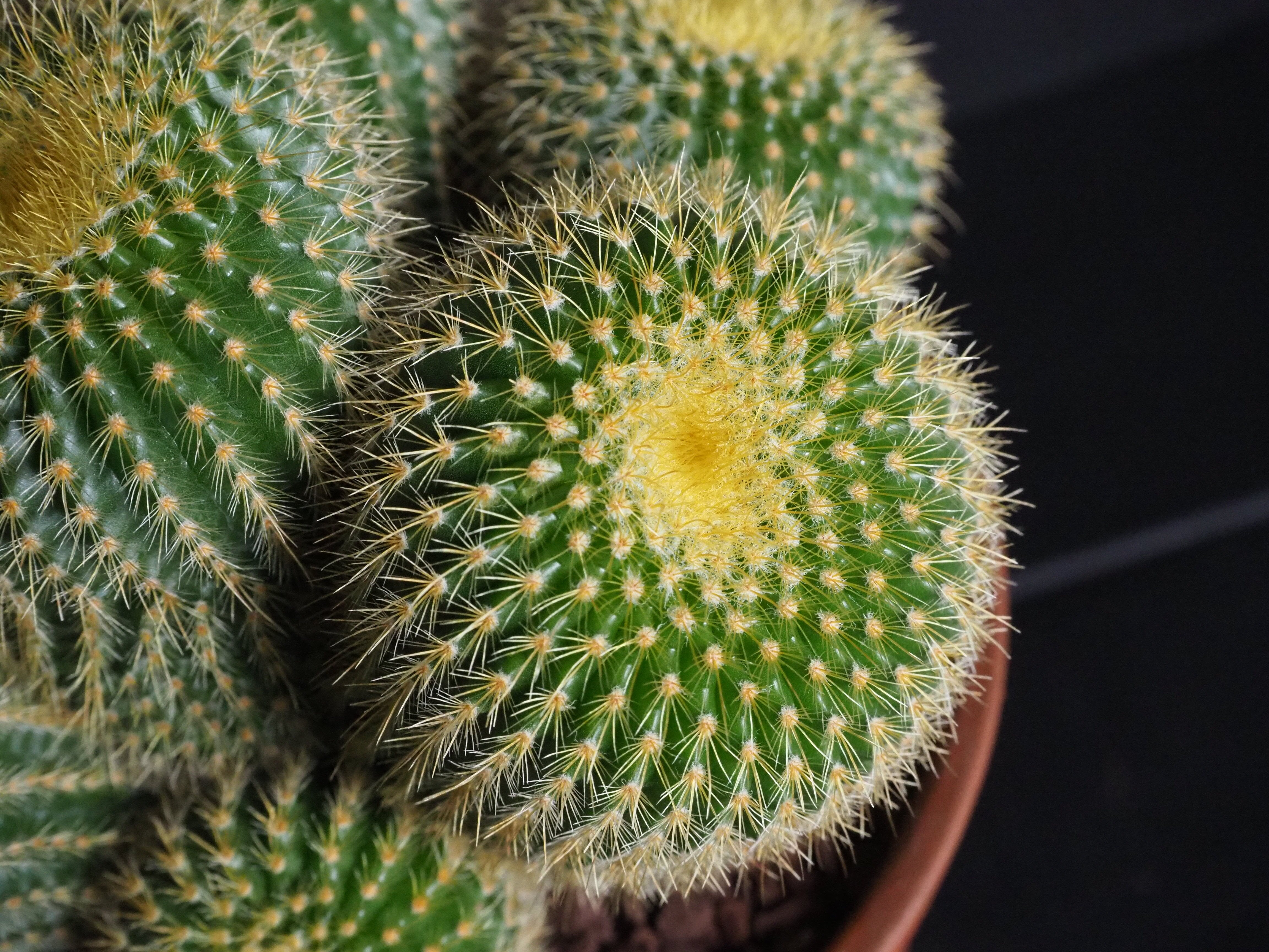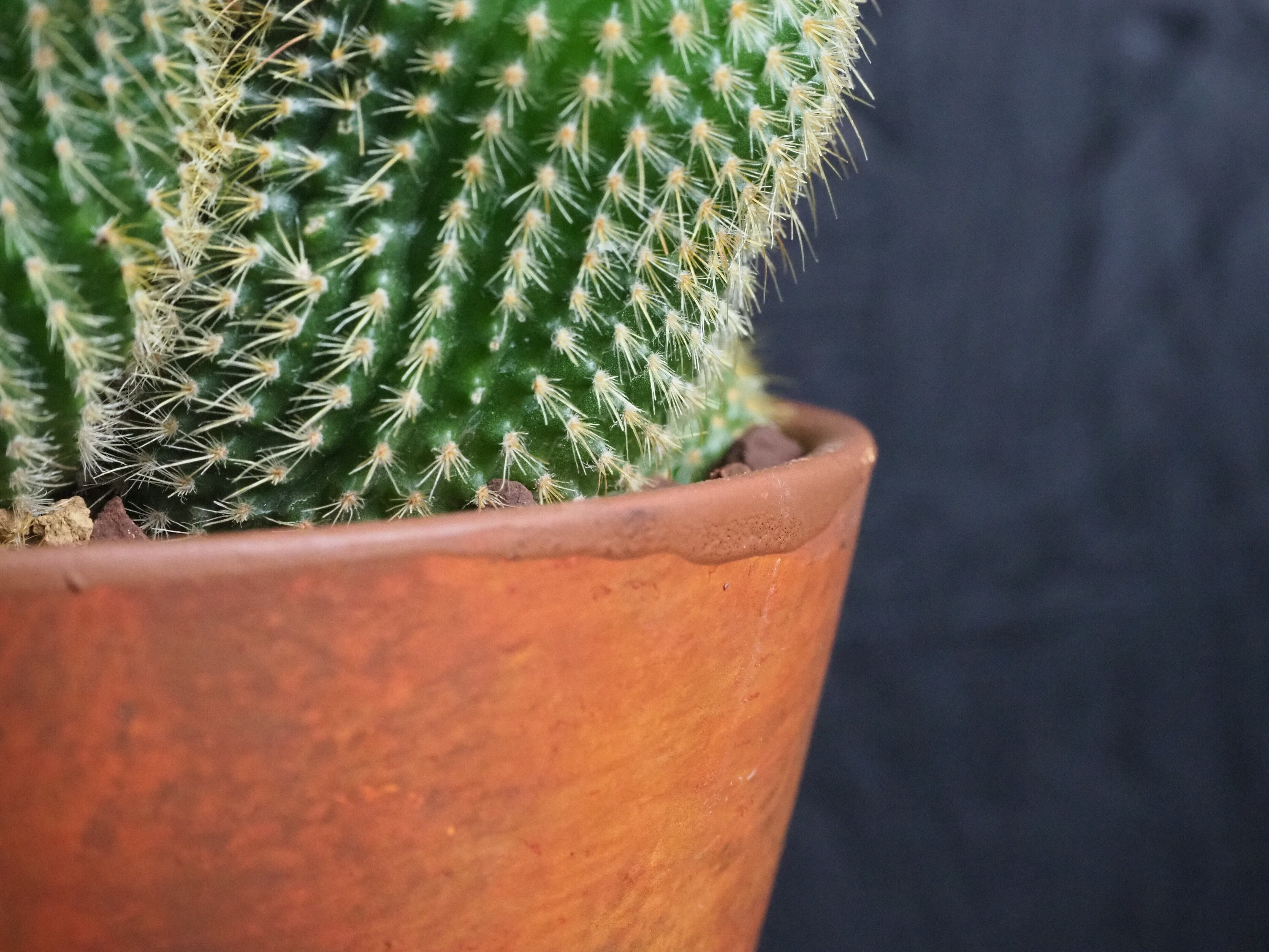 金色の棘は触れても痛くないサボテン。昔、サボテンの流通がそれほど多くなかった時代に多く出回っていた品種です。燦々と降り注ぐ太陽光を浴びて金色に輝く姿は大変美しいです。