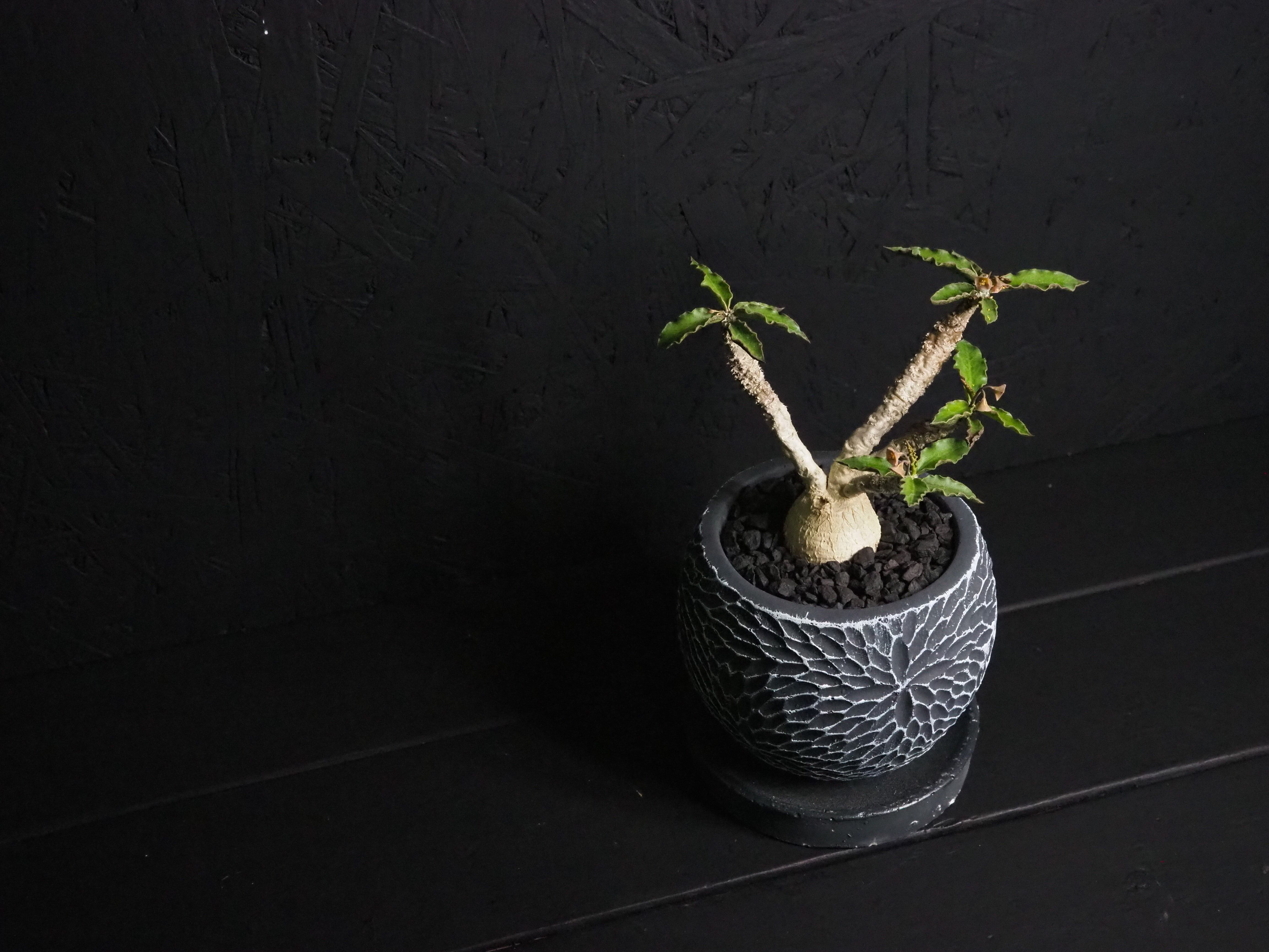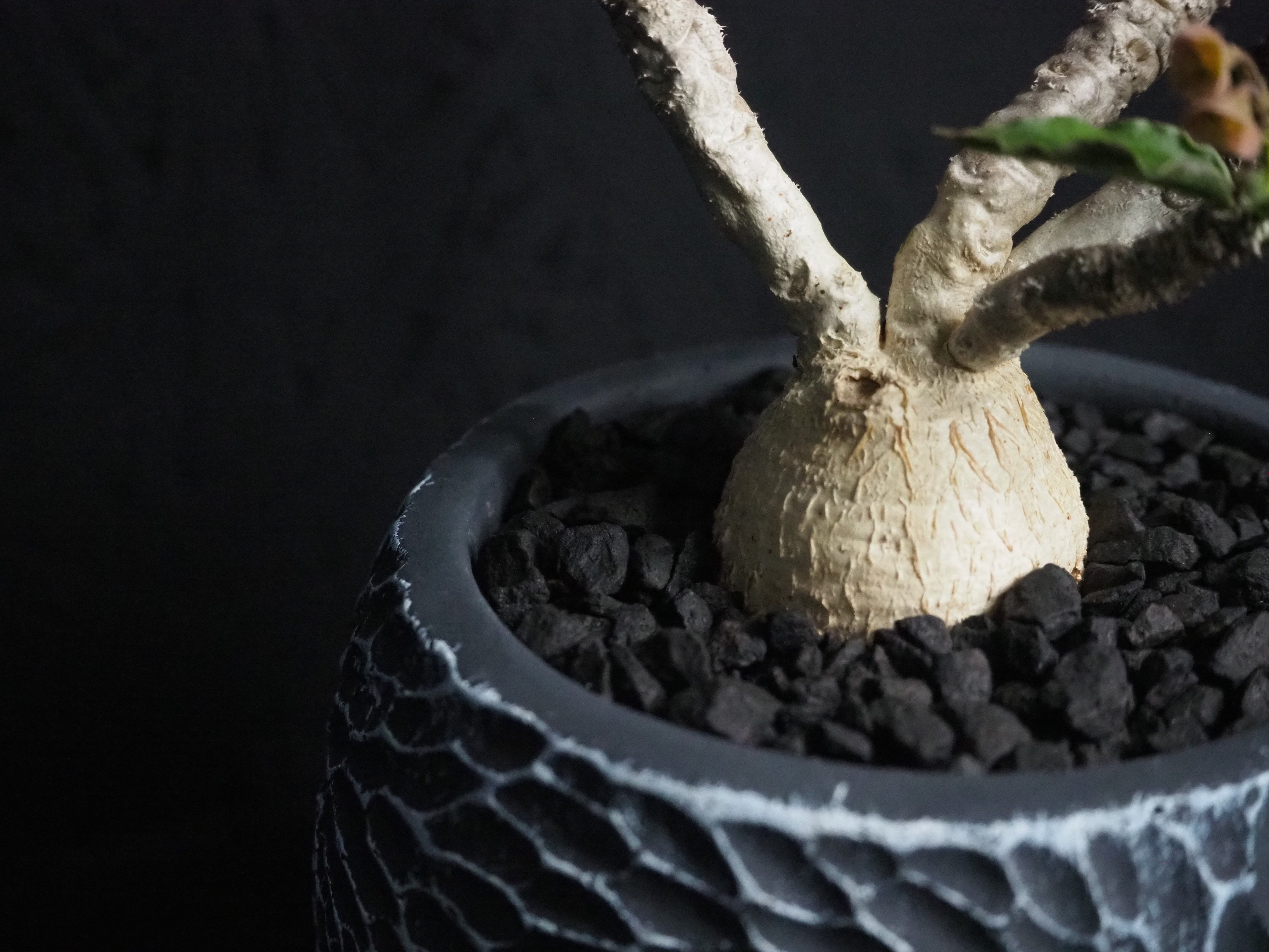 そして何より塊根部の太さ!35㎜!!手乗りサイズなのにしっかり太ってドッシリした抜群の安定感がチャームポイントです。