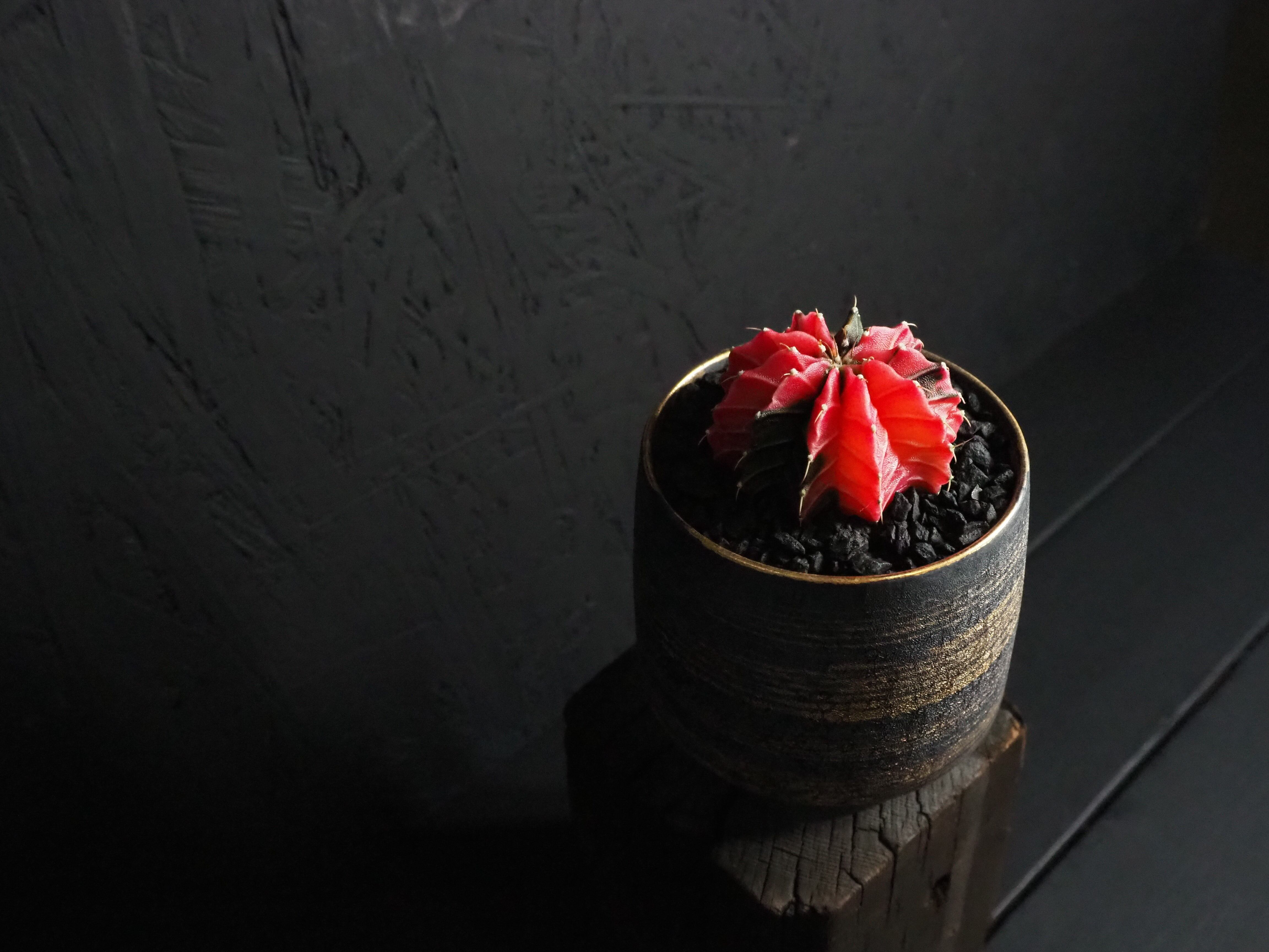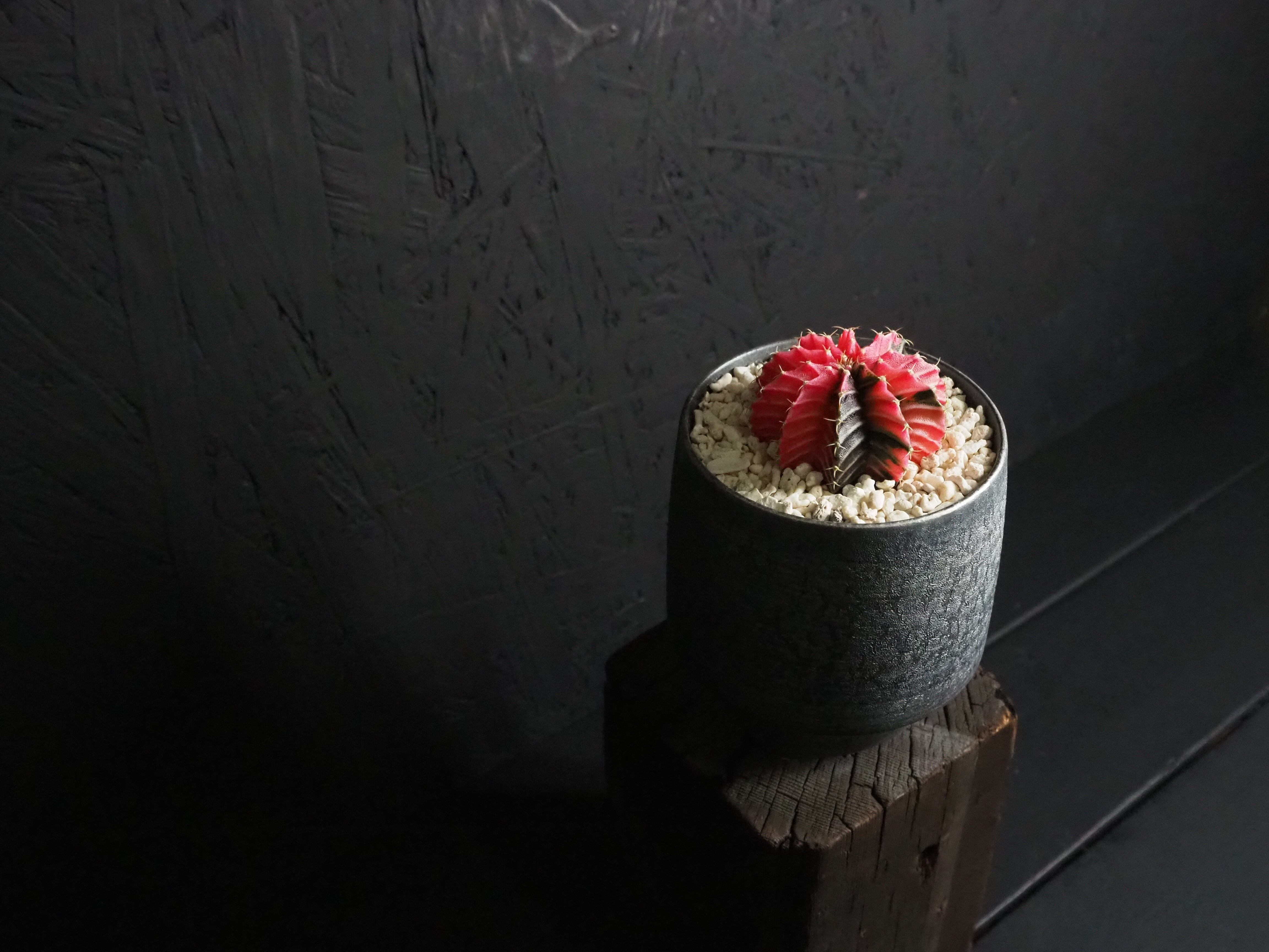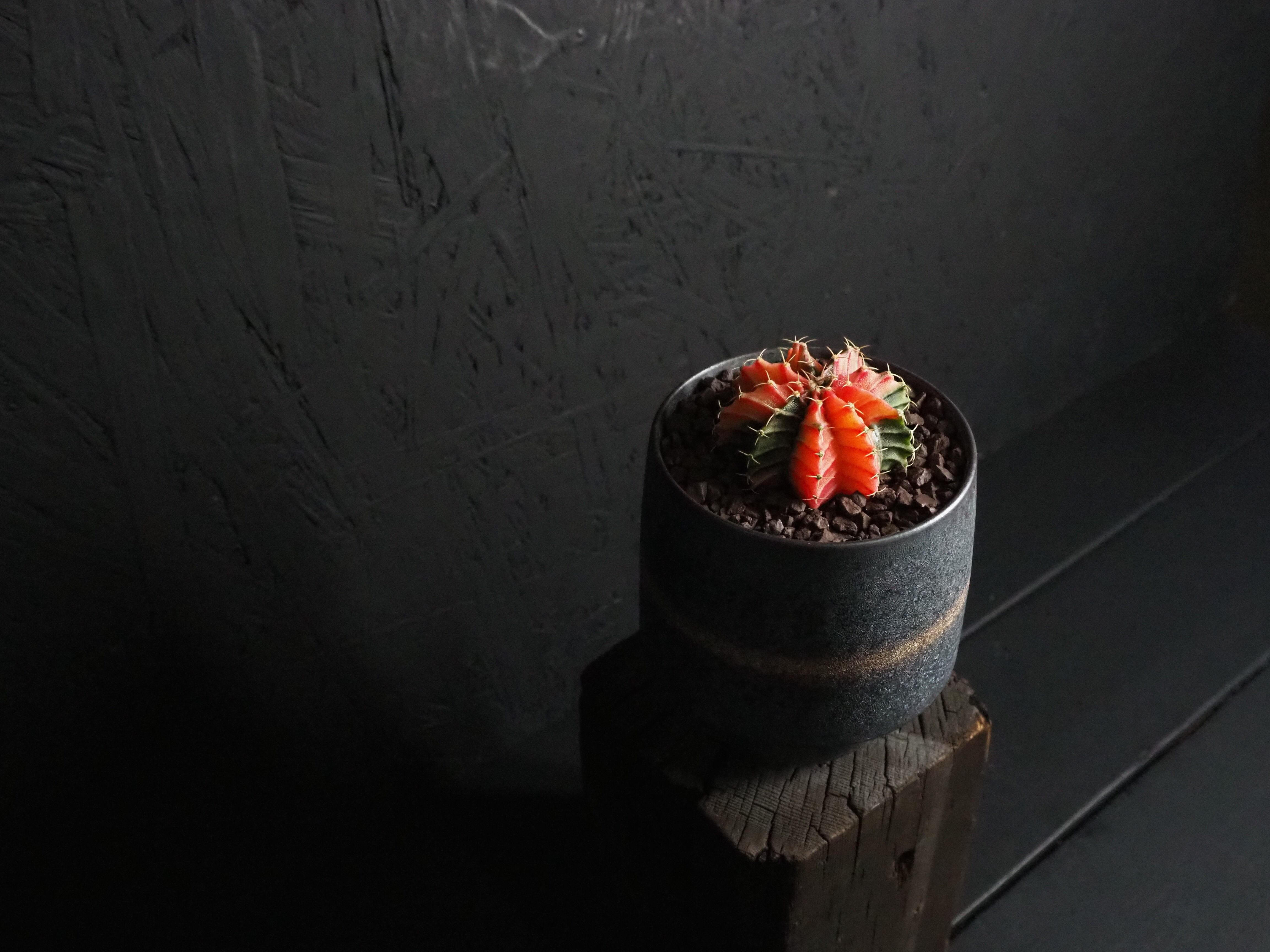 赤系、オレンジ系、ピンク系など、発色が大変強く非常に鮮やかで美しいのが最大の特徴です。それらが幾何学的な模様で絡みあい発色する様は正にアメージング。素晴らしいハイブリッドサボテンです。