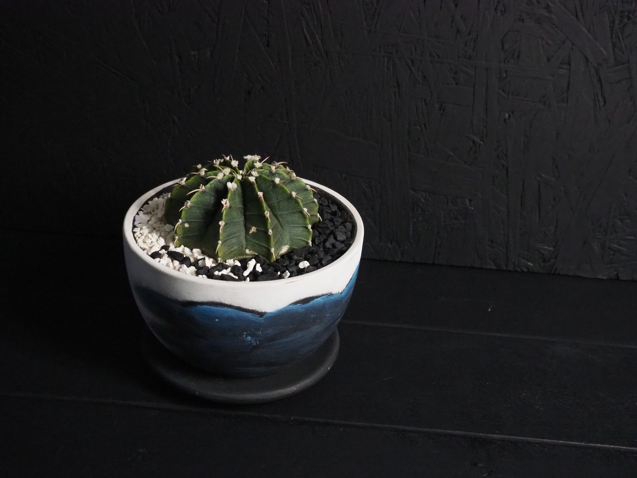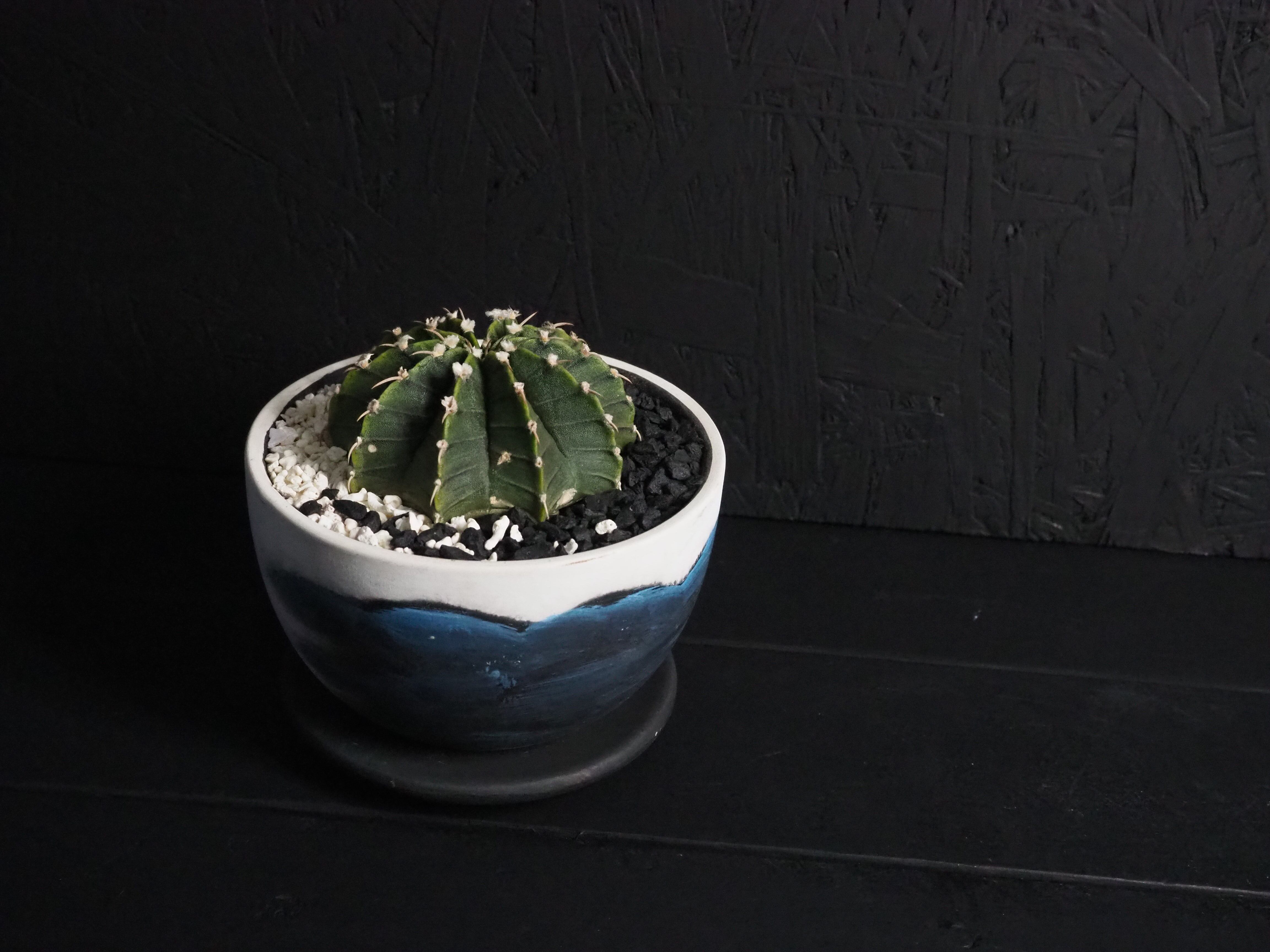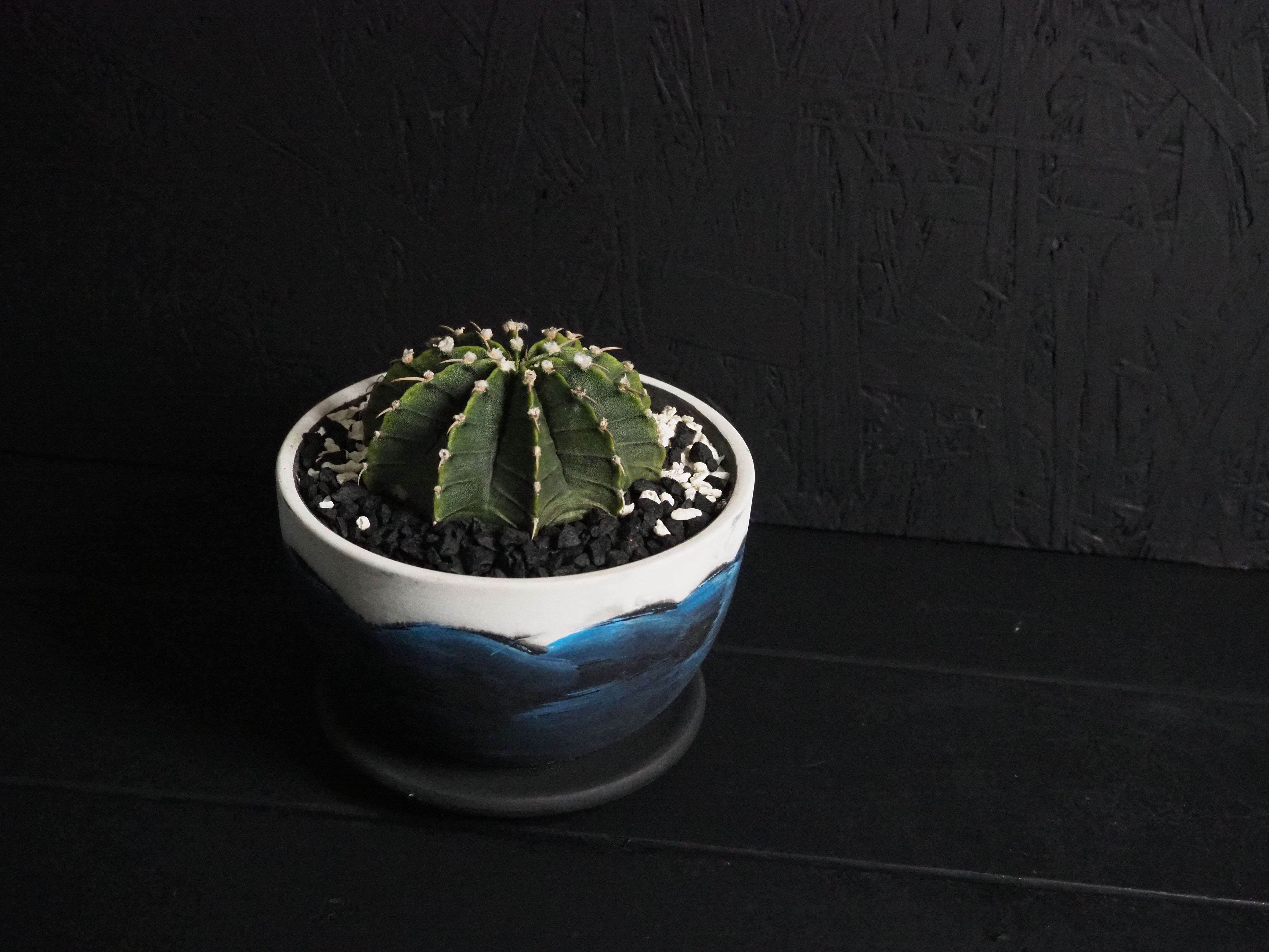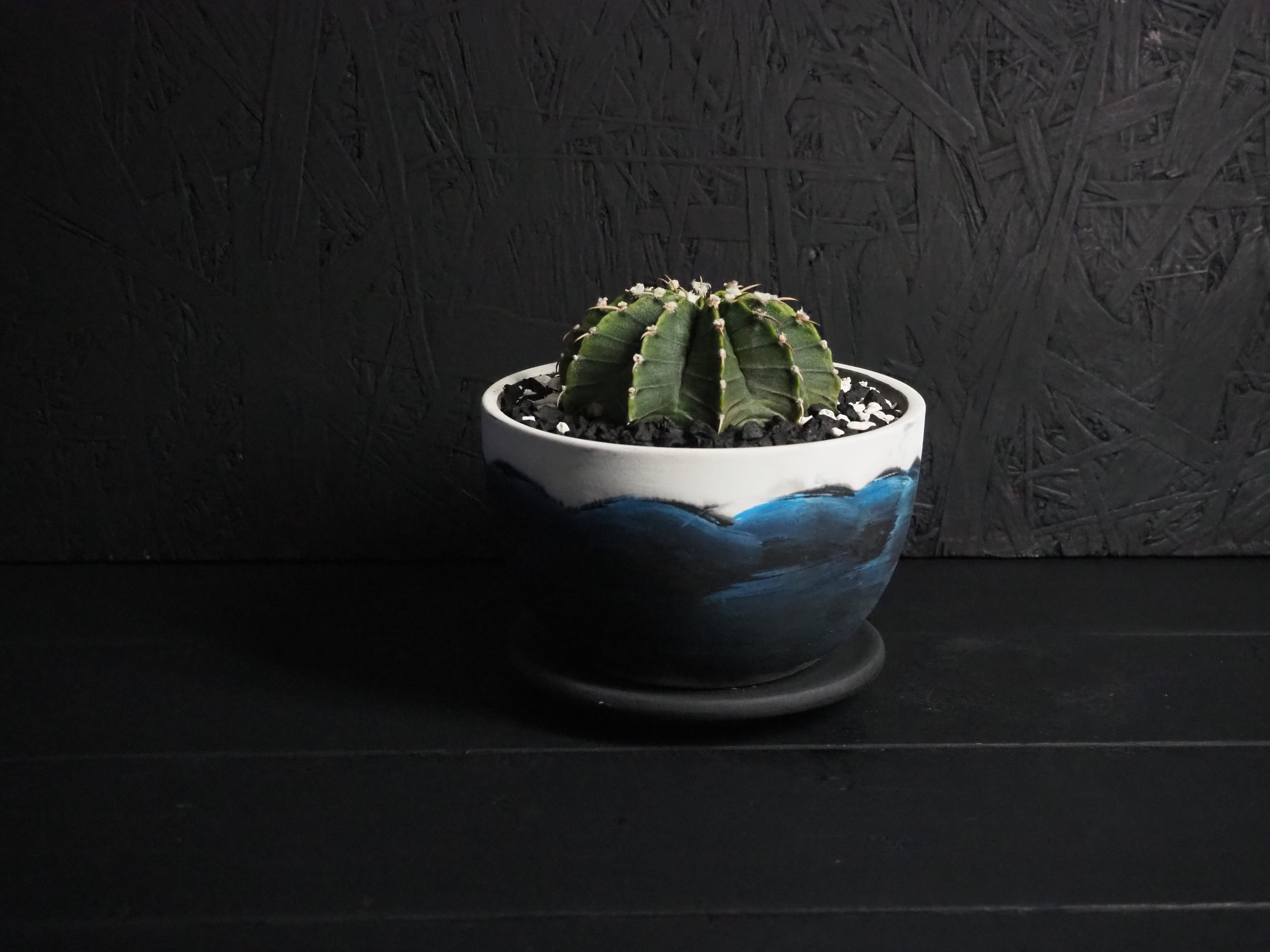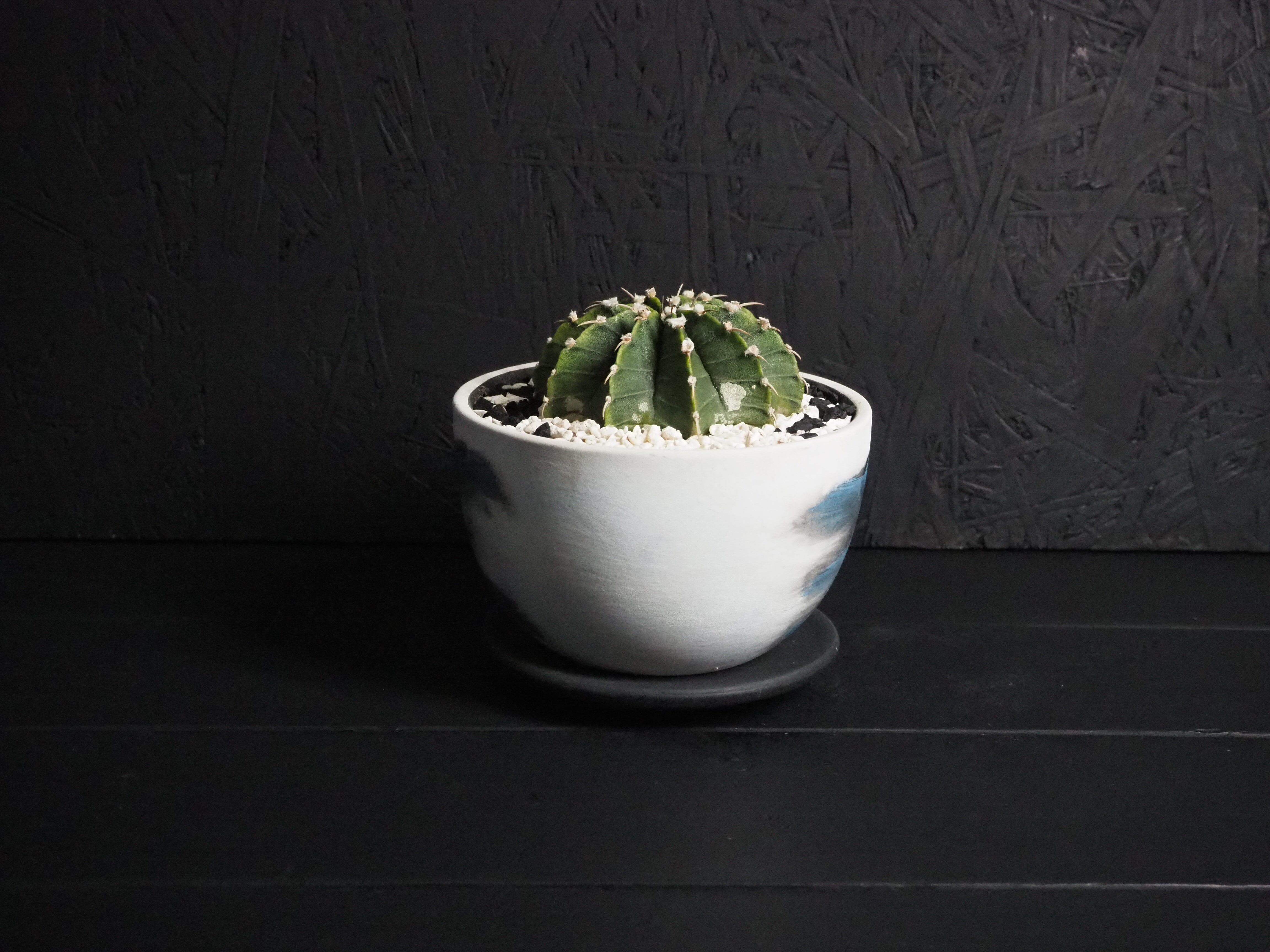 ちょい傷をフォローするため、雲居に現る月明かりの如き絵付けのデザインで一風変わったラライワントさんの鉢で仕上げてみました。
