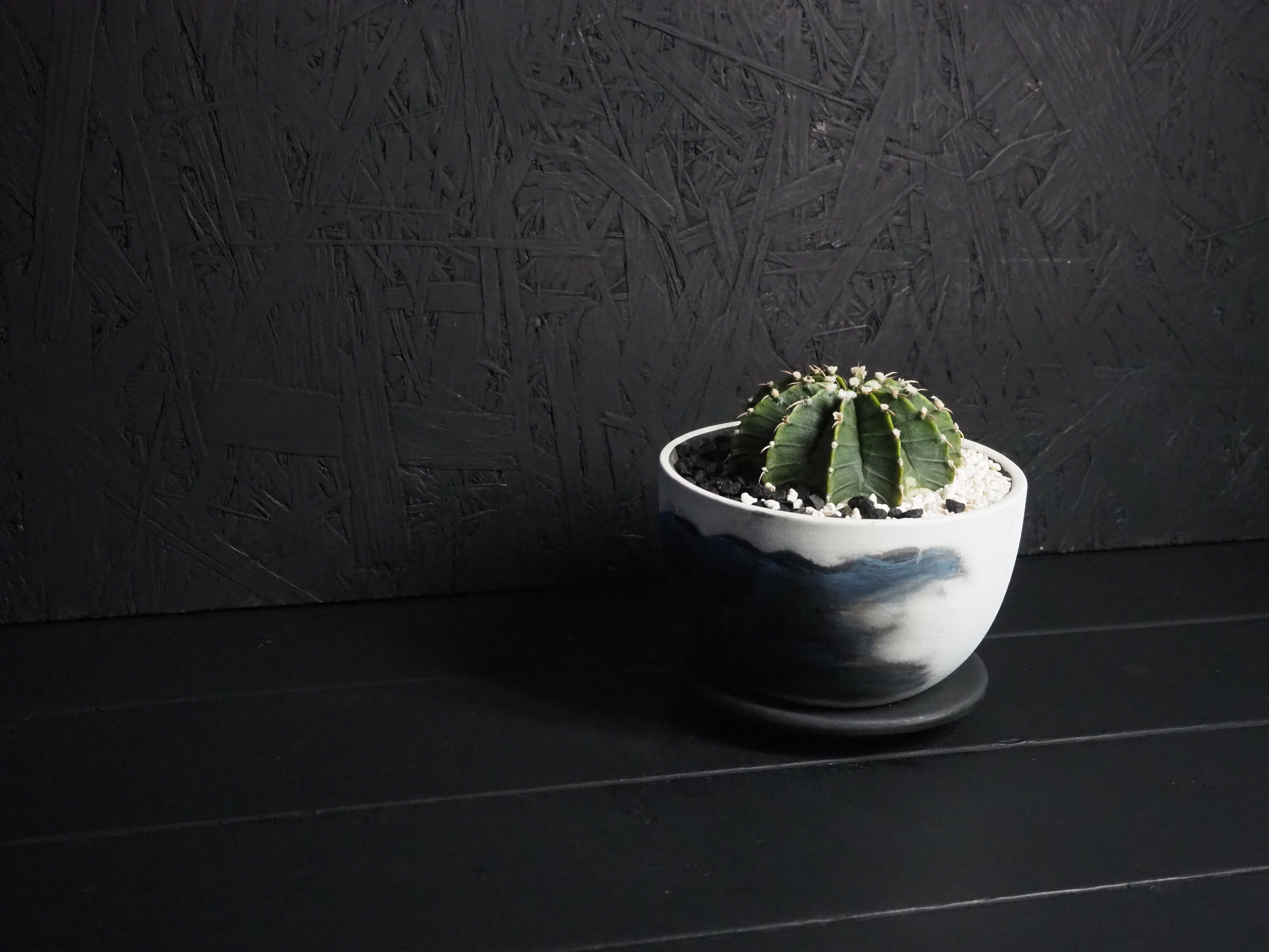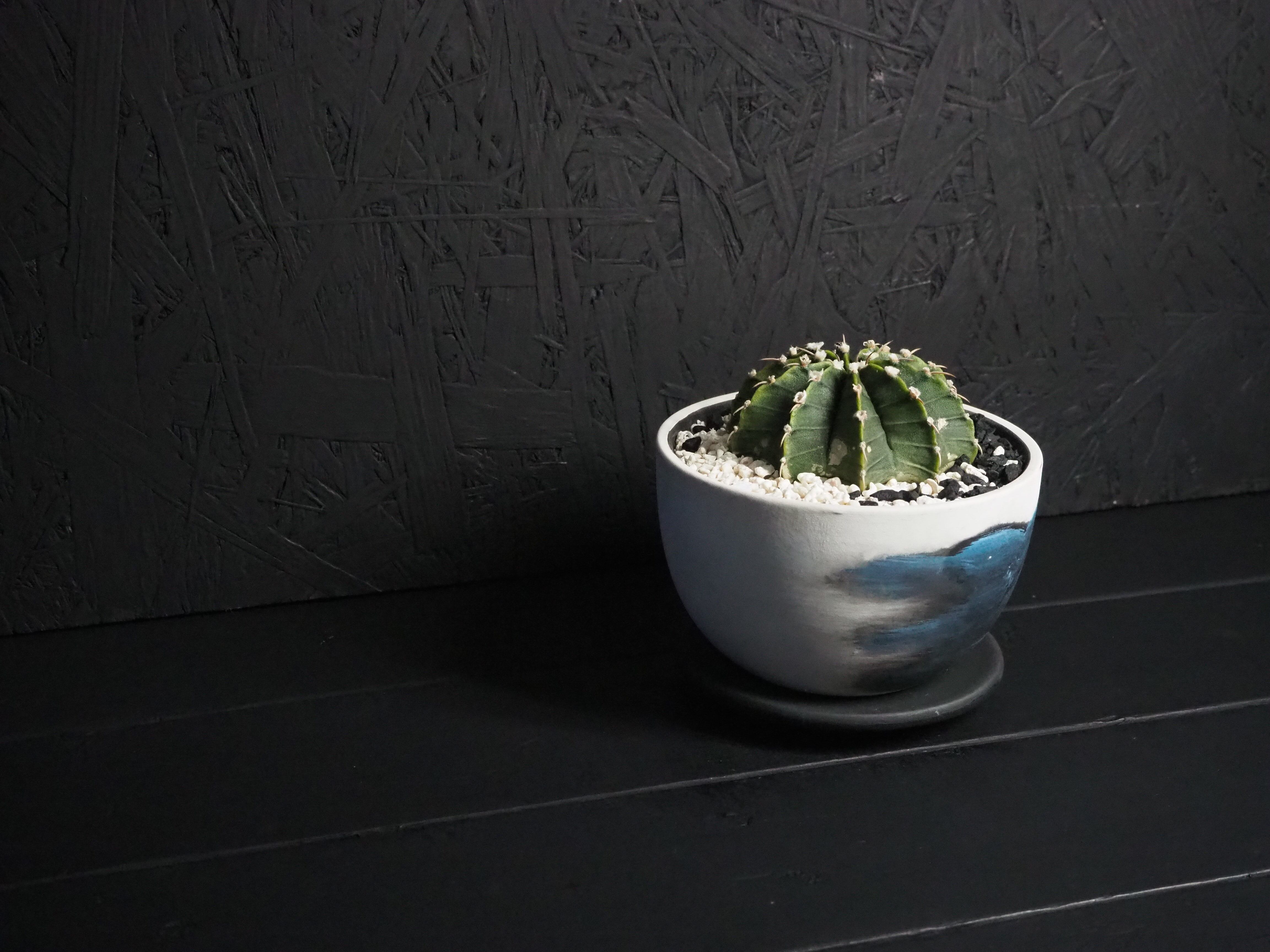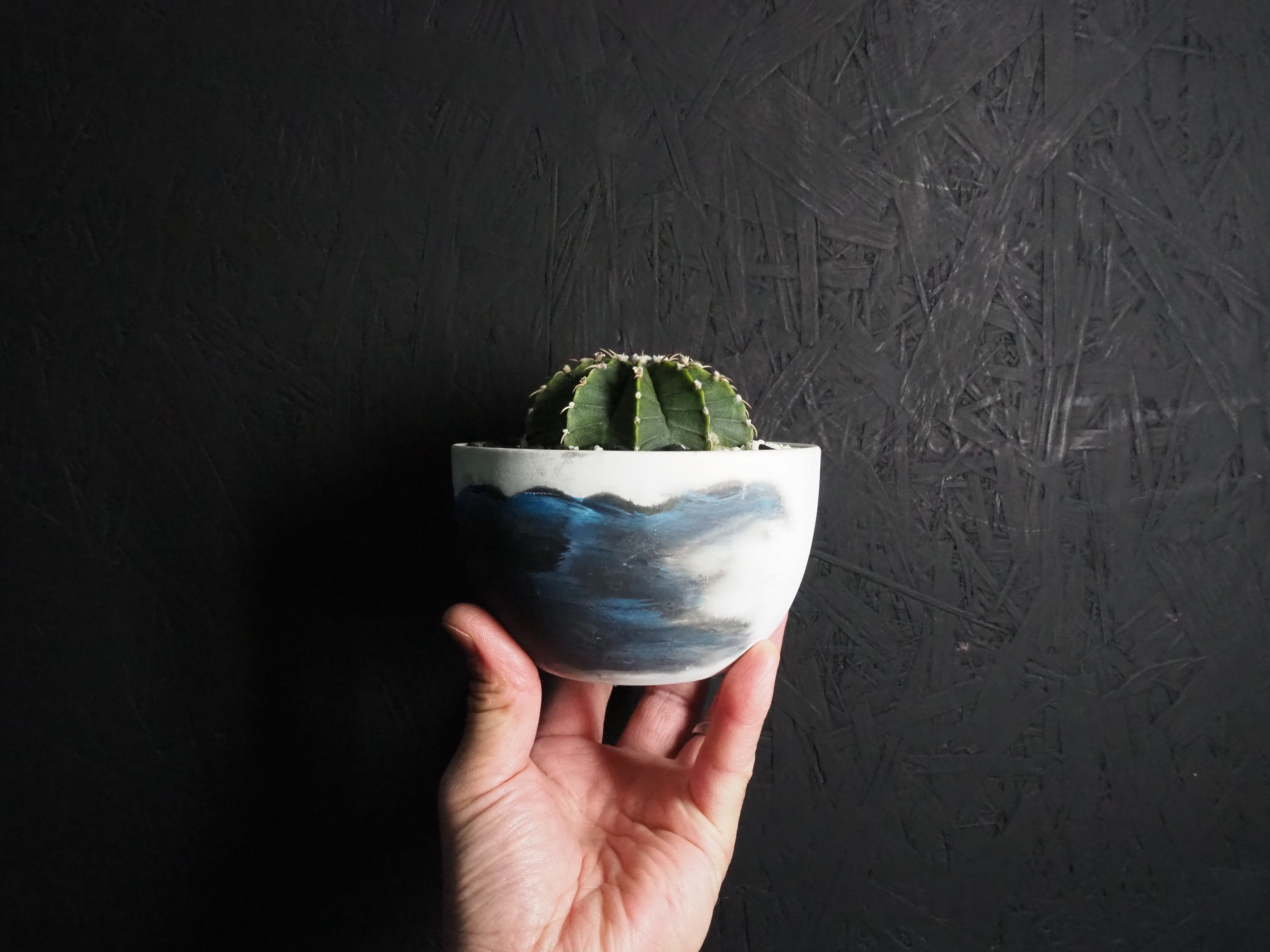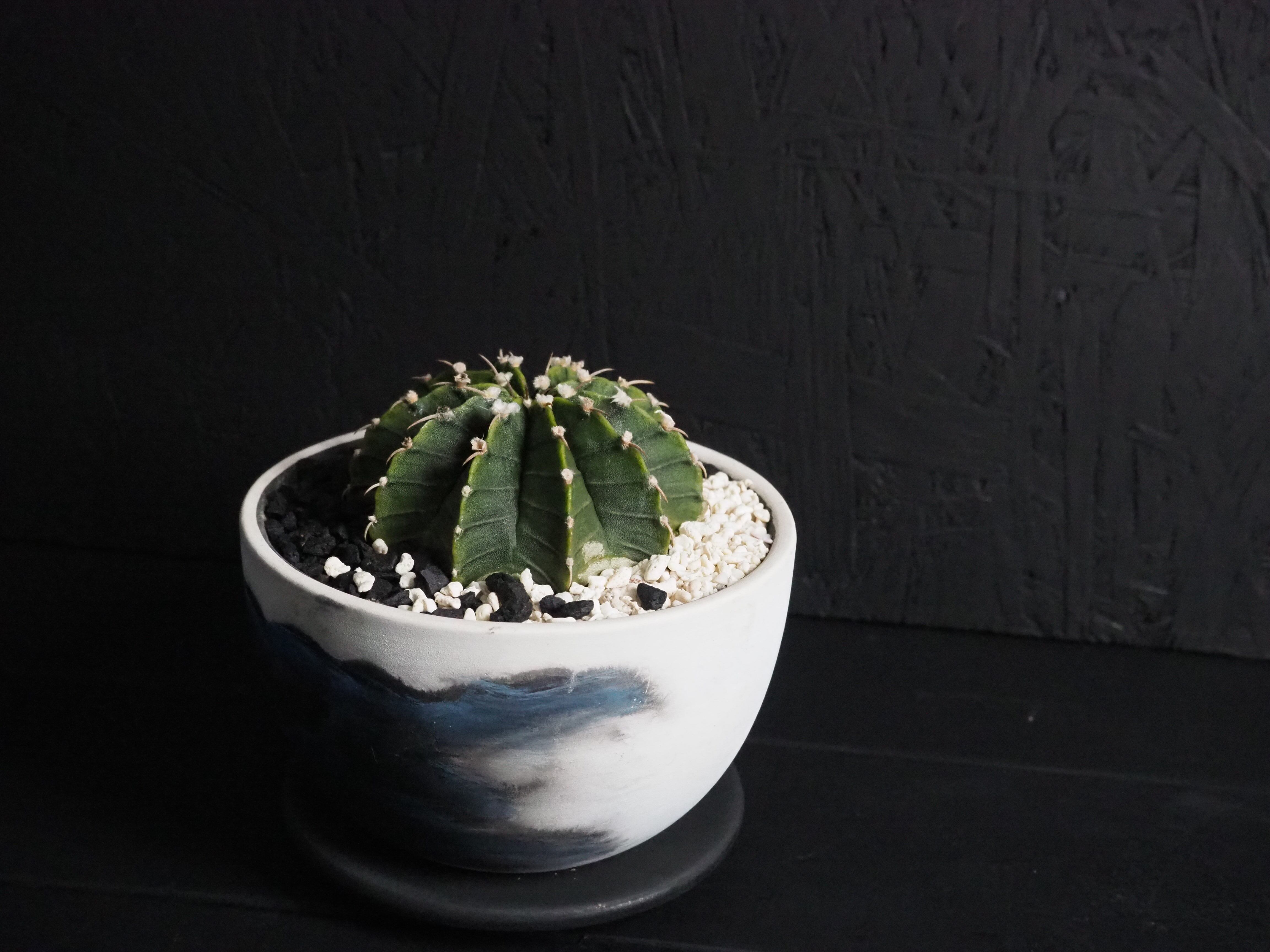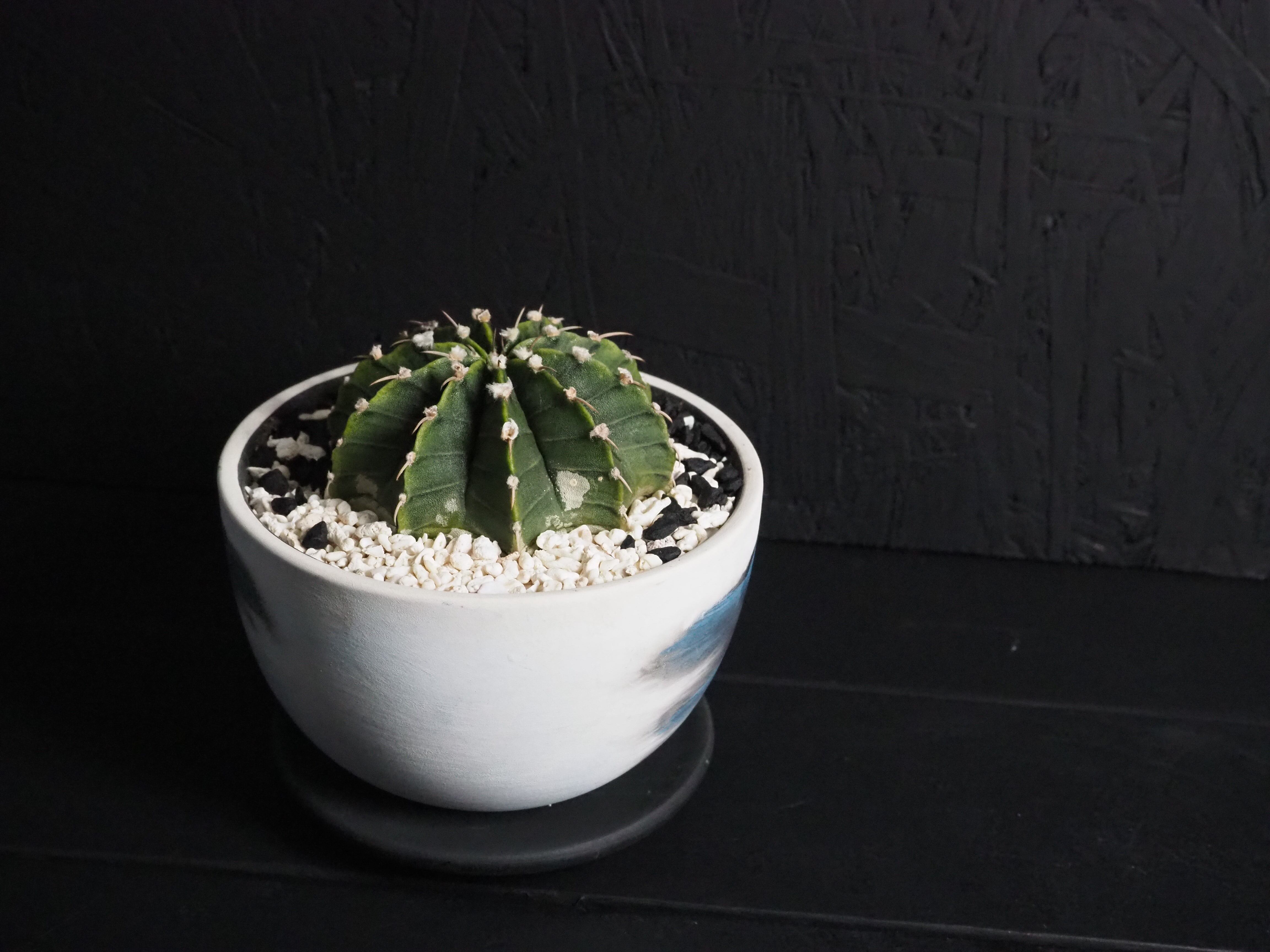 ちょい傷をフォローするため、雲居に現る月明かりの如き絵付けのデザインで一風変わったラライワントさんの鉢で仕上げてみました。