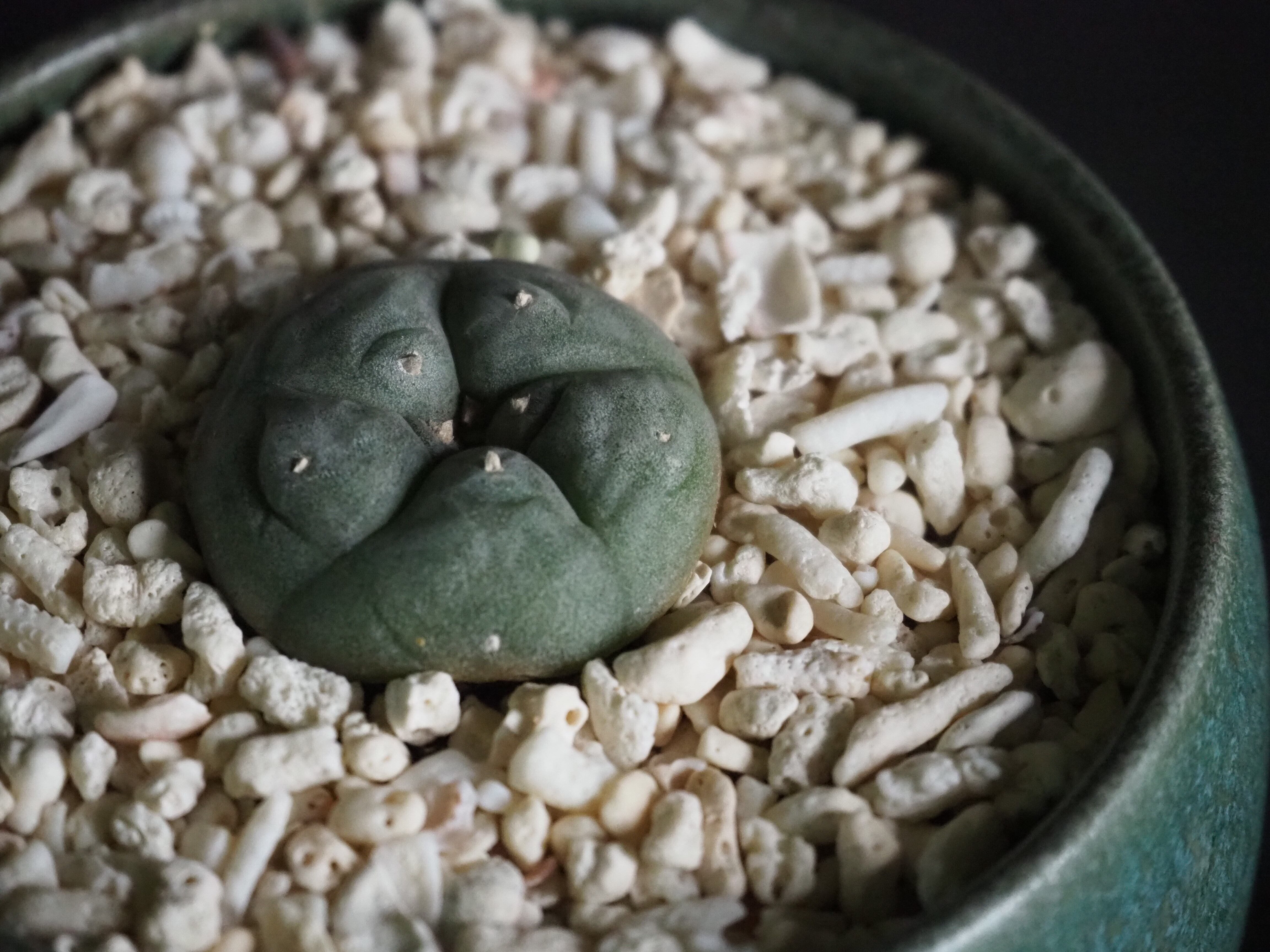 夏型のサボテンなので、春~秋の暖かい時期は水やりが必要ですが、真夏の猛烈に暑い時期はやや控えめの水やりを行ってください。春・秋が最も生長しますのでたっぷり水やりし、しっかり乾いたら水やりするを基本にしてください。11~2月の寒い時期は断水せずに少量の水やりを行ってください。ロフォフォラ属は極度な乾燥を嫌いますので放置プレイは厳禁です。また、水やりの際はジャブジャブ上から水を掛けずに株元にやさしく行ってください。
