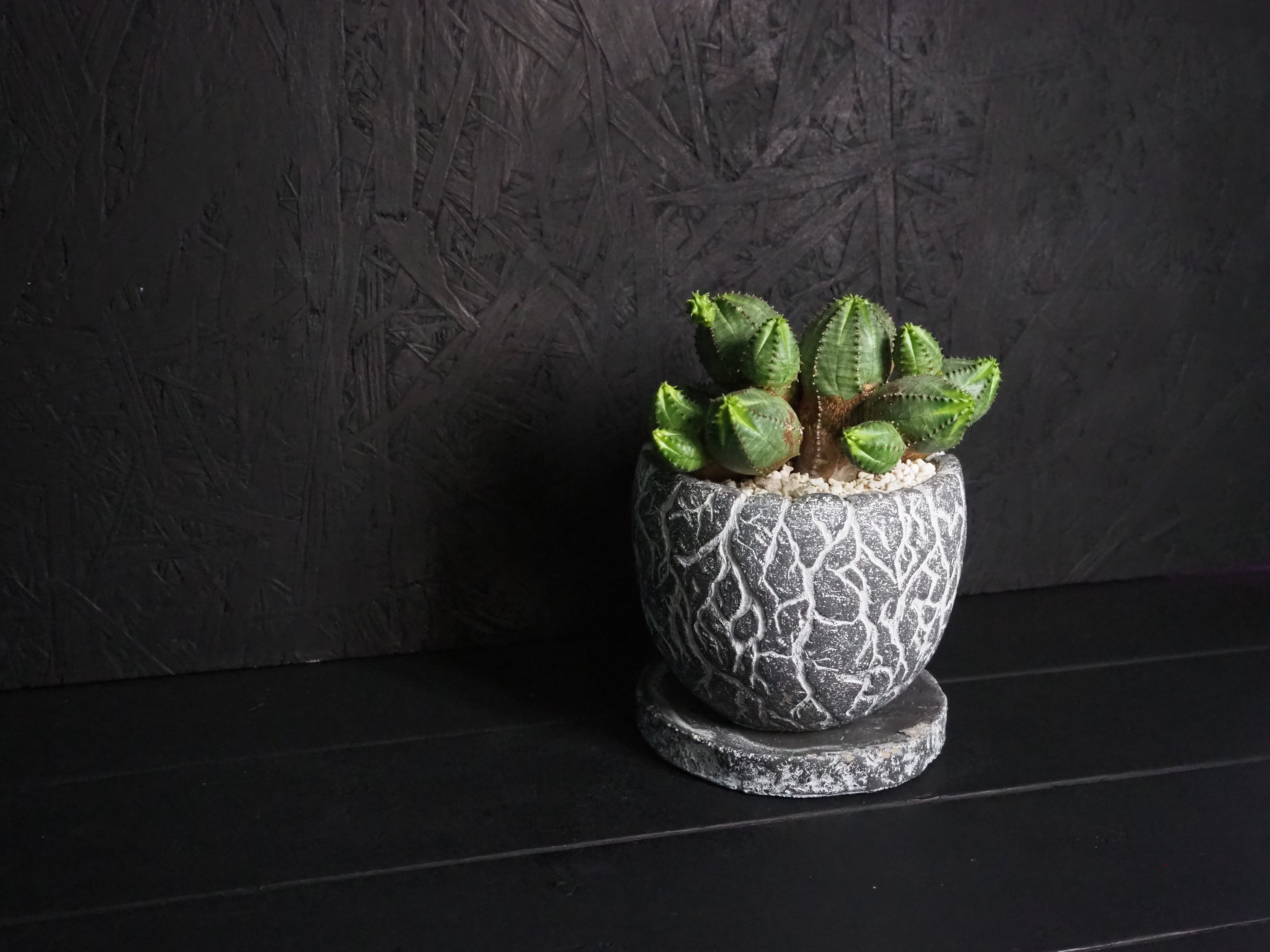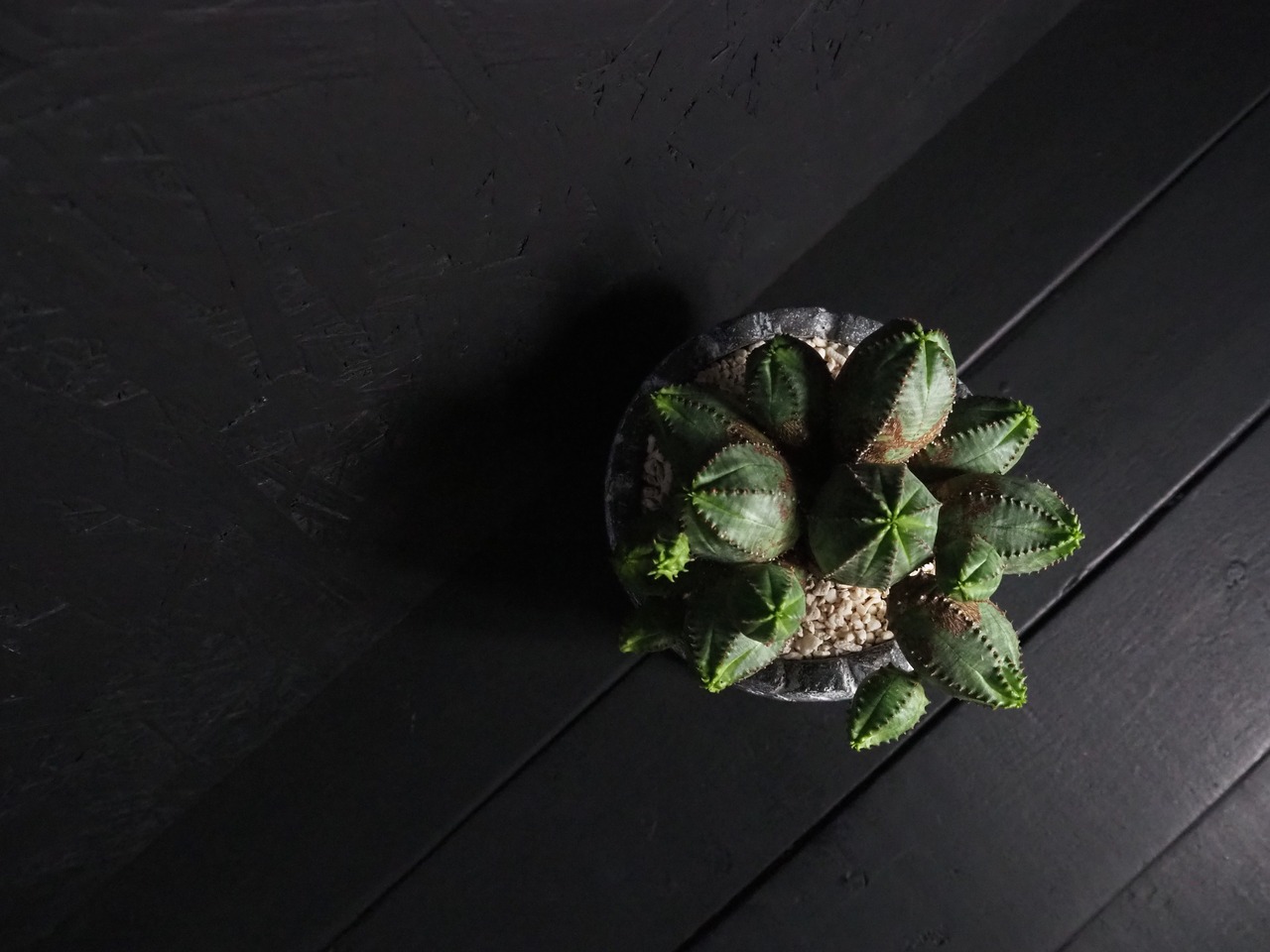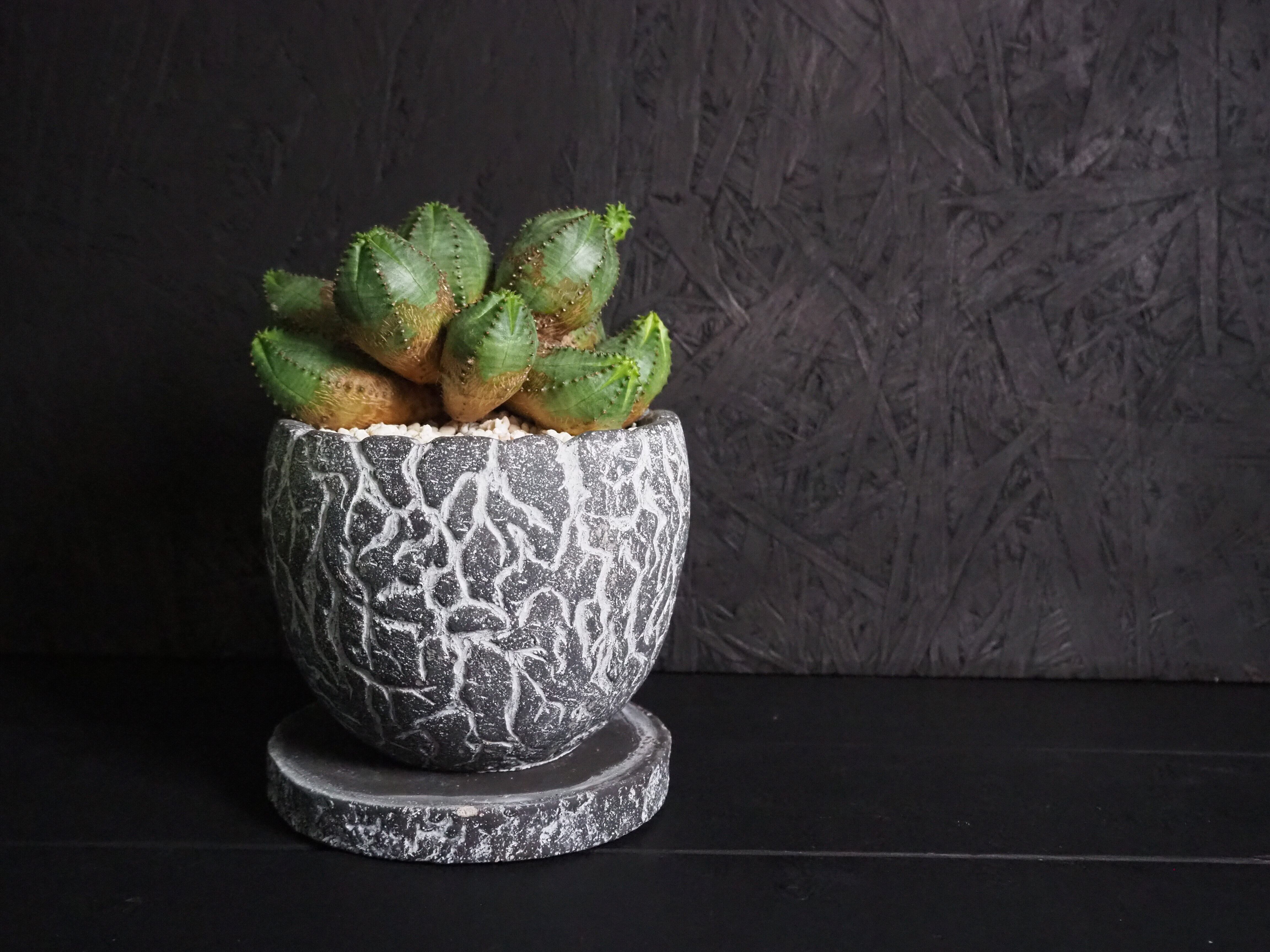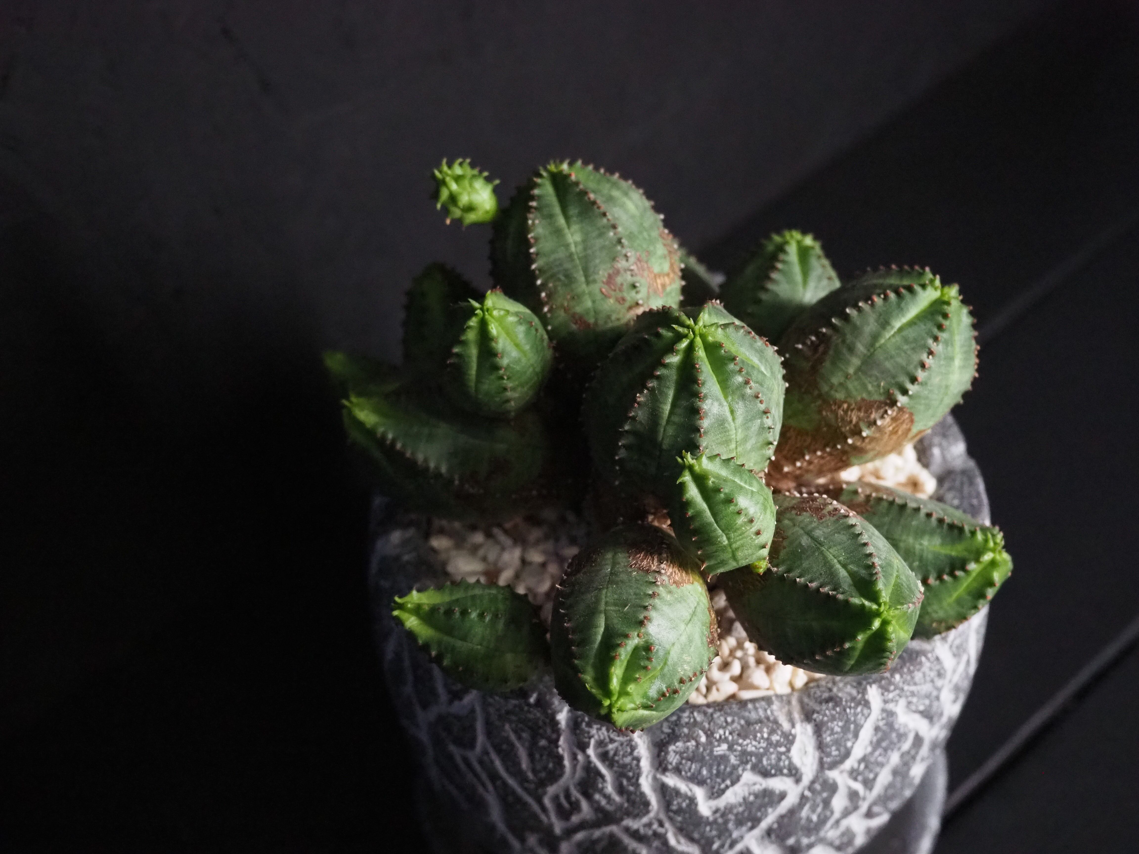 日照が不足すると丸くて引き締まったフォルムが崩れてしまい、先っちょがどんどん伸びてとんがり頭になってしまいます。それはそれで愛嬌があって可愛らしいですが、あまり徒長させないように特に日照に気を付けて、乾燥気味のメリハリをつけた水管理と通年の風通しを心掛け付け、なるべく良型な容姿を保ってくださいね!