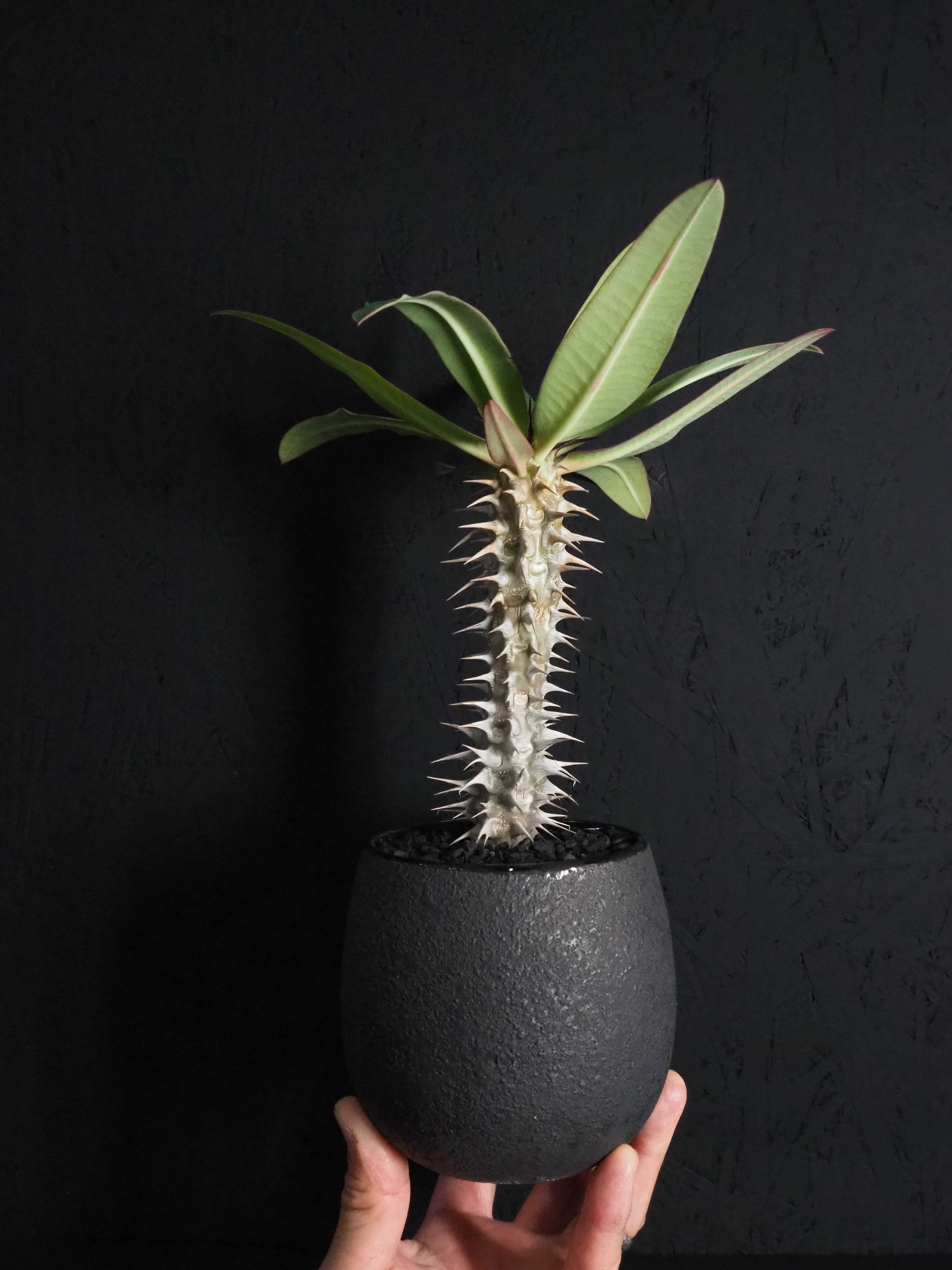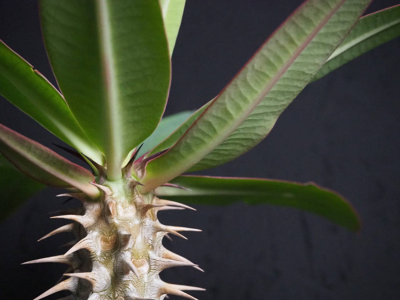 実生は塊根状に太りますが、挿し木は残念ながら塊根状にはなりません。この個体も挿し木なので塊根は形成されませんが、大きくて存在感があり美しい個体です。現在、葉の展開も絶好調で晩秋までの生長期が存分に楽しめる個体です。