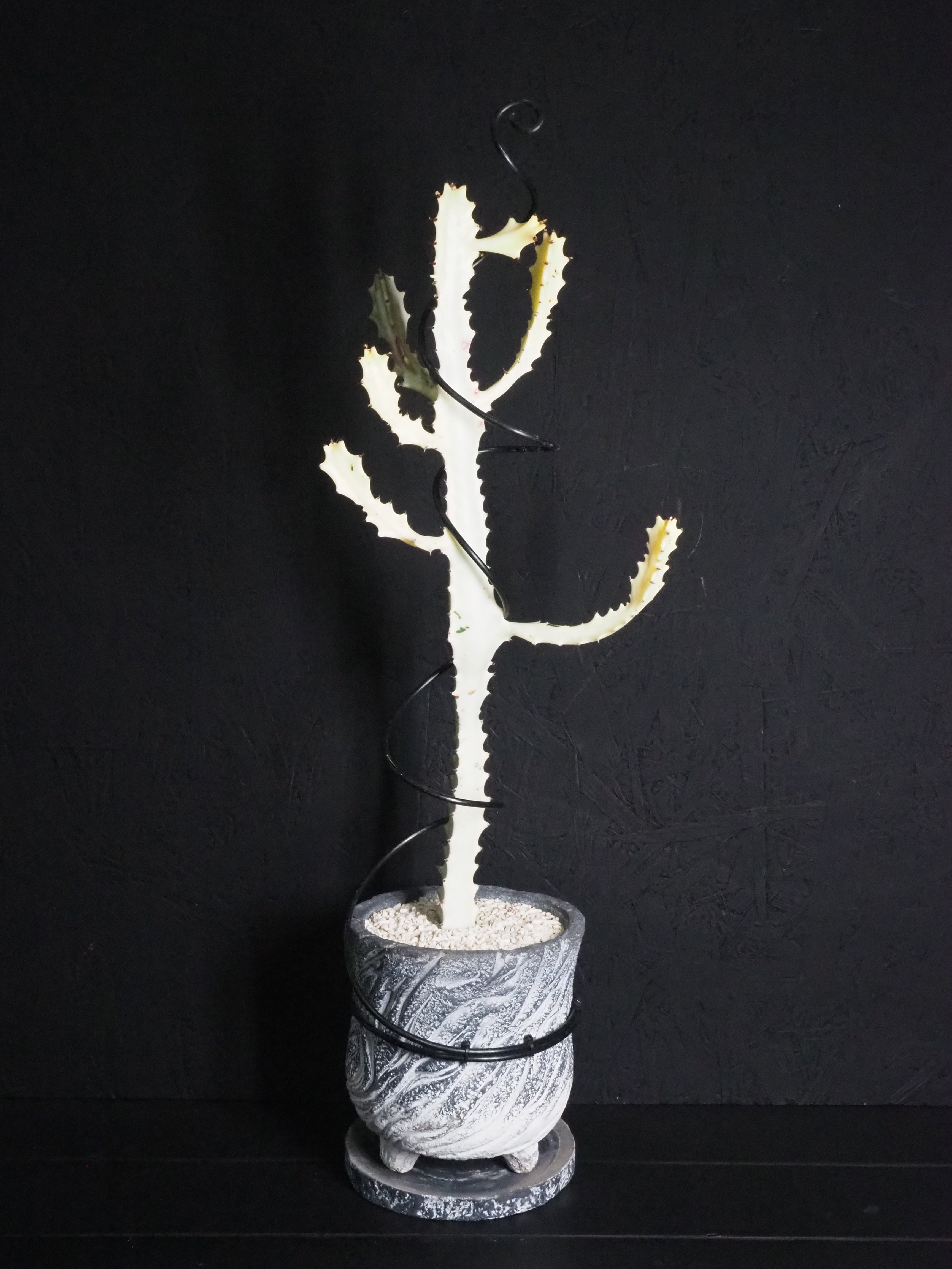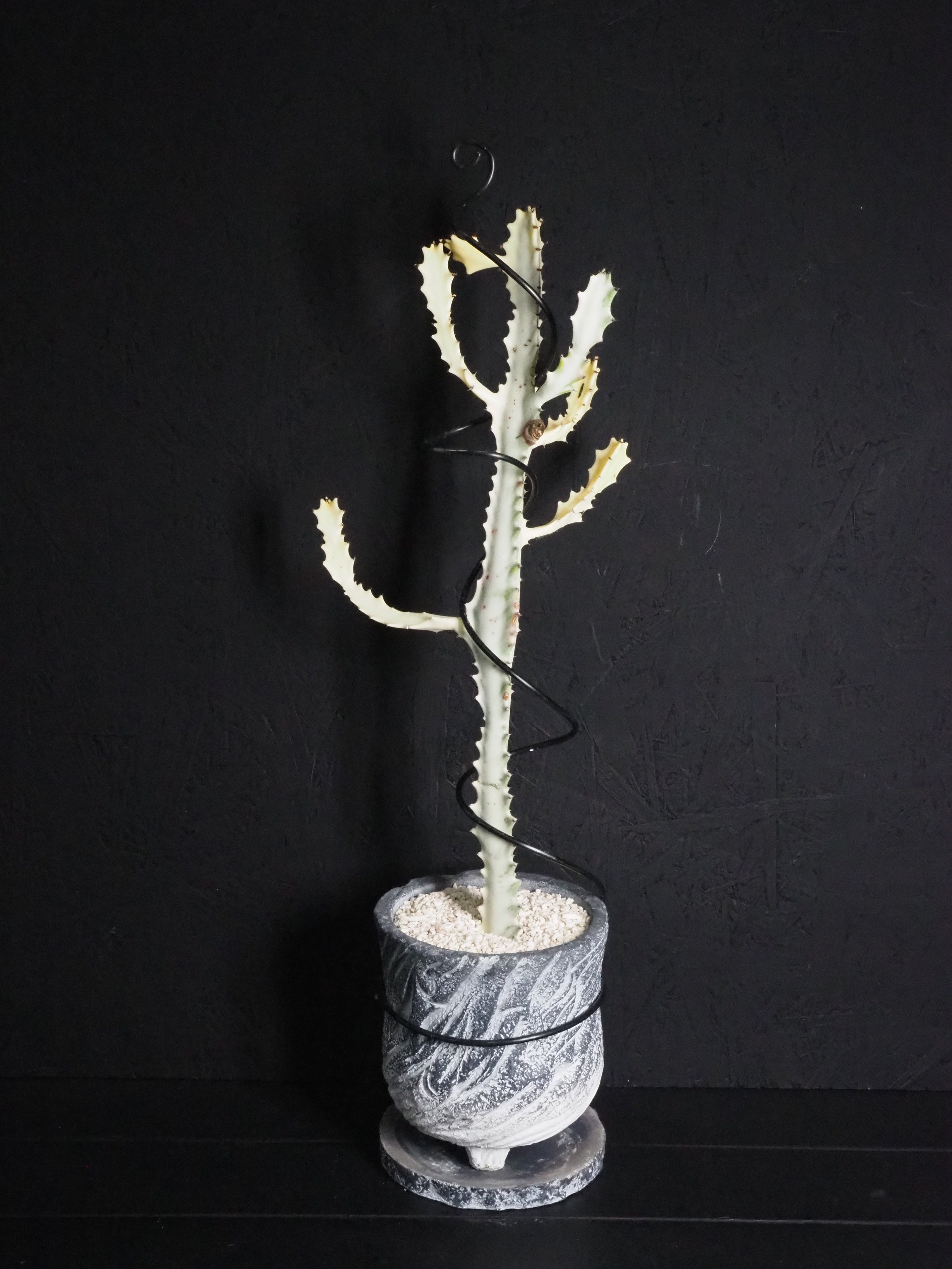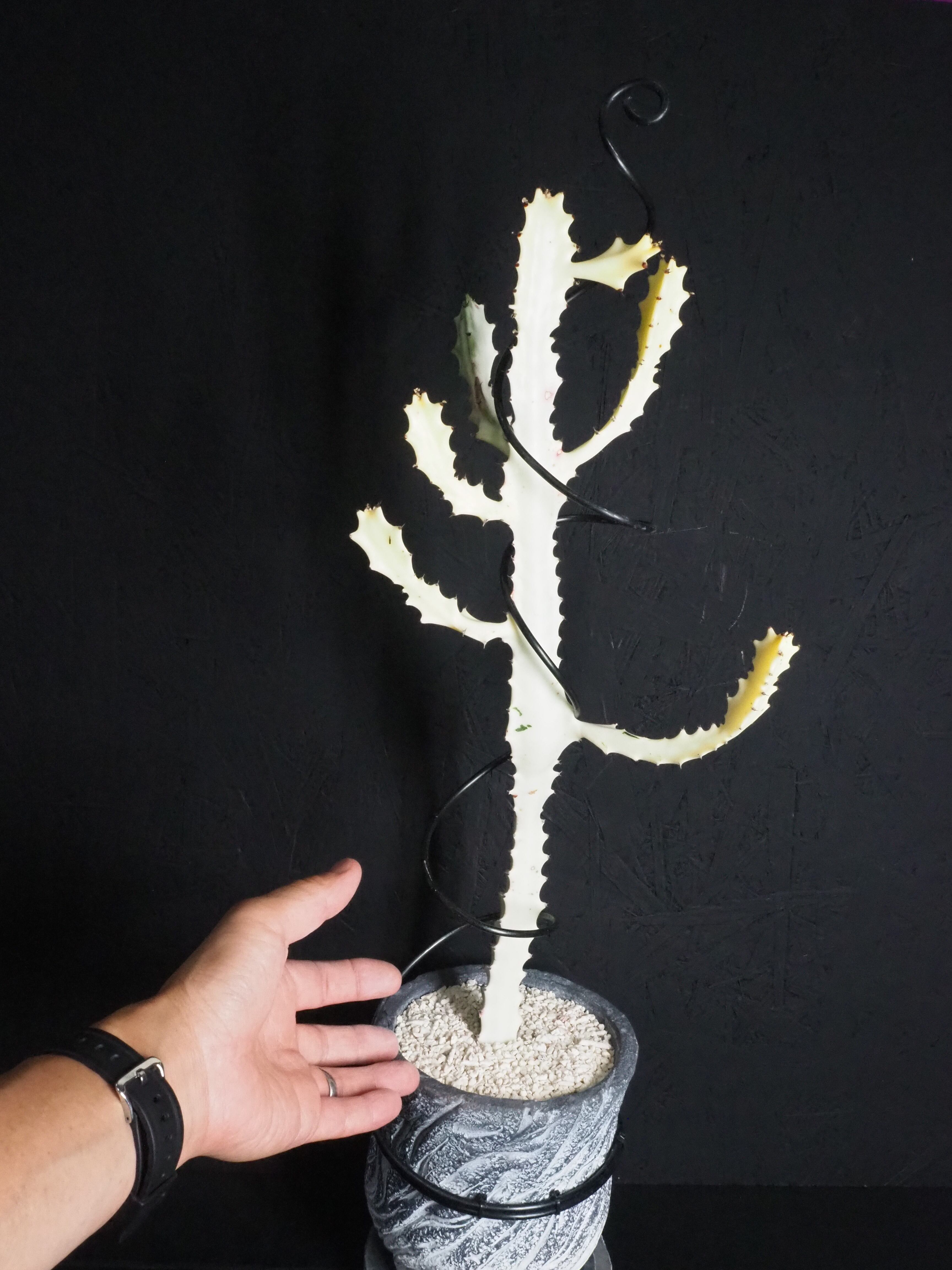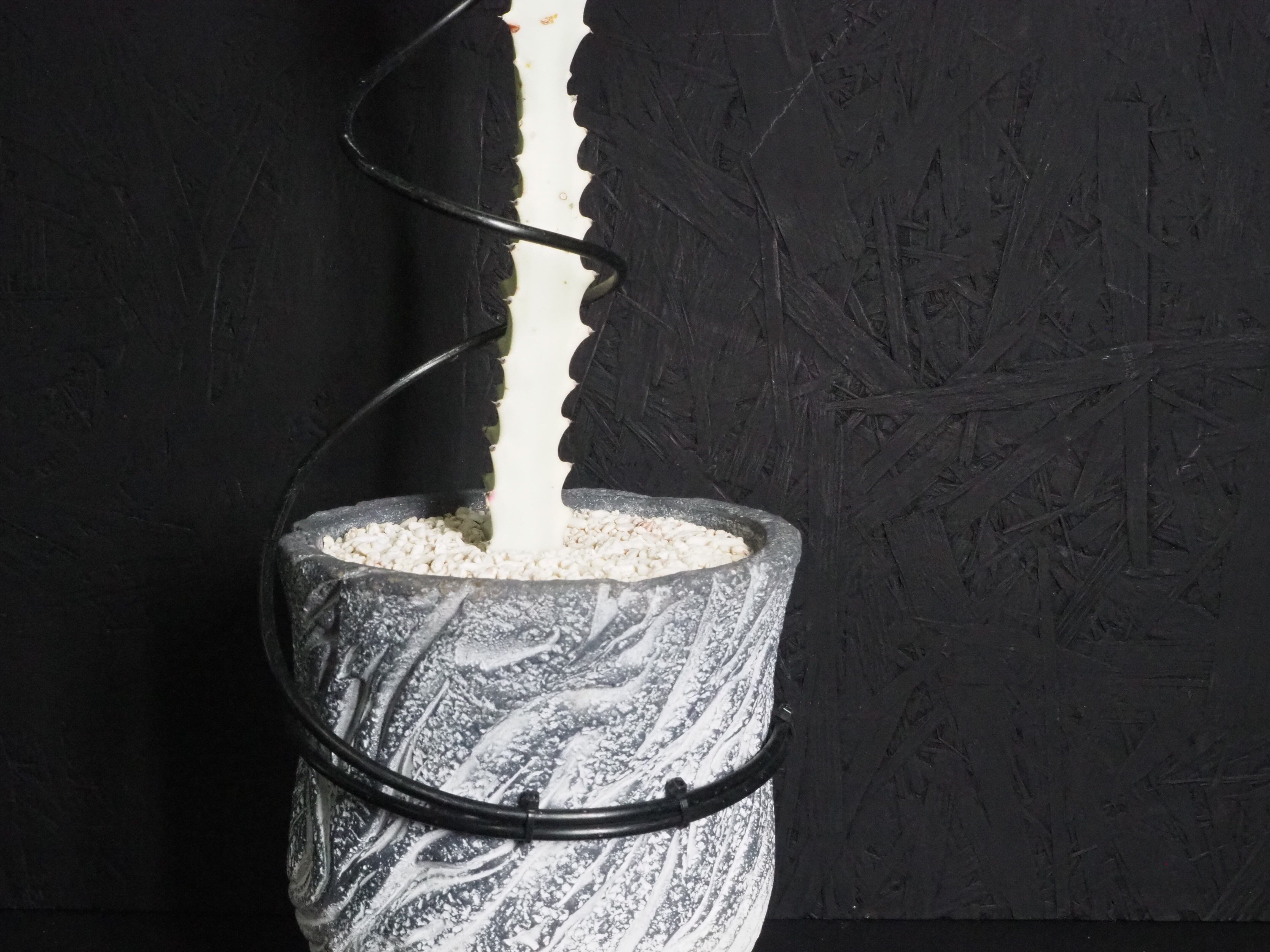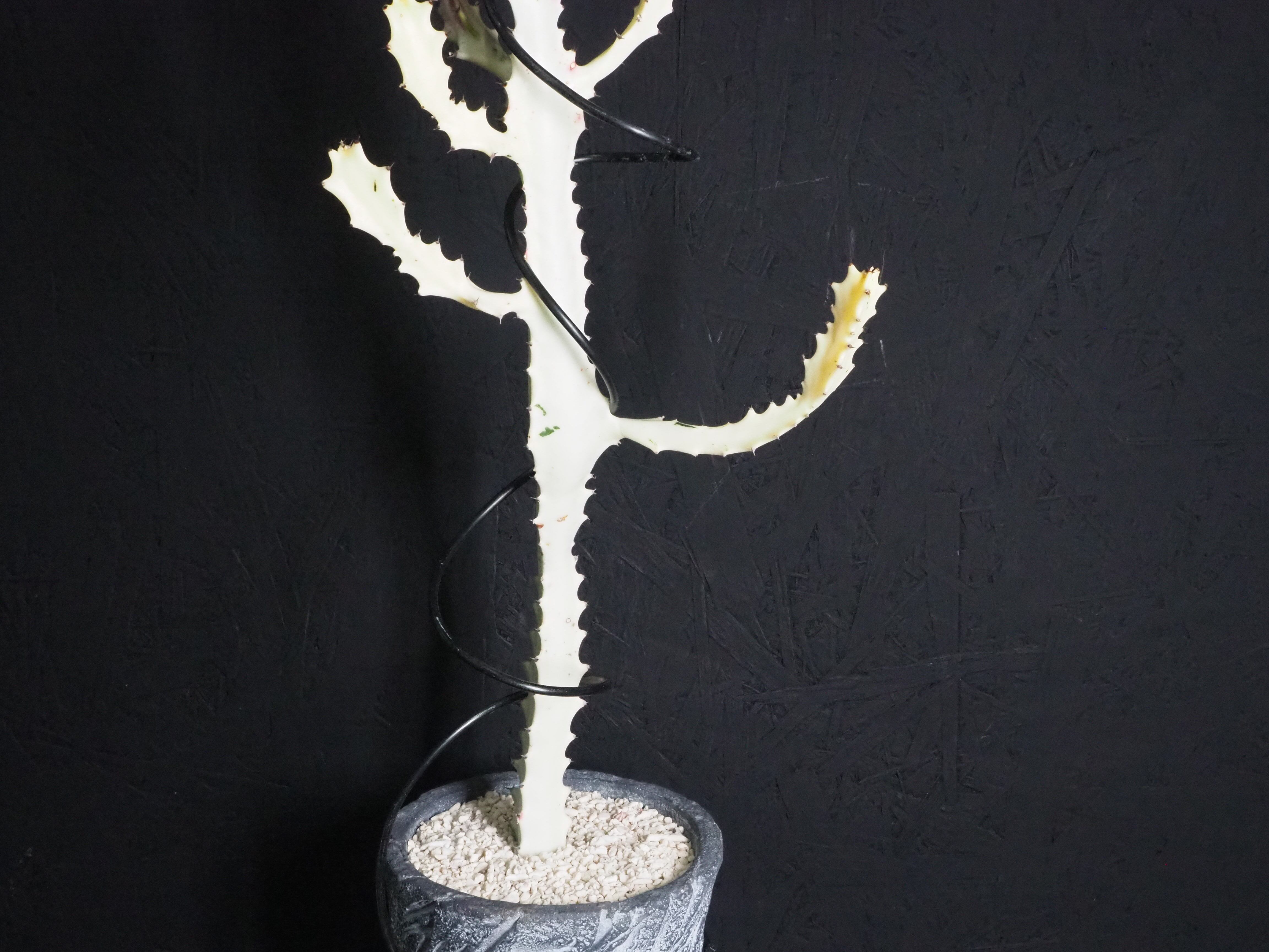 今回ご紹介するのは、しっかり大きなLaregeサイズのホワイトゴースト、自立するにもフラフラ危うい高さに生長しているので当店特性のアルミ製の螺旋支柱をSET。分枝も旺盛で今後の生長とともにどんなフォルムになるかお楽しみです♬