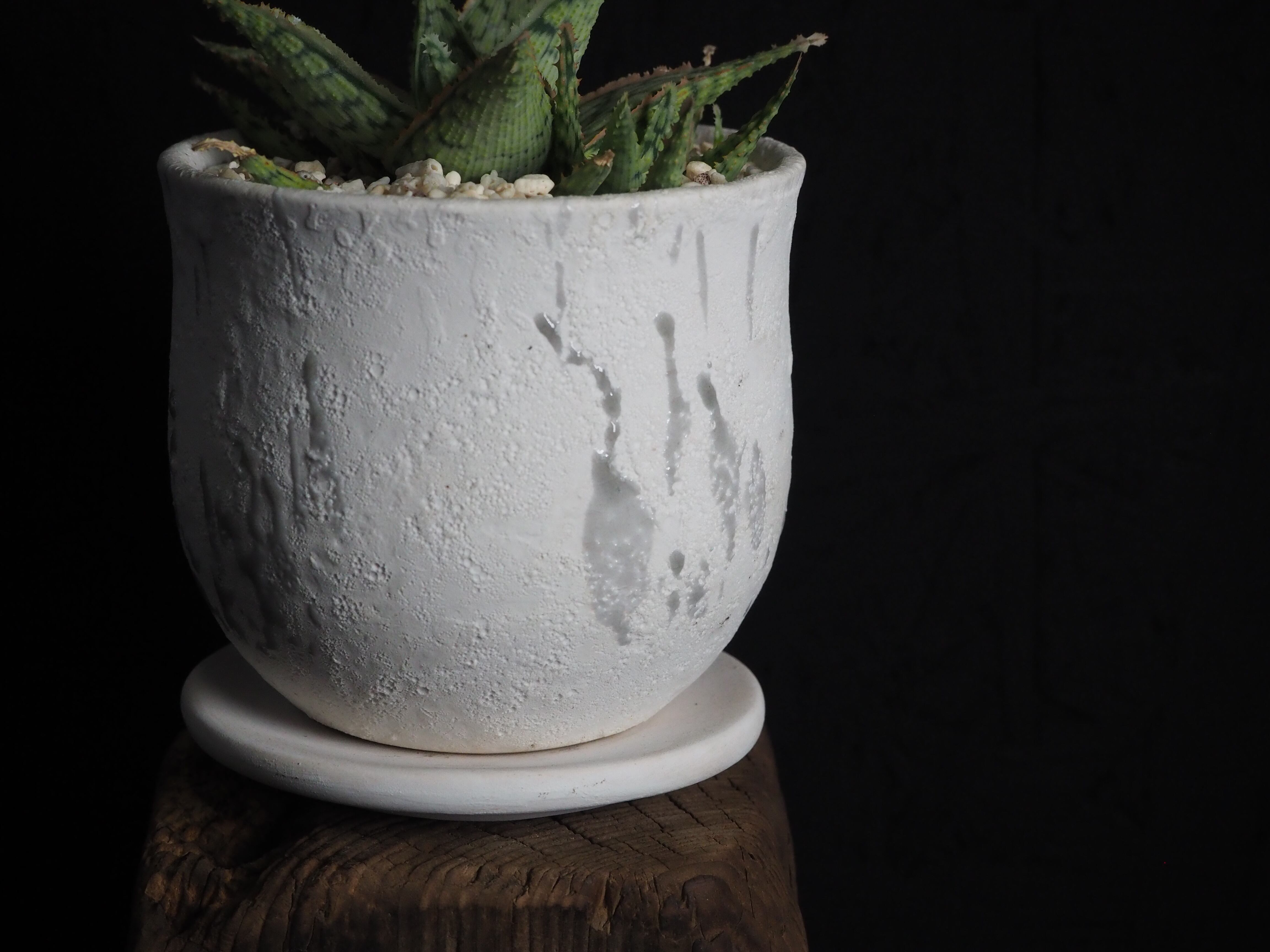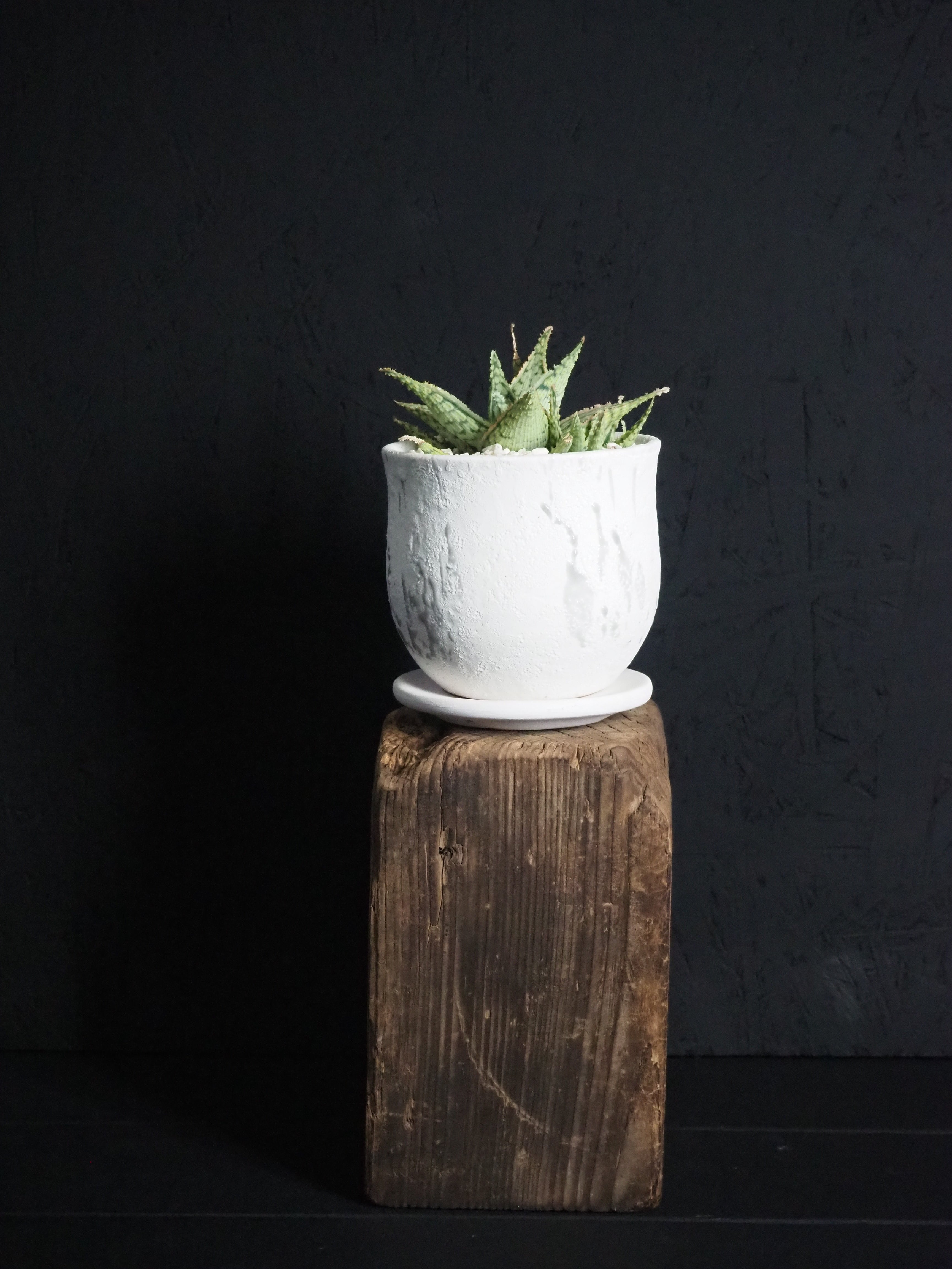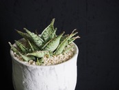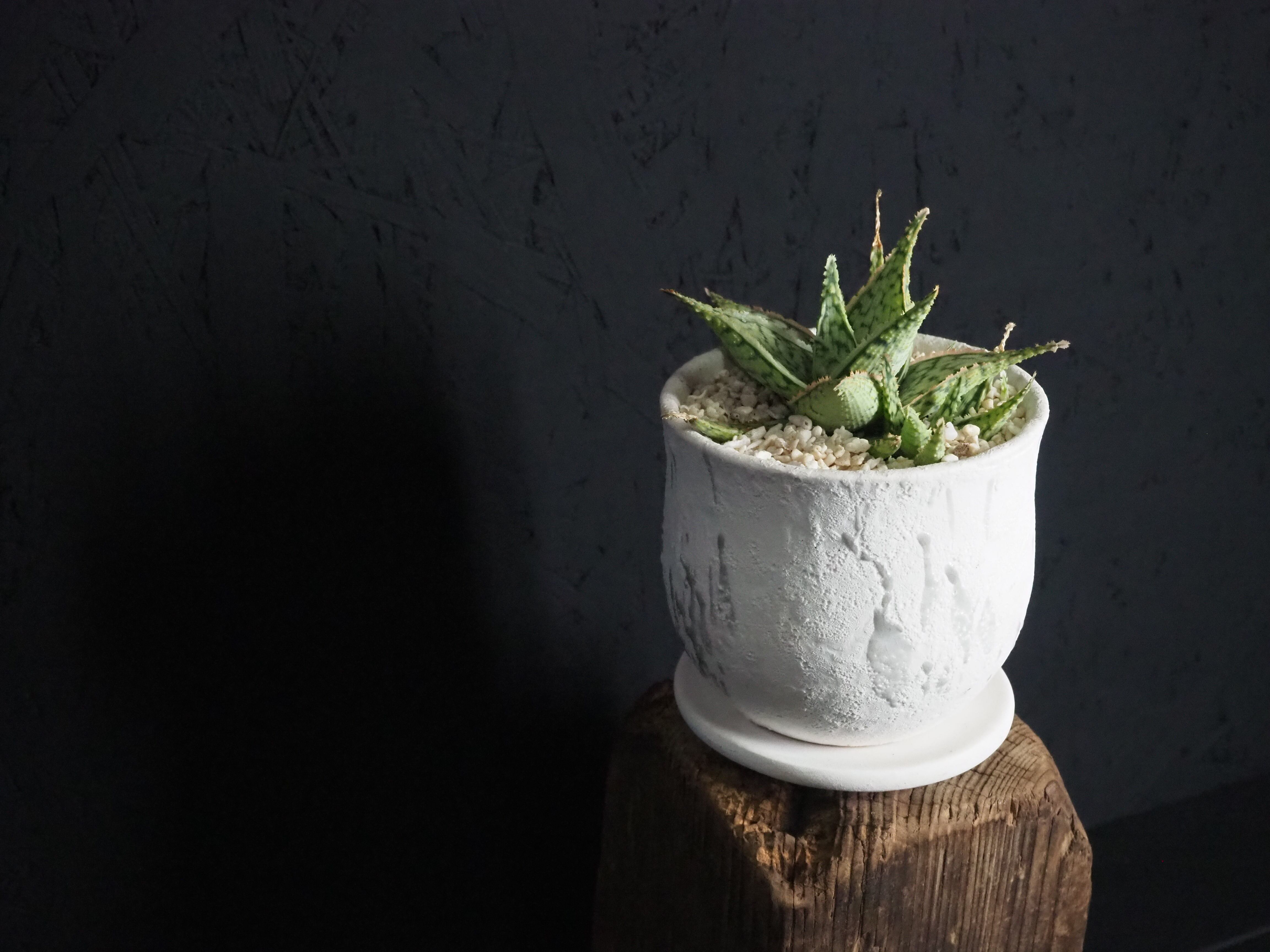 いわずもがな、アロエハイブリッドです。小吹まくり!!これからの葉の発色も楽しみで、白い鉢と葉のピンクのコントラストはより一層美しく見えるはず。