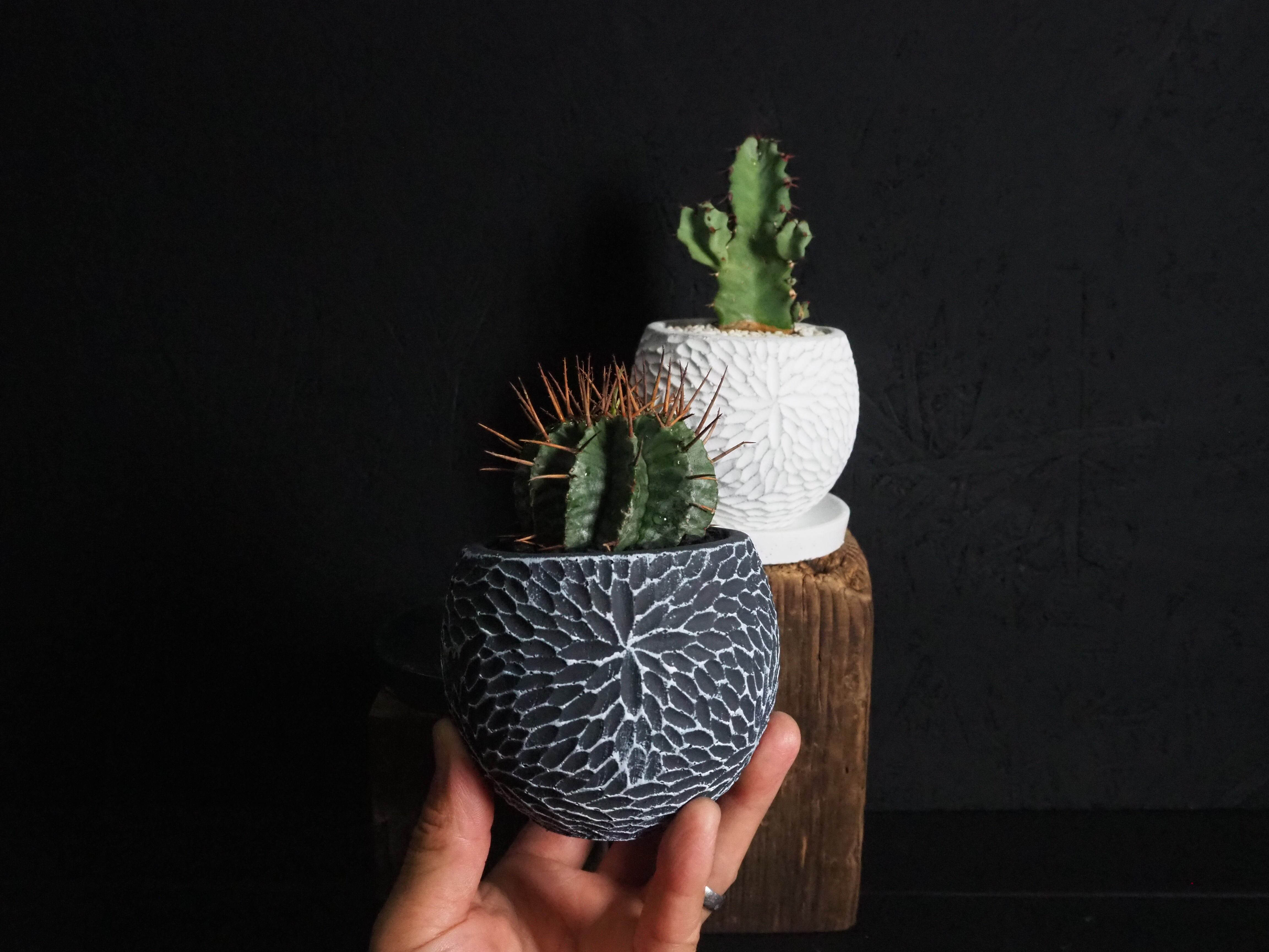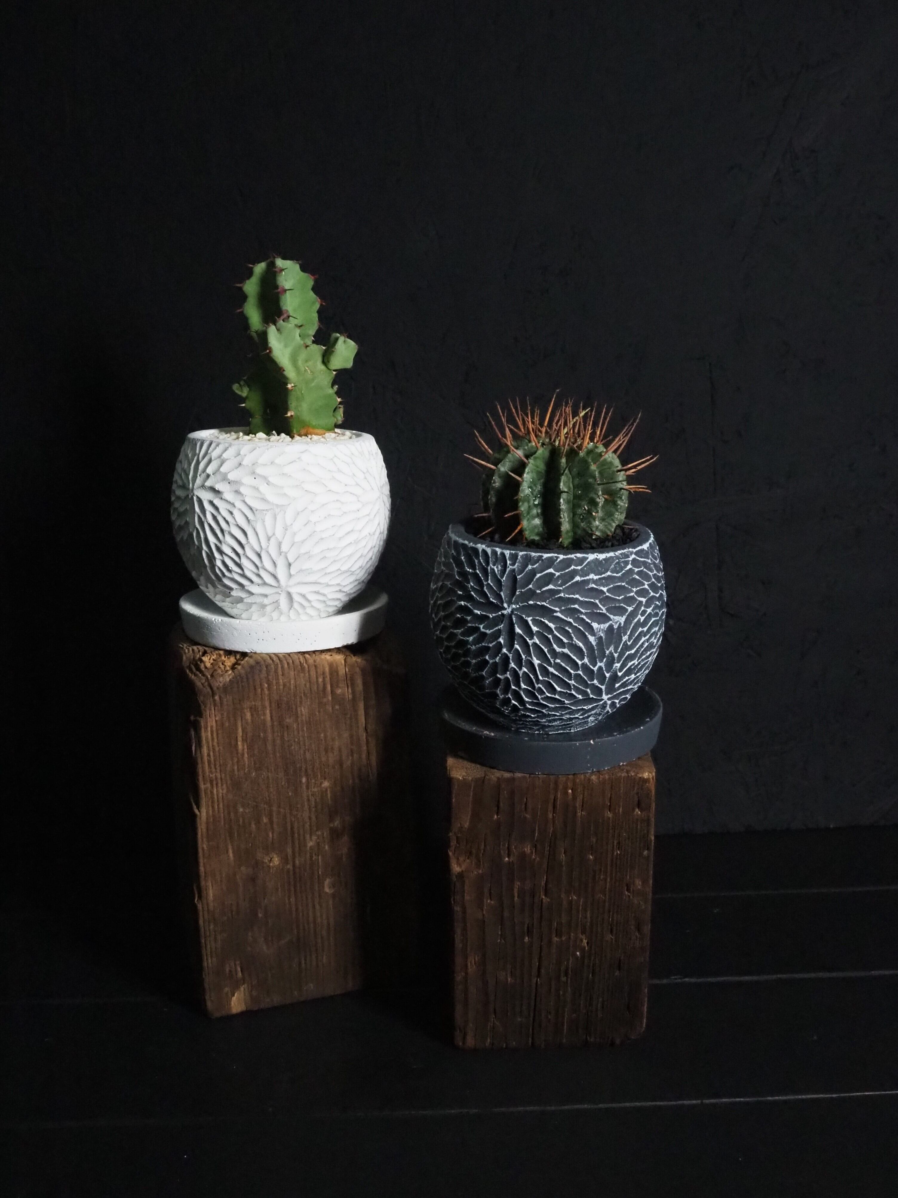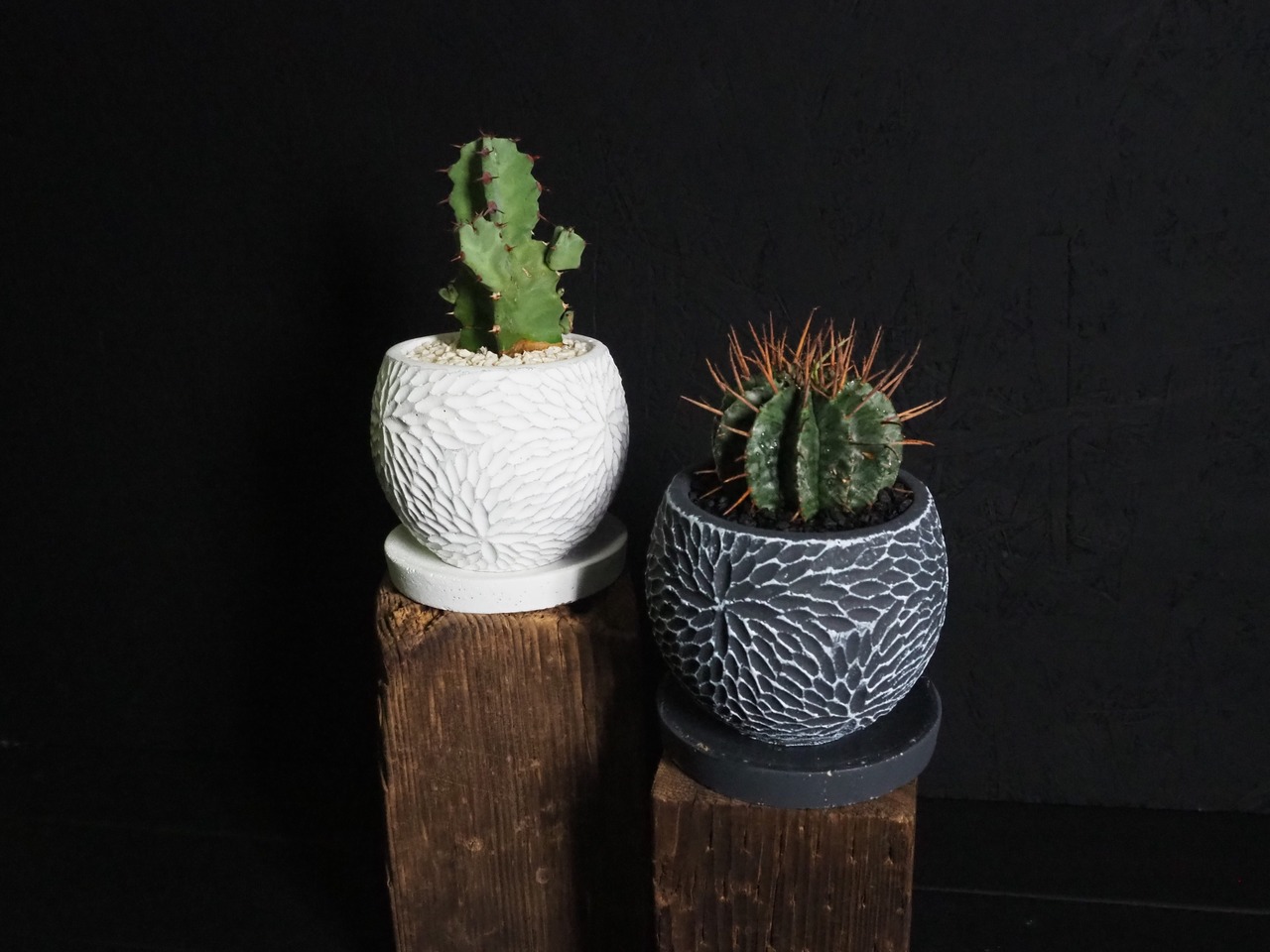 Black&Whiteの化粧砂利でプランターも色違い。どちらも良質で美株の優良個体で良質、ポピュラーitemのペア販売です。