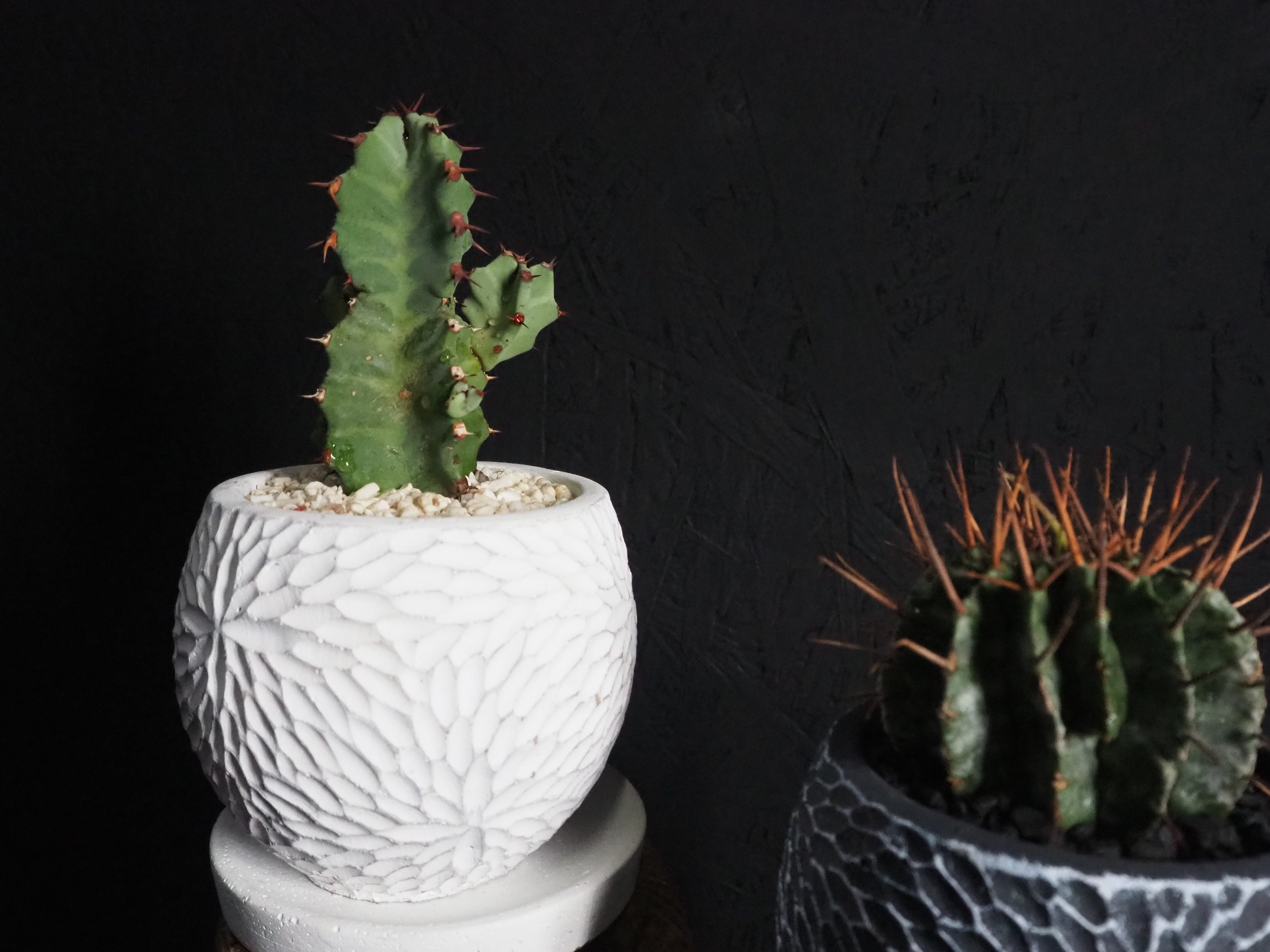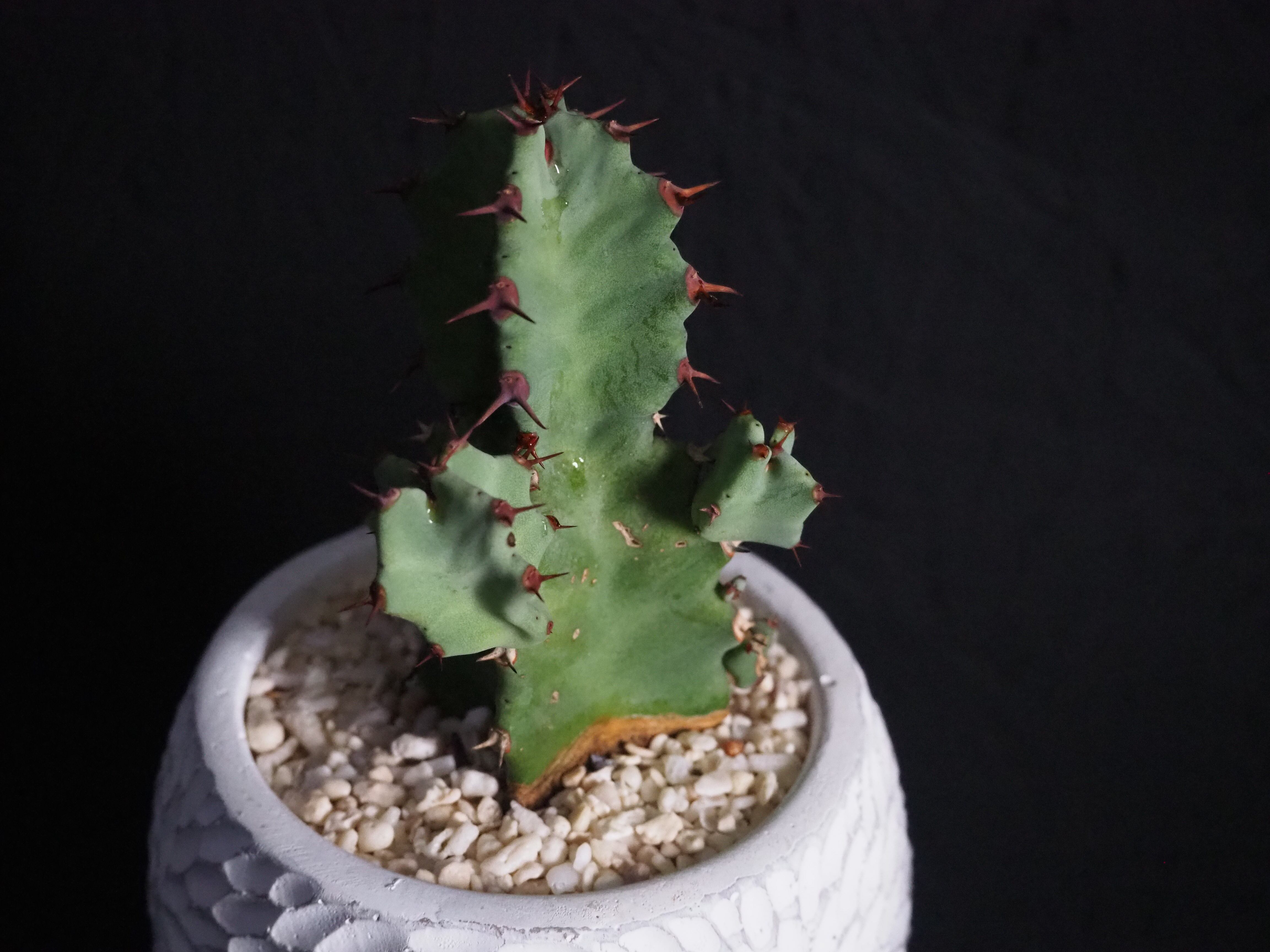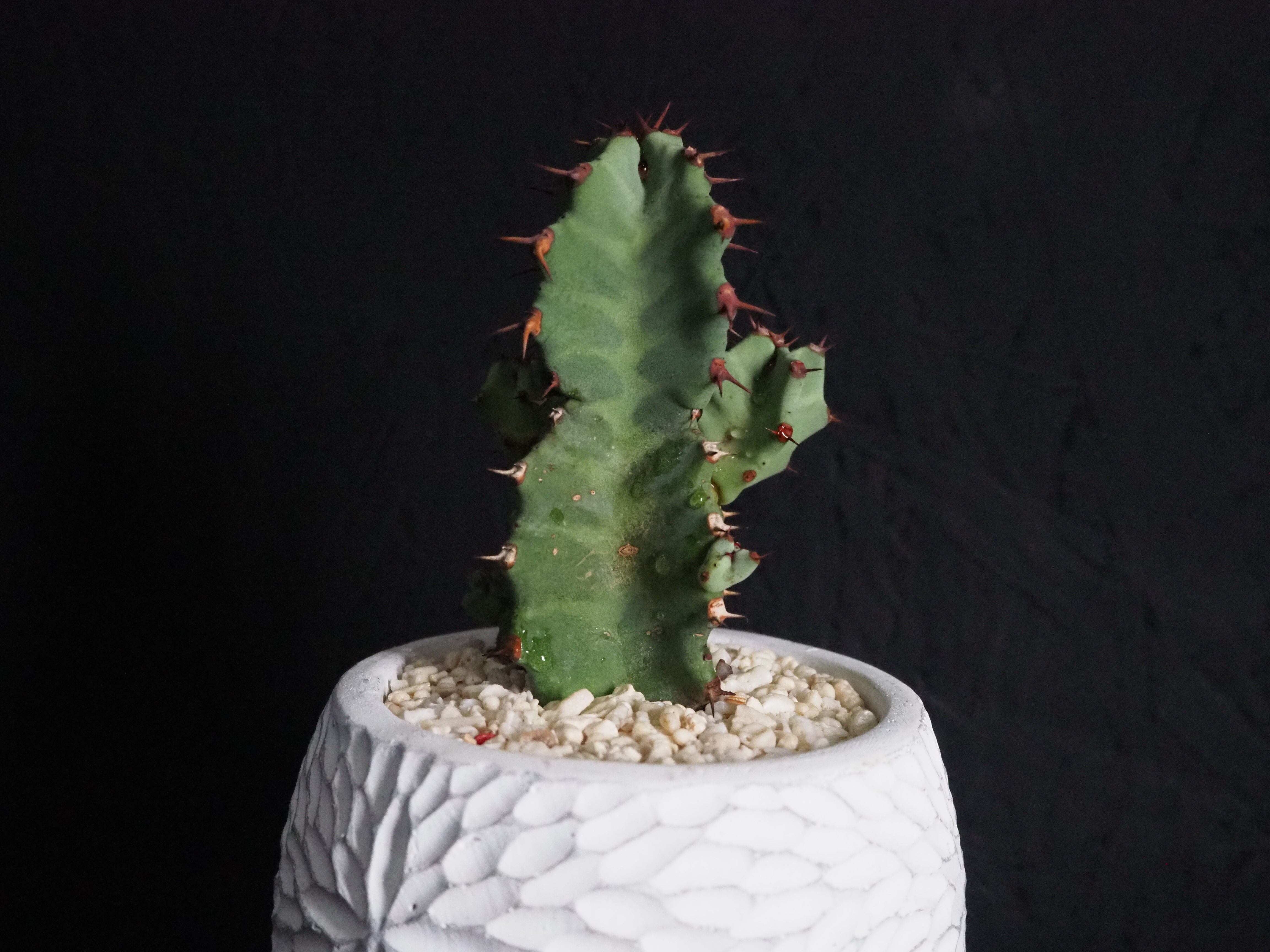 ホリダは「恐針キリン」その名の如く荒々しく豪快なフォルム、レシニフェラはモロッコ原産で、乳液には有毒な化学物質「レシニフェラトキシン(RTX)」を高濃度に含んでいるそう。誤って傷つけてしまった際など、乳液を素手で触ることは避けましょう。