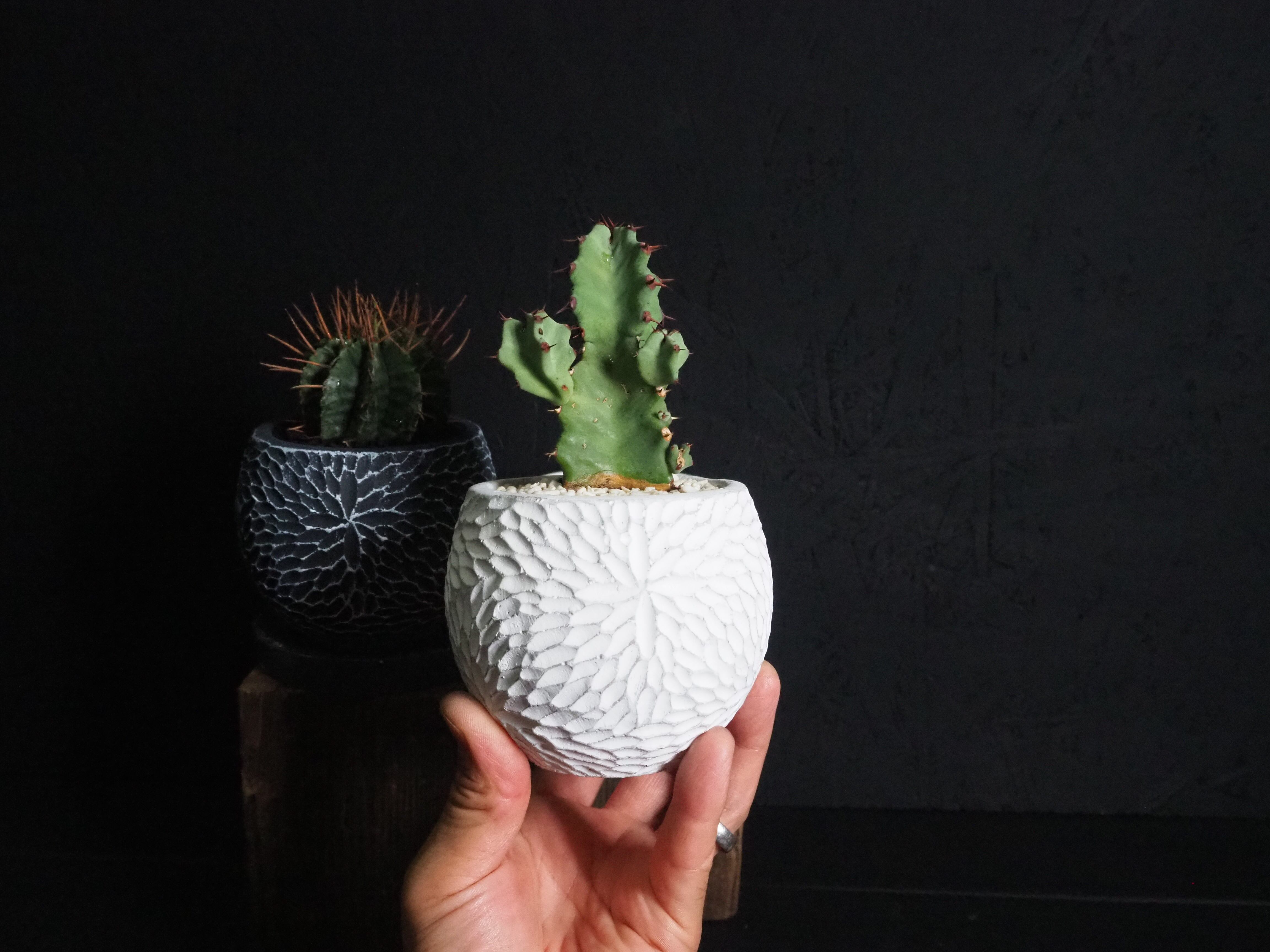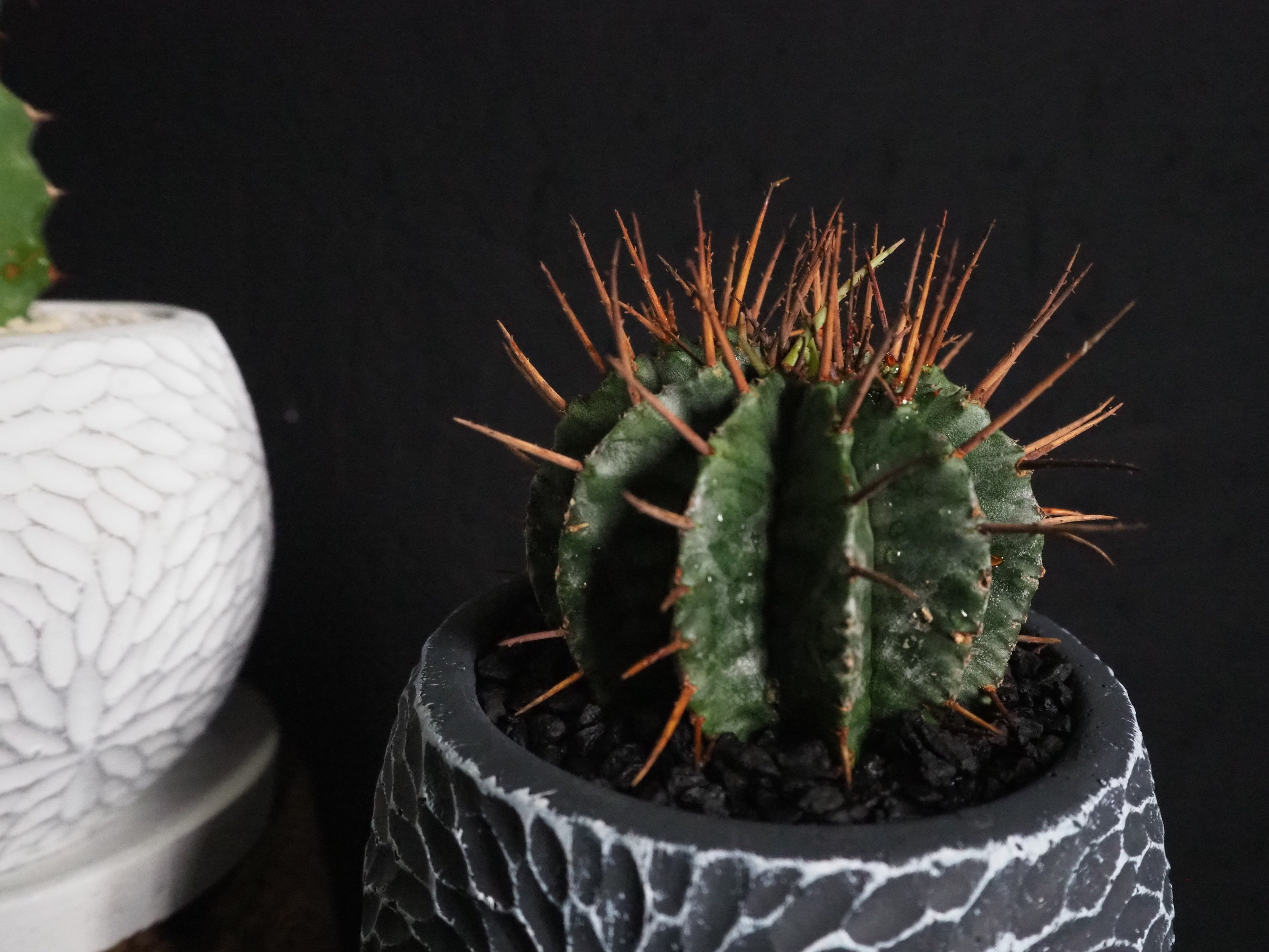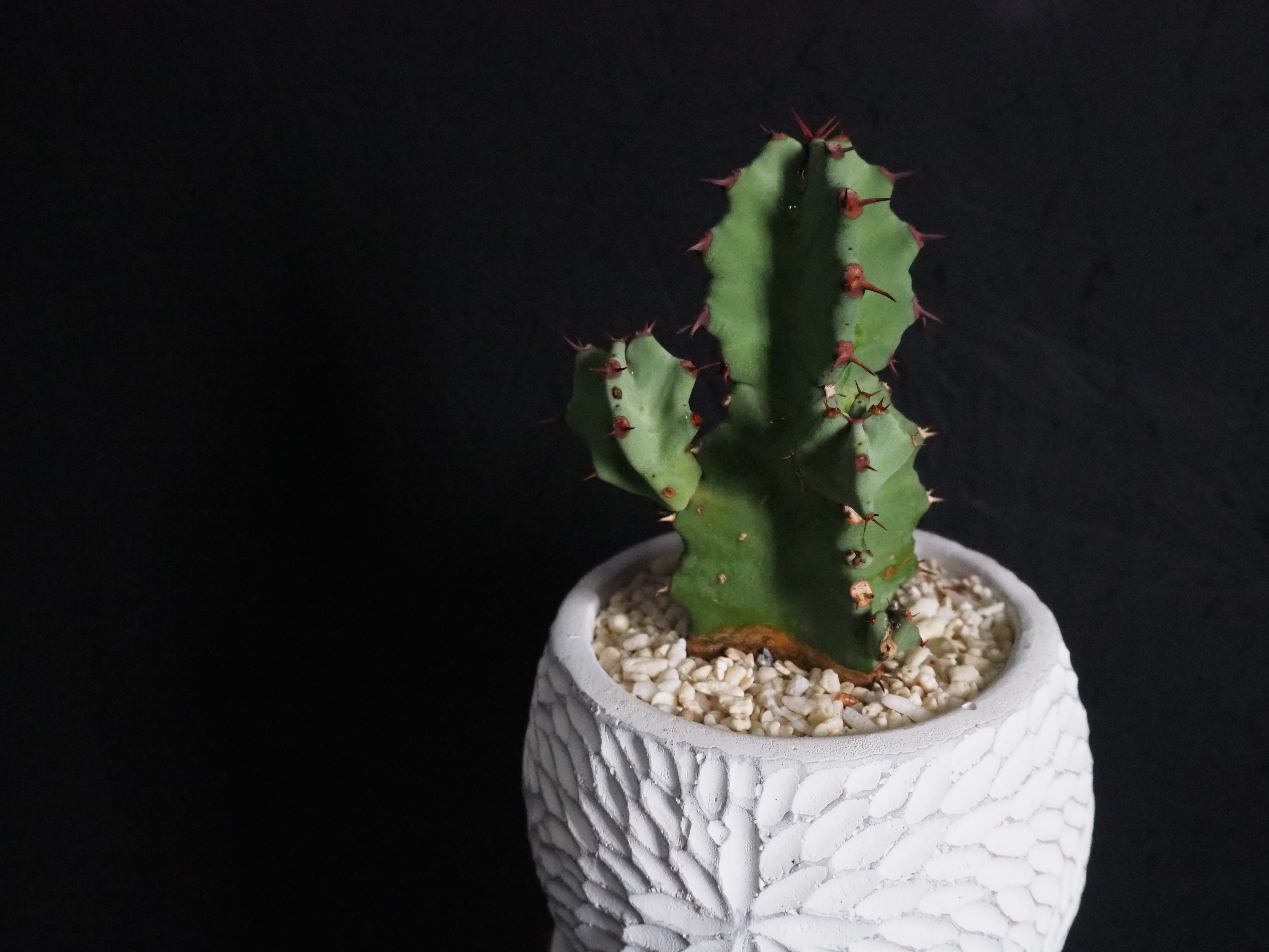 ホリダは「恐針キリン」その名の如く荒々しく豪快なフォルム、レシニフェラはモロッコ原産で、乳液には有毒な化学物質「レシニフェラトキシン(RTX)」を高濃度に含んでいるそう。誤って傷つけてしまった際など、乳液を素手で触ることは避けましょう。