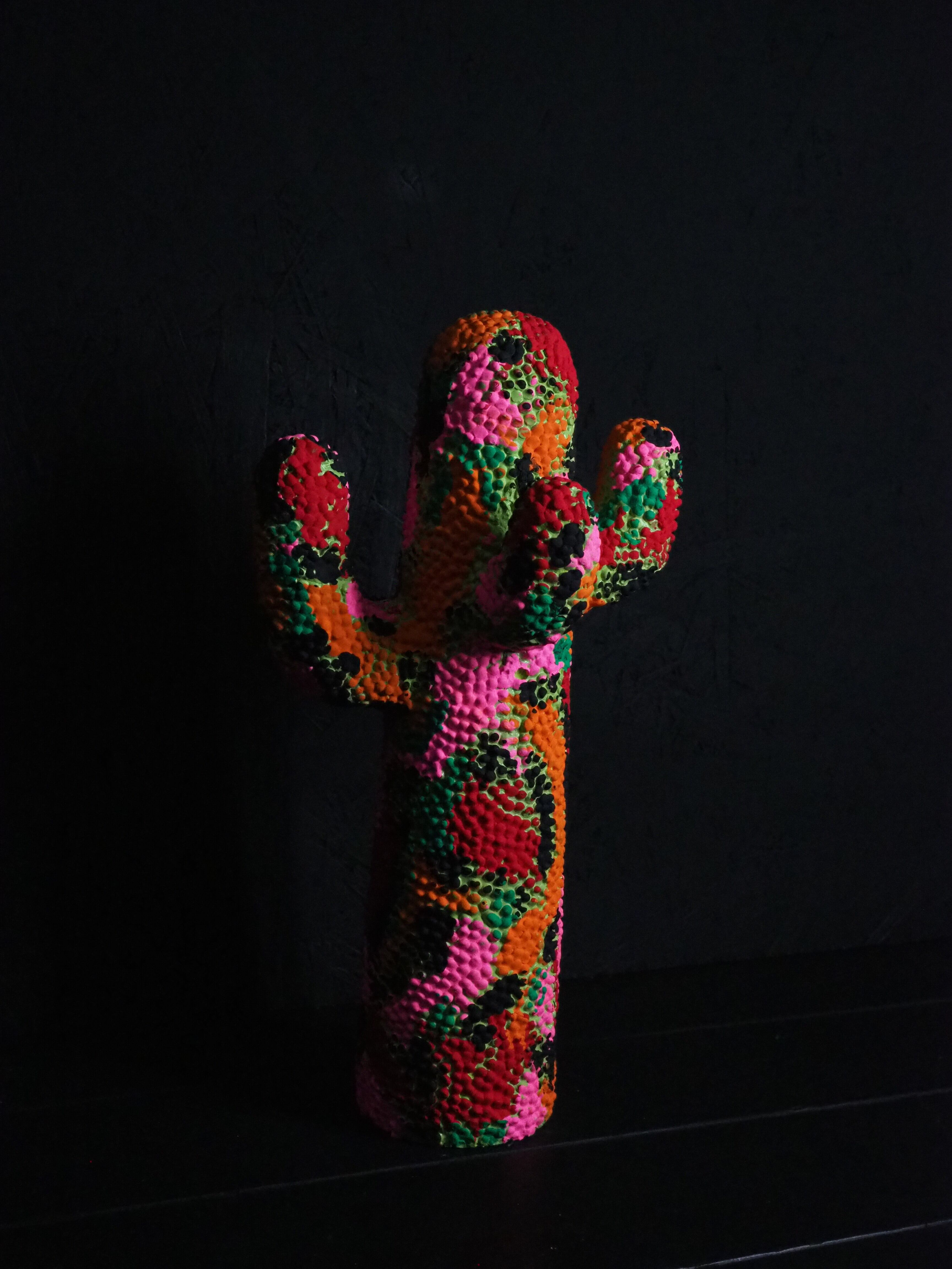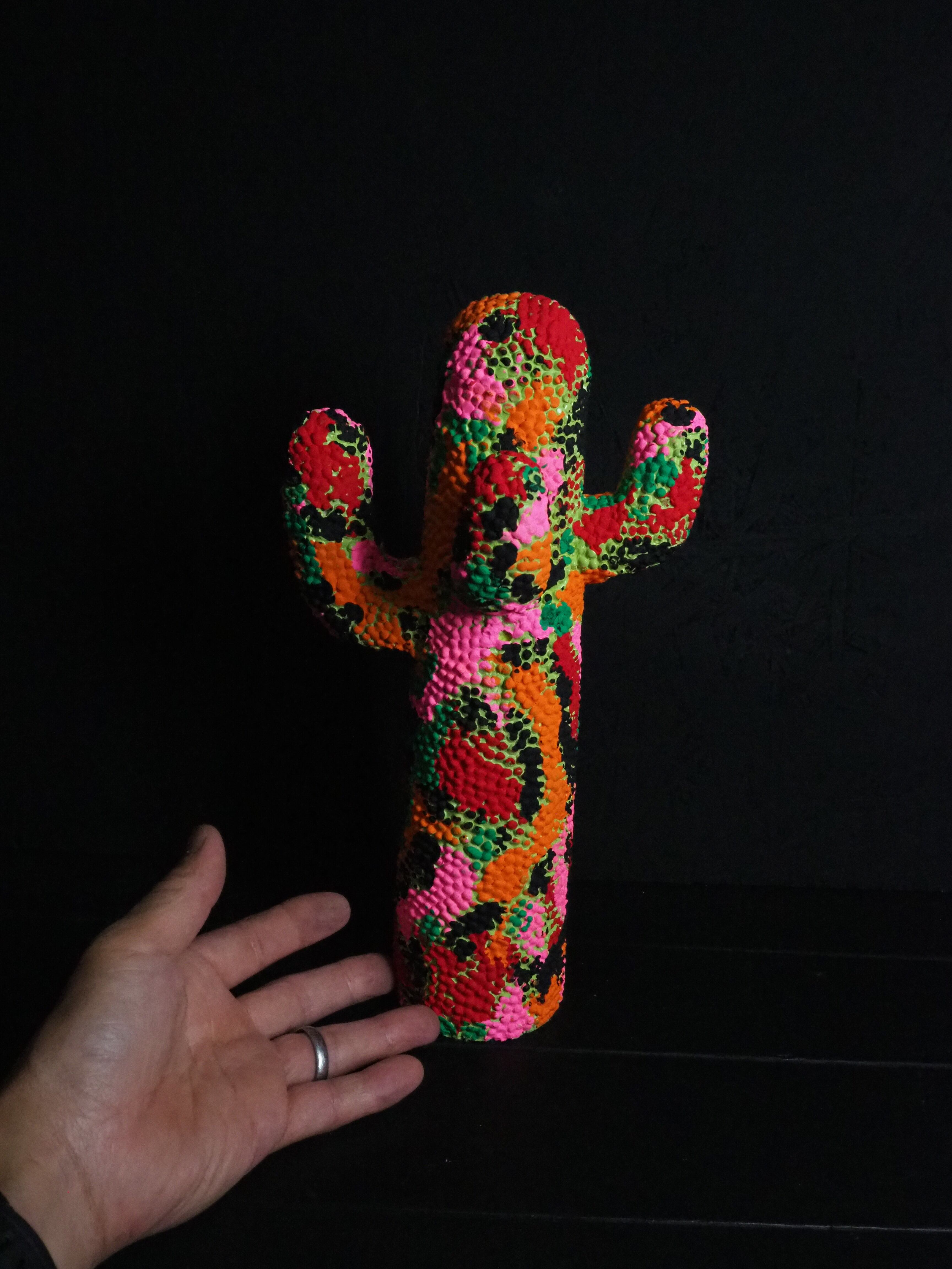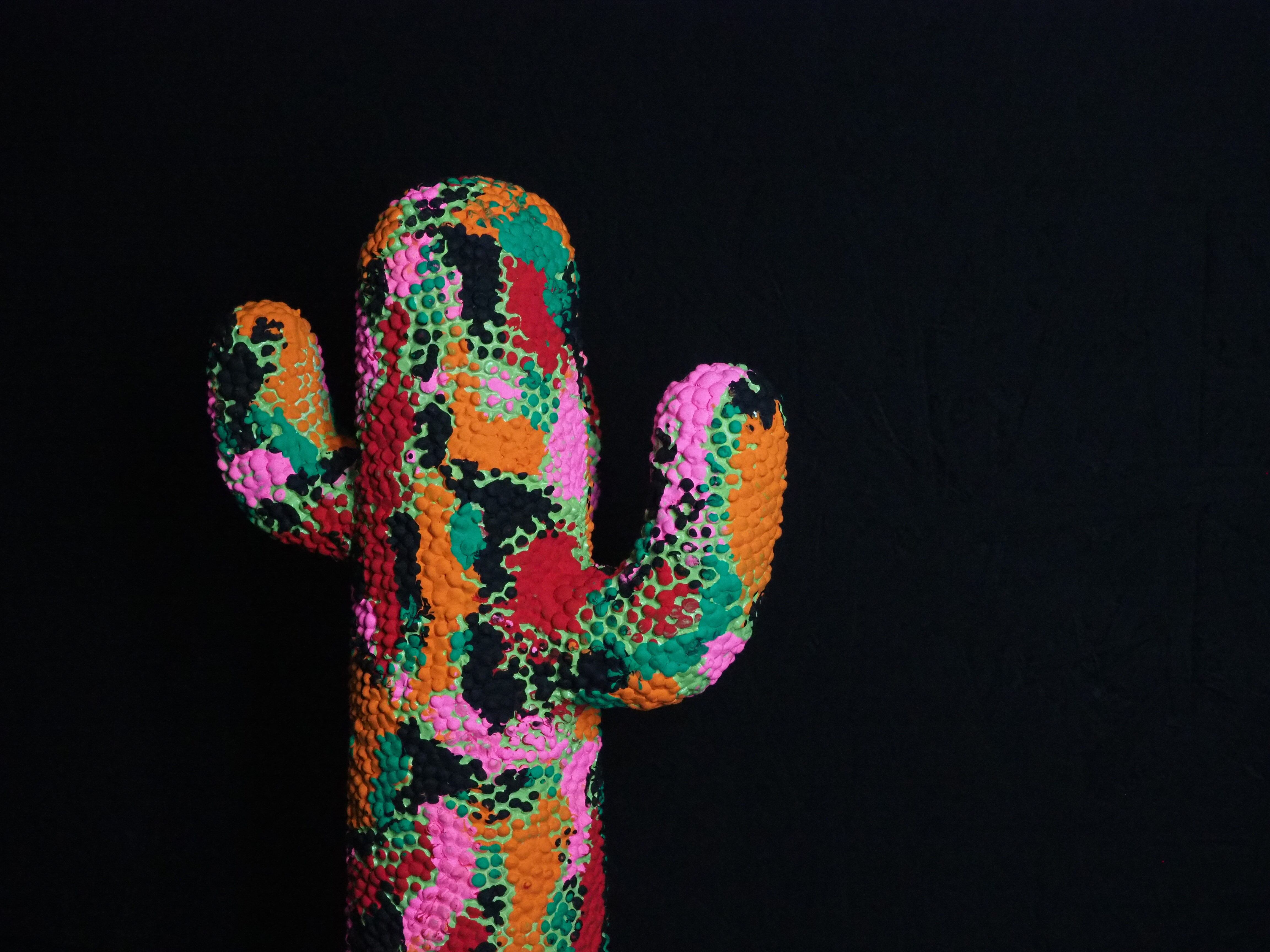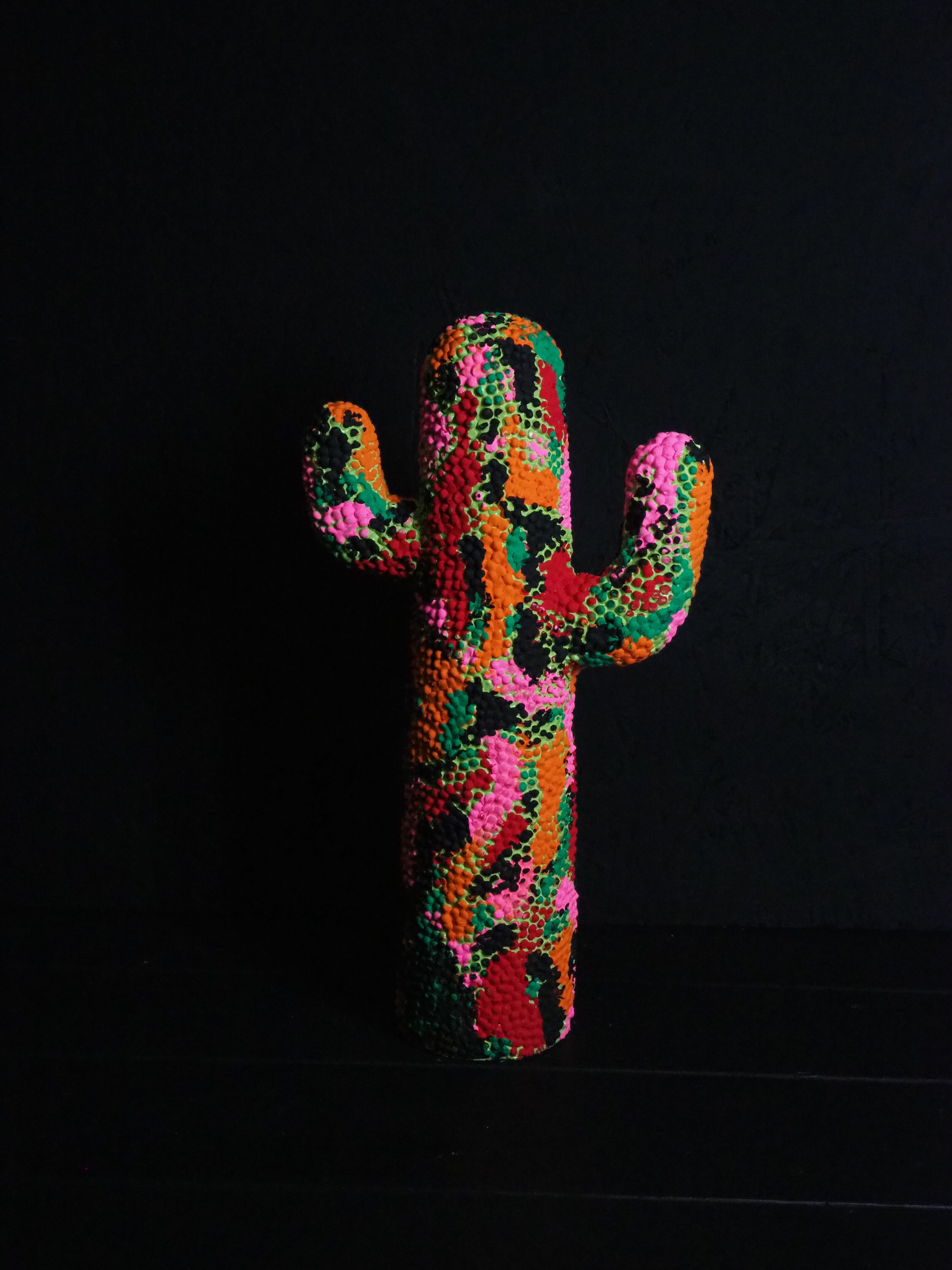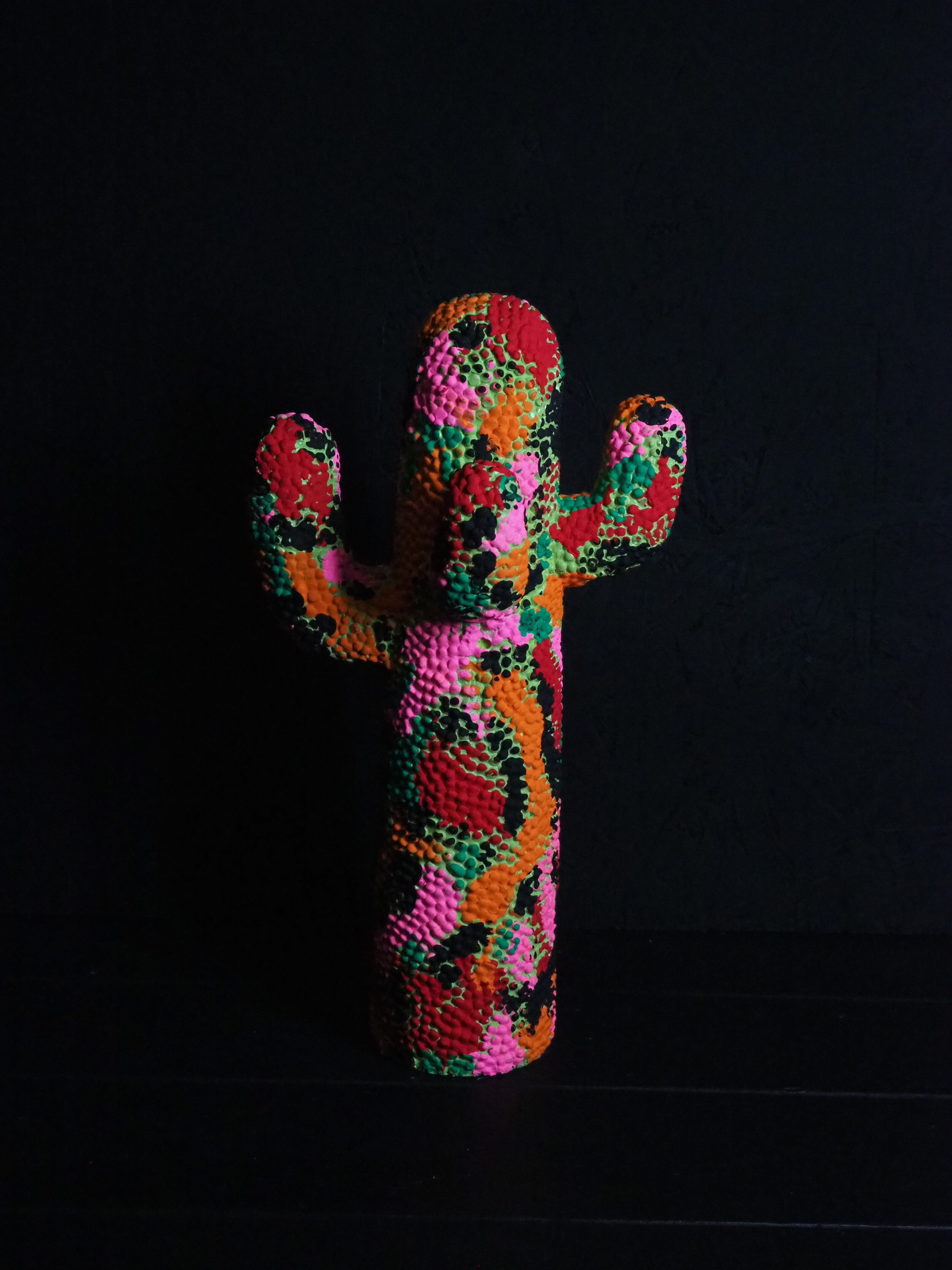 カラフルな迷彩柄を施した、当店完全オリジナルペイントのサボテンオブジェです。