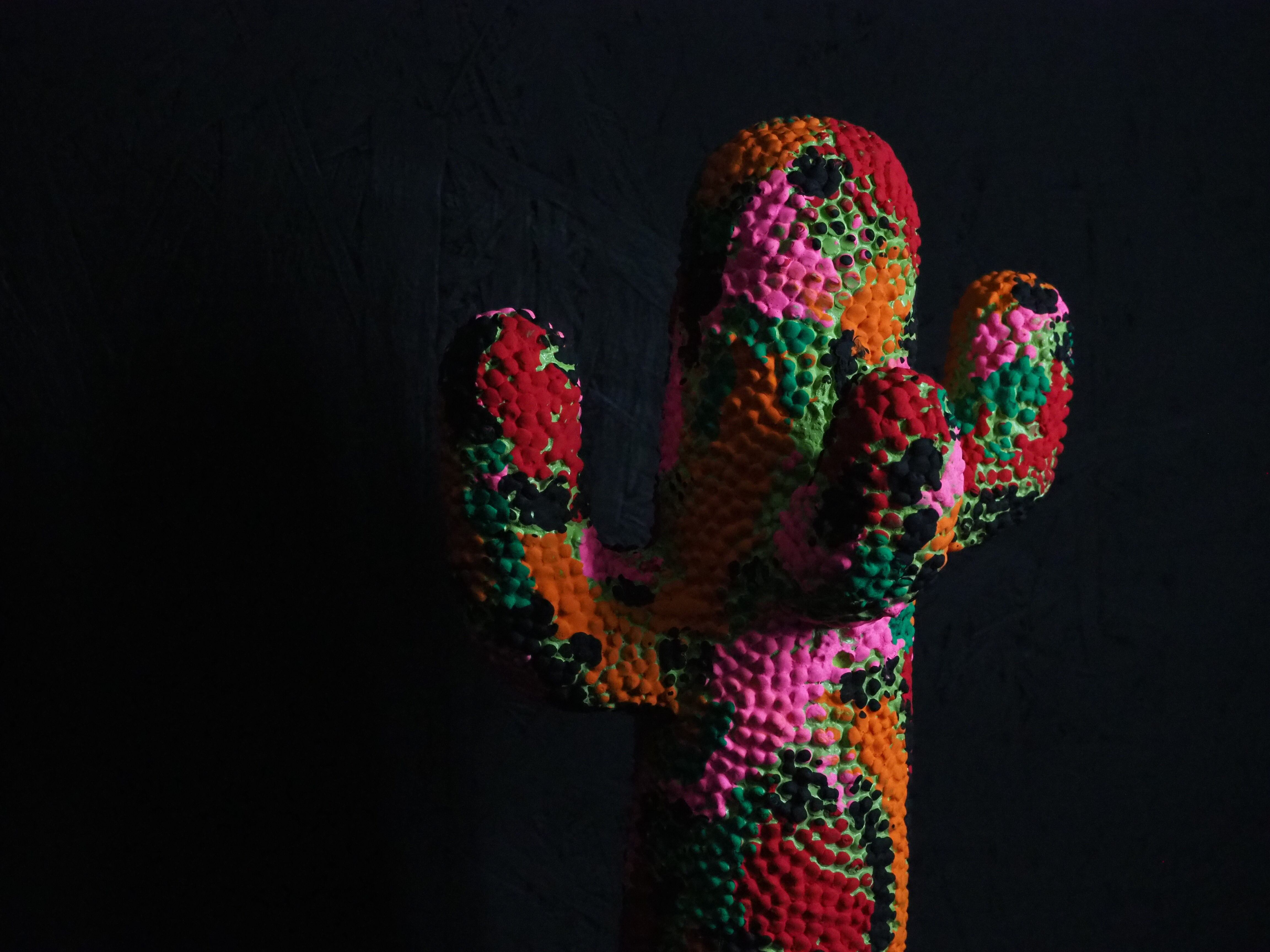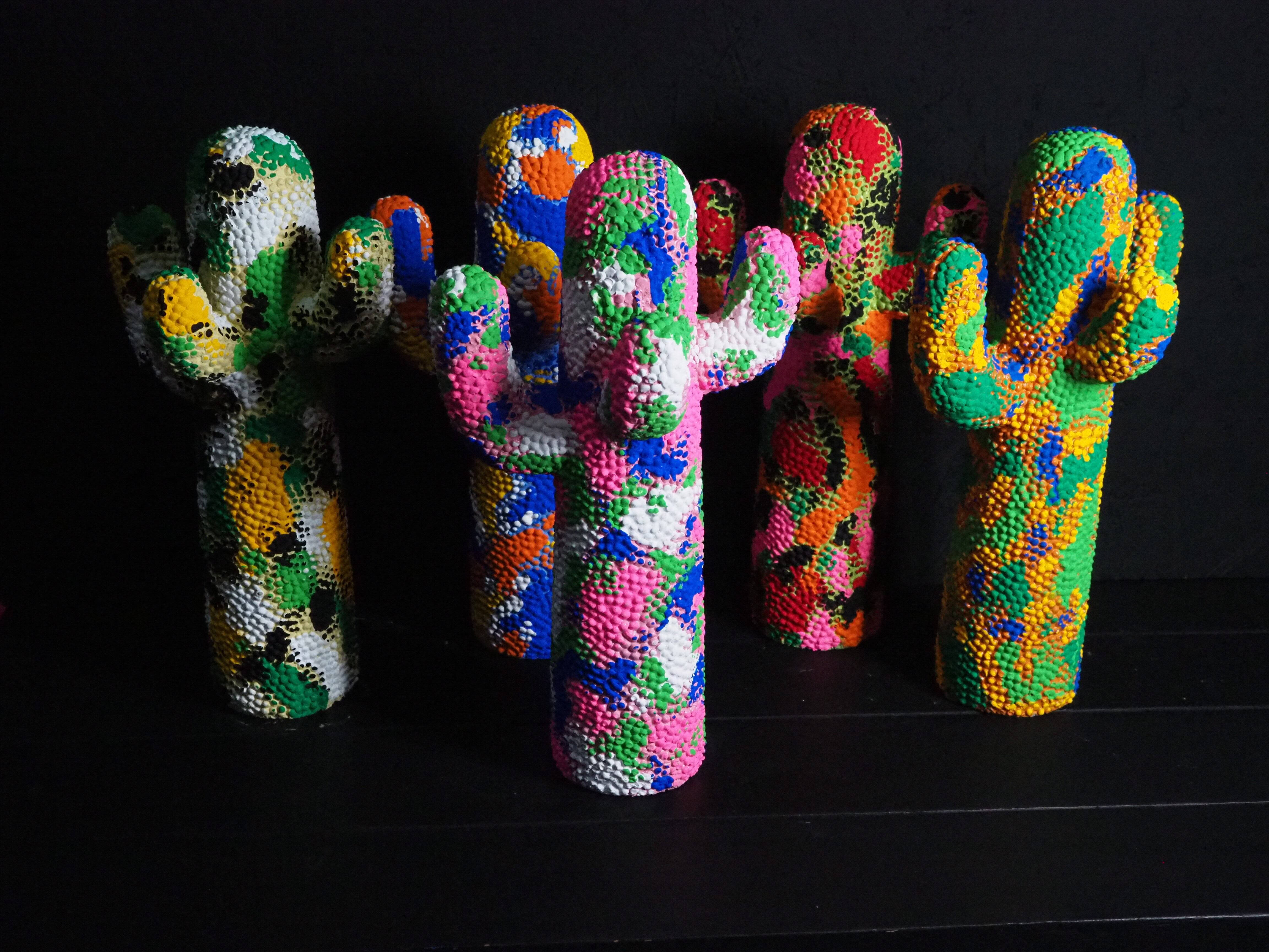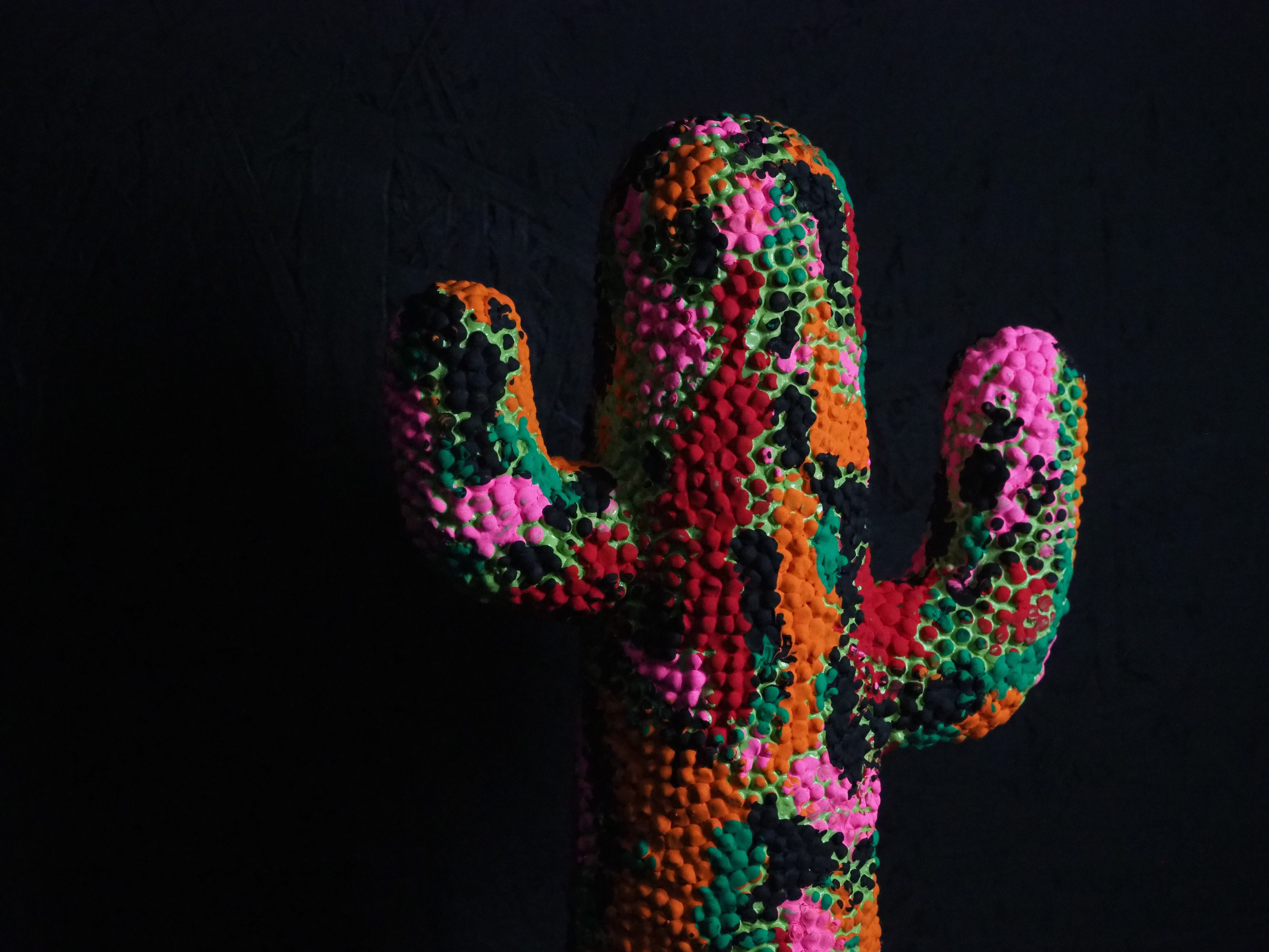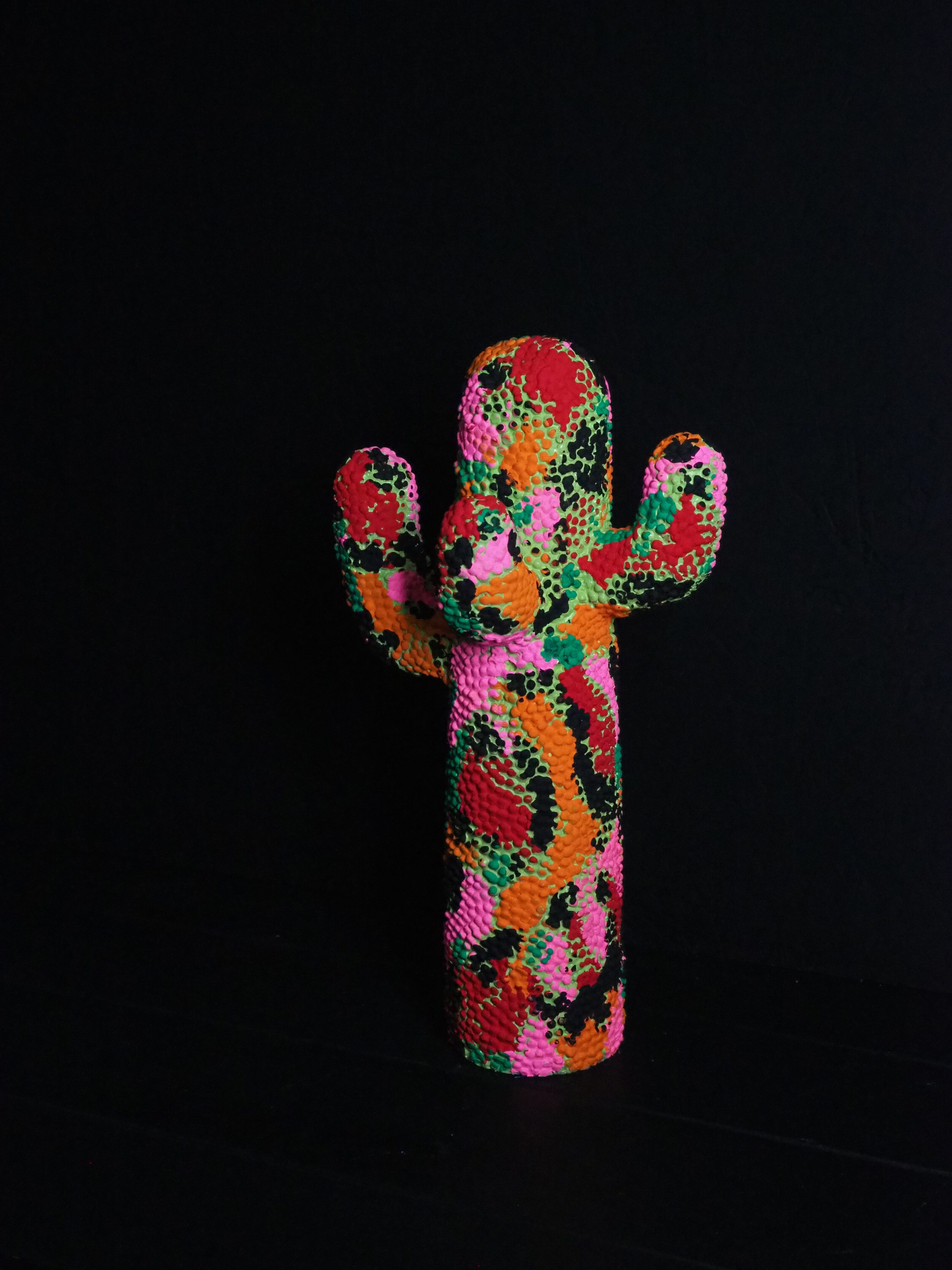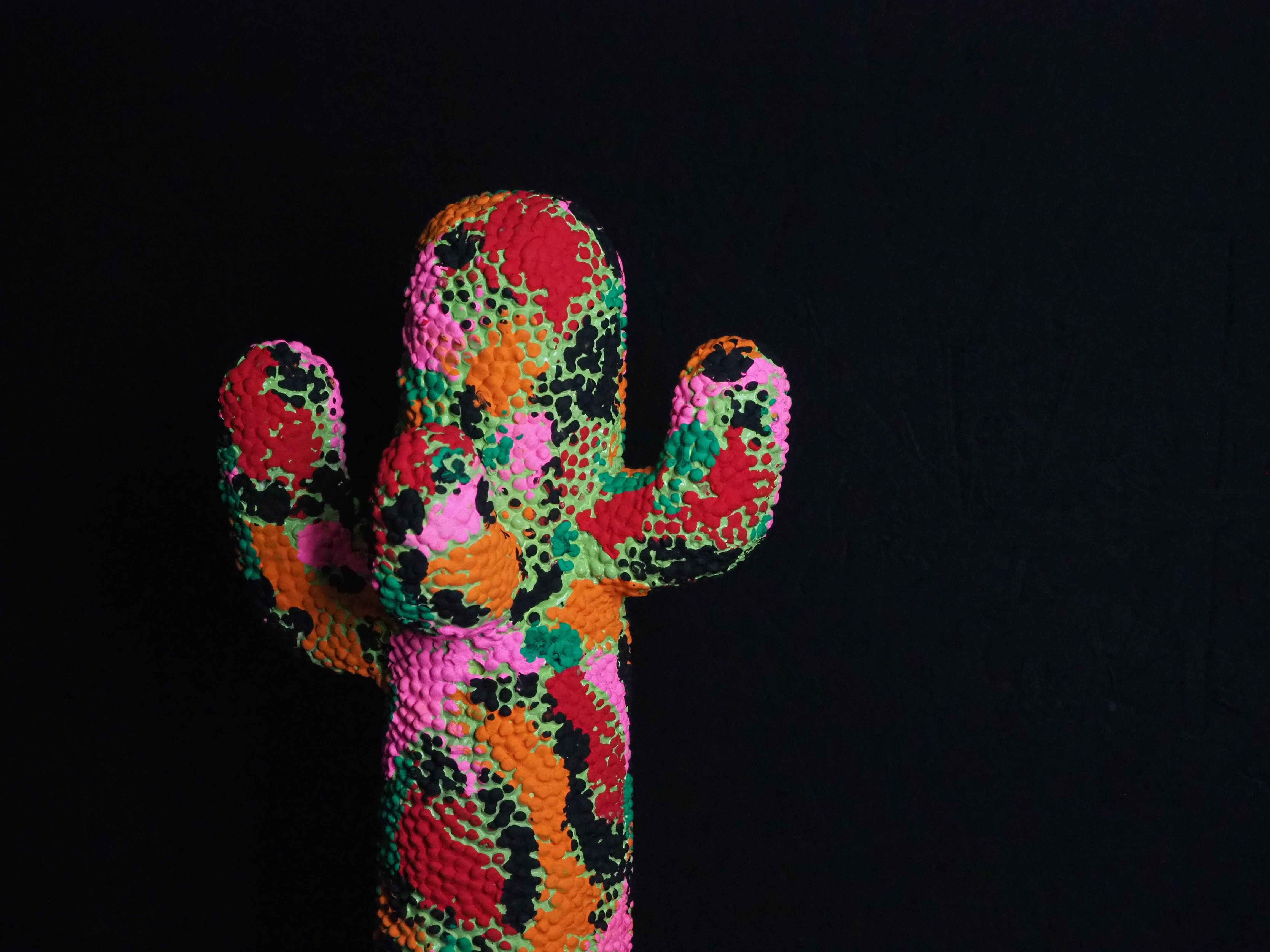 カラフルな迷彩柄を施した、当店完全オリジナルペイントのサボテンオブジェです。