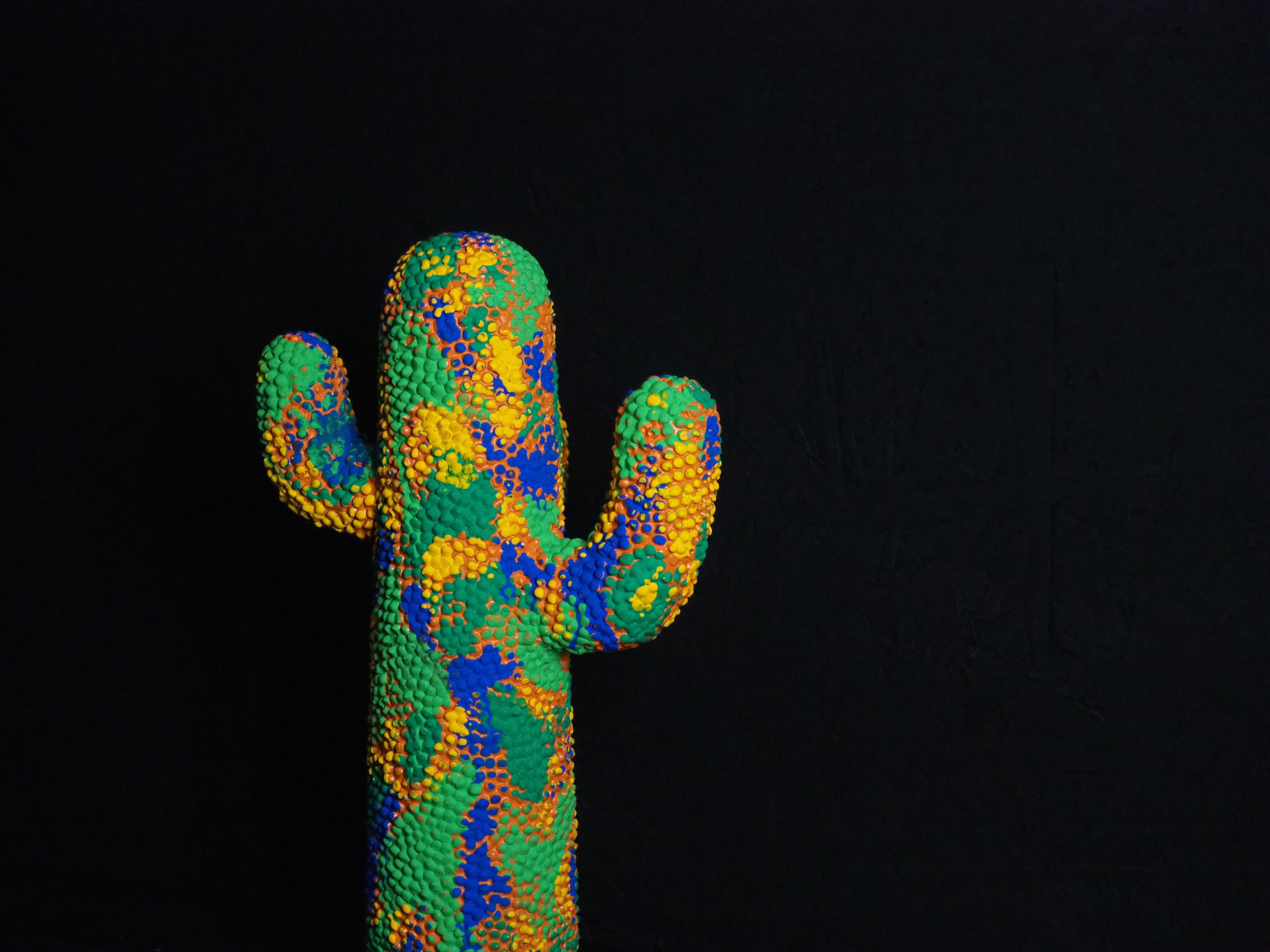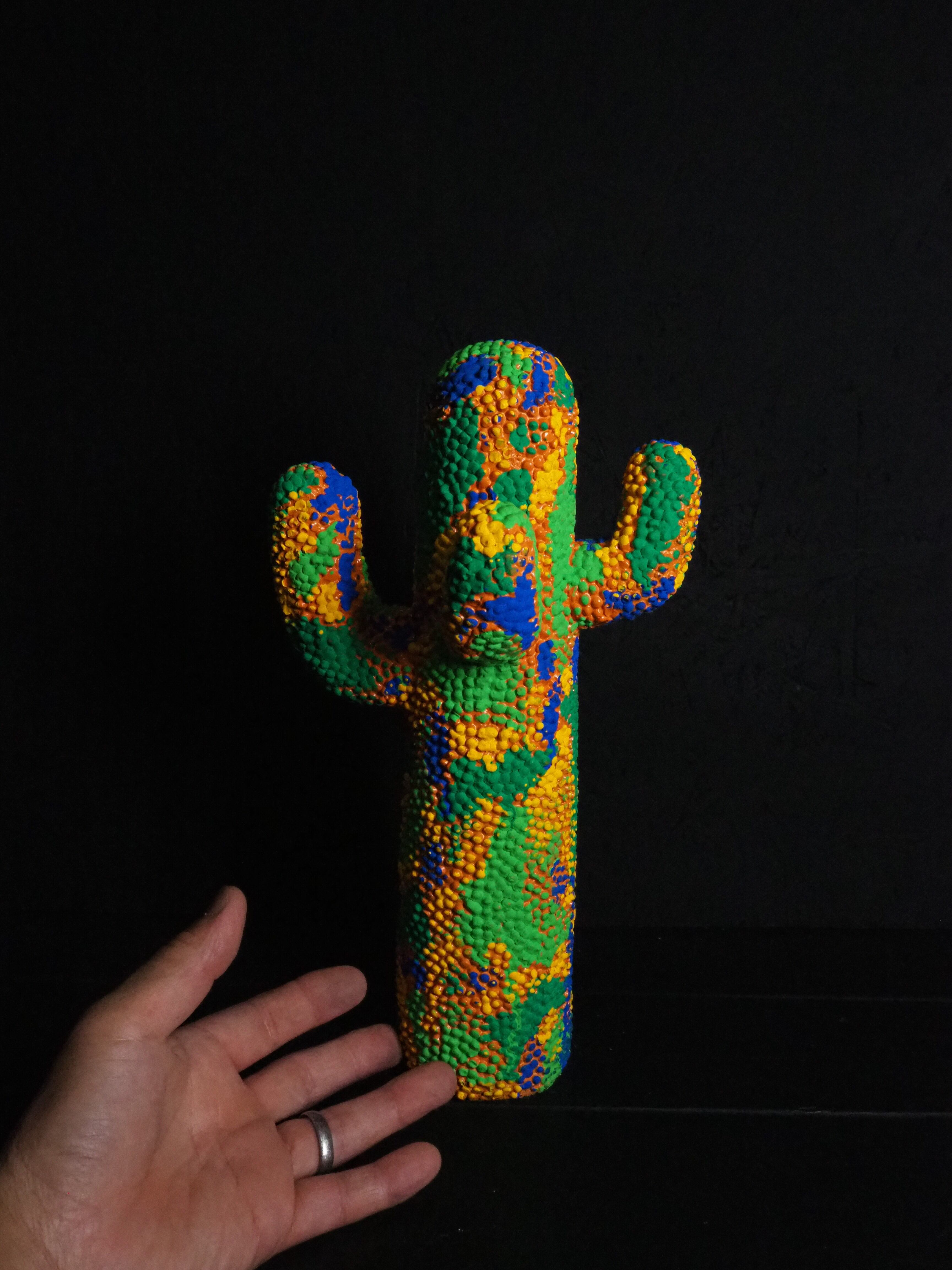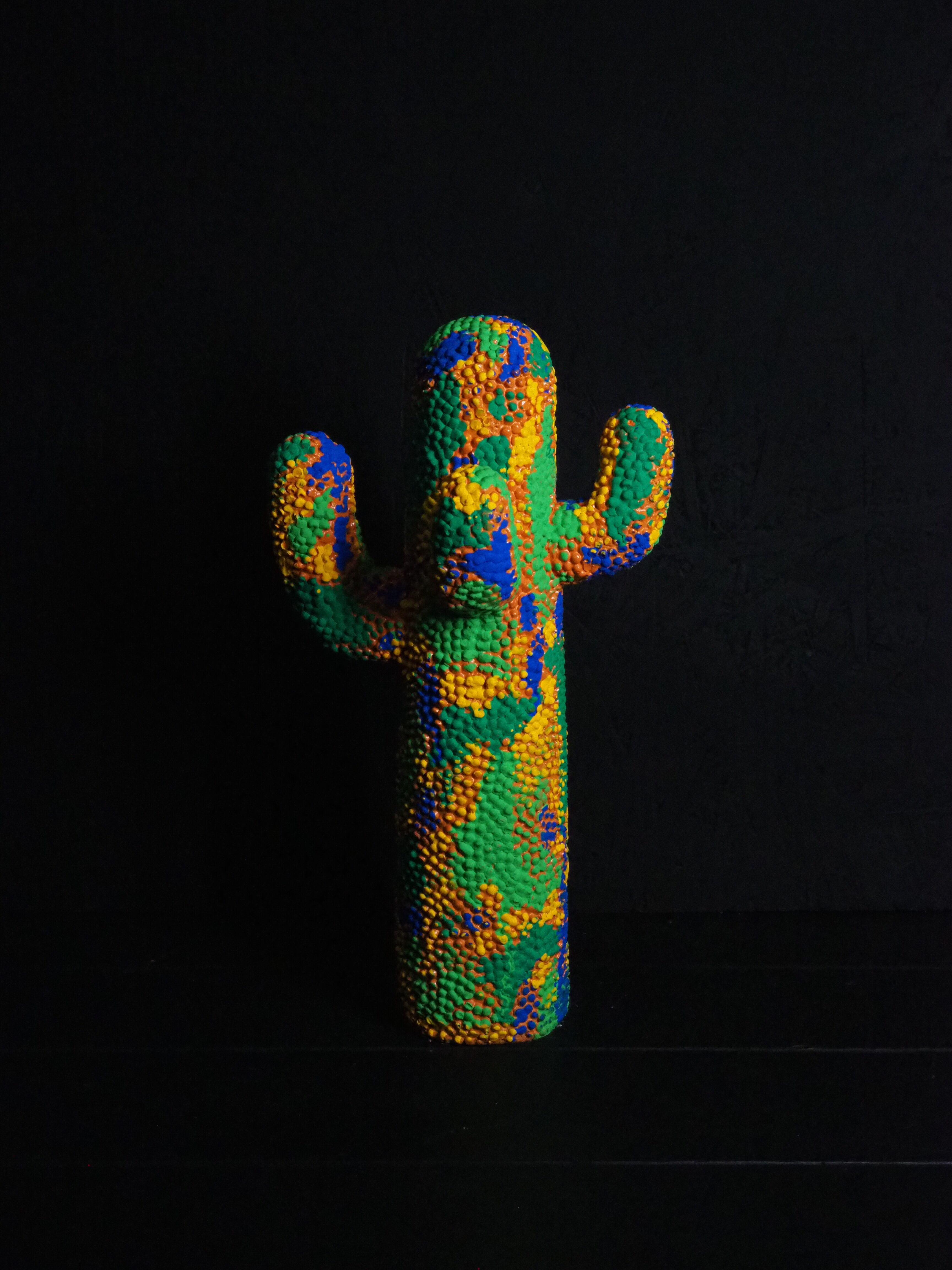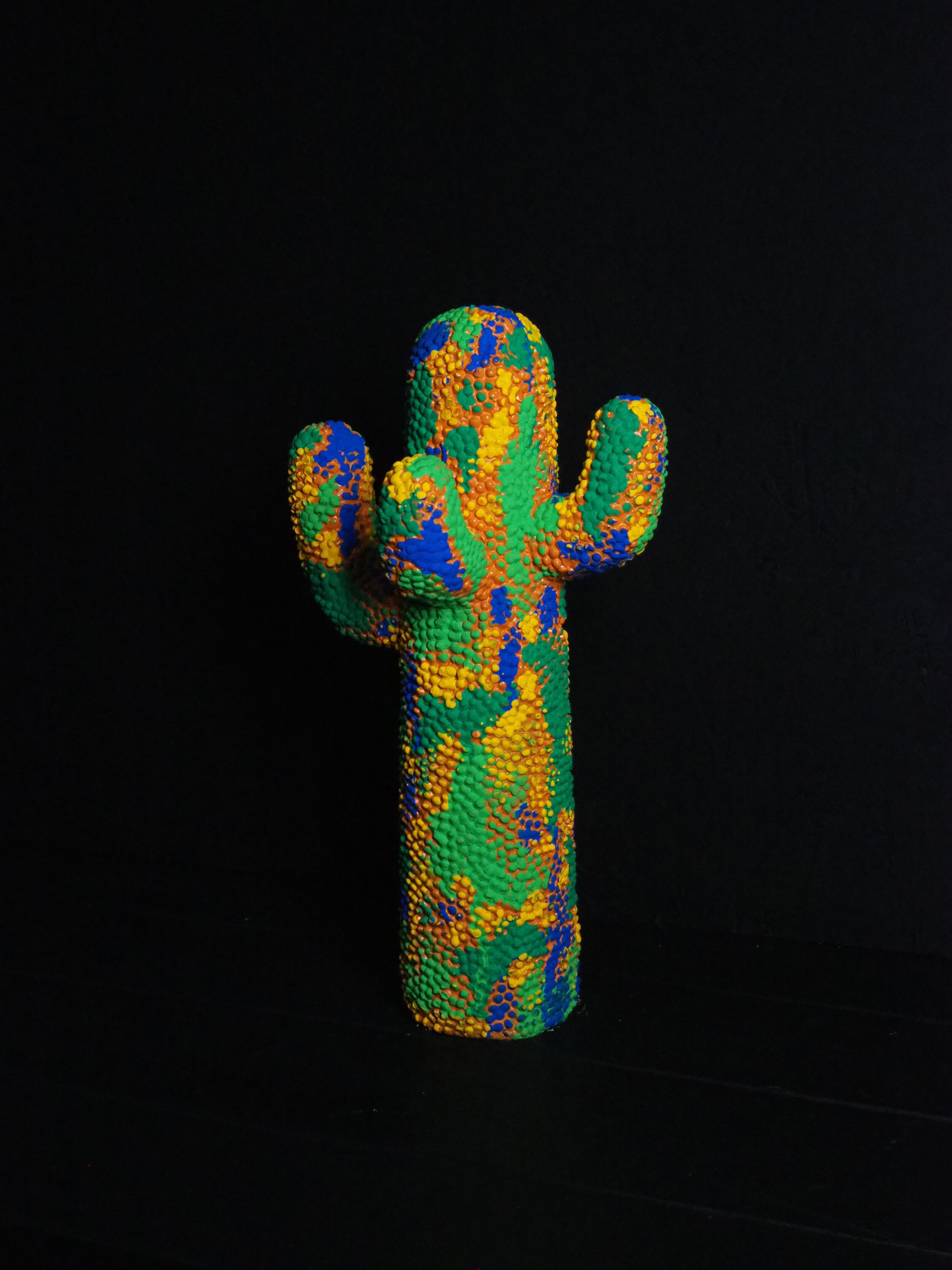 カラフルな迷彩柄を施した、当店完全オリジナルペイントのサボテンオブジェです。