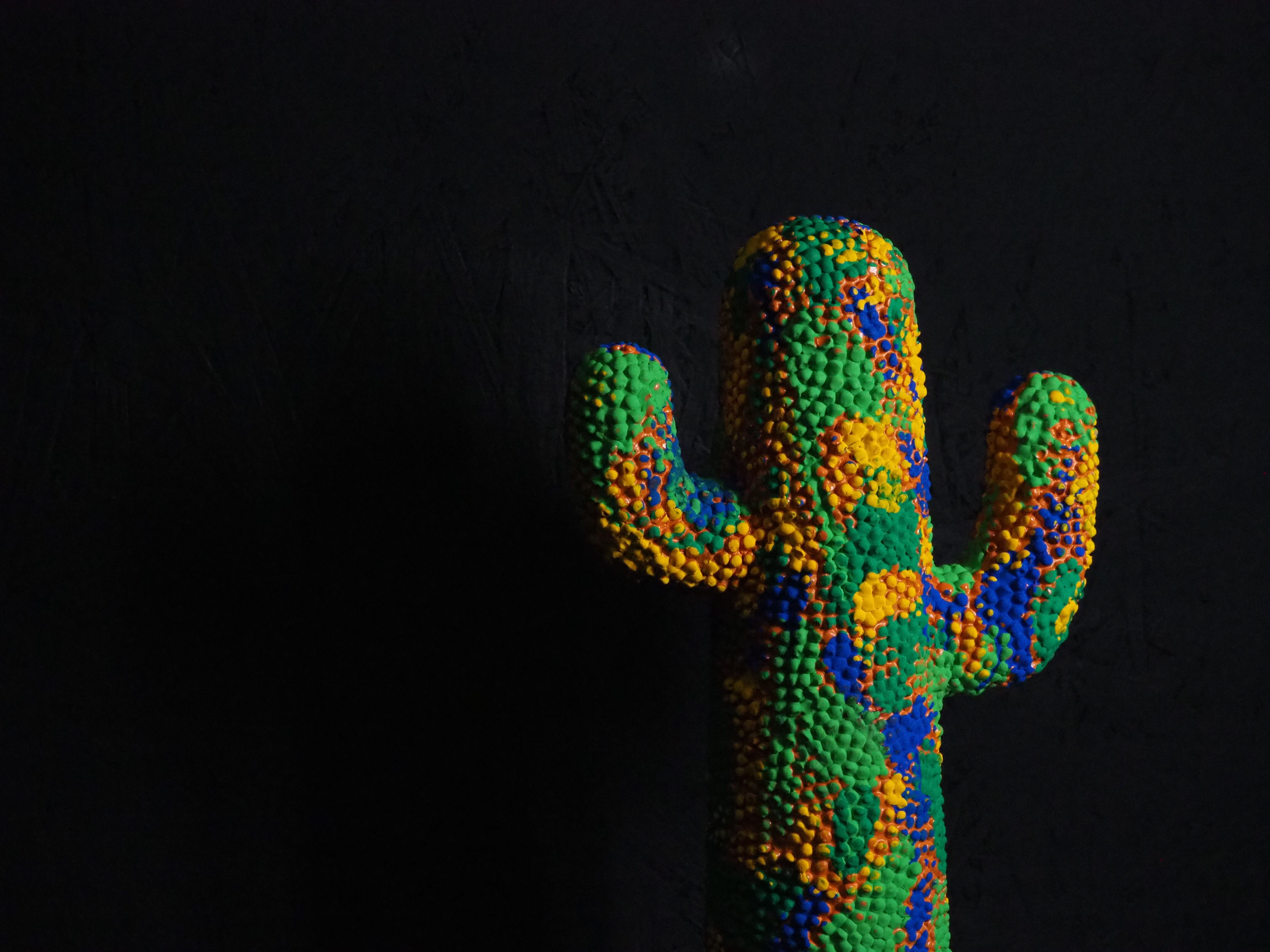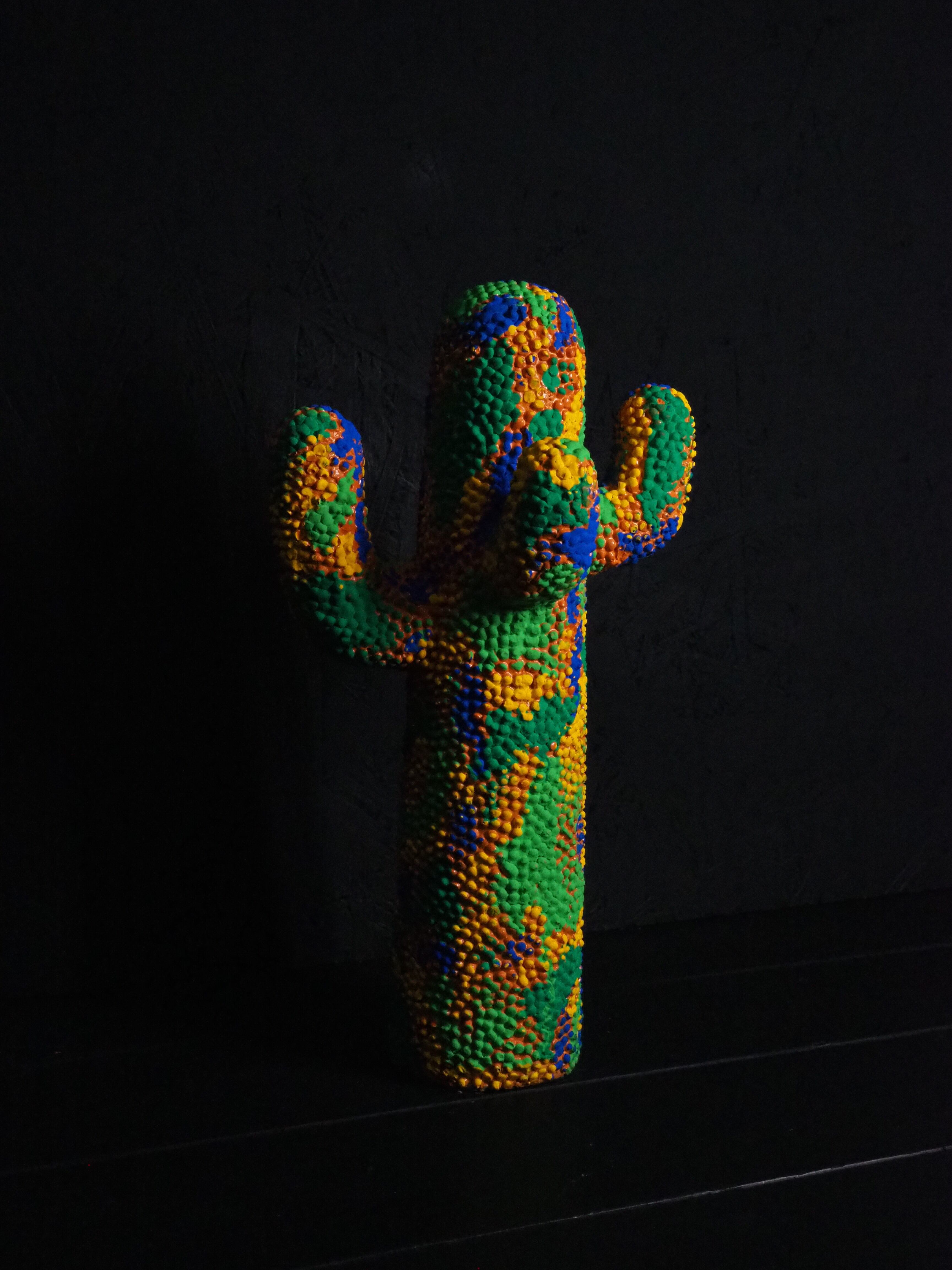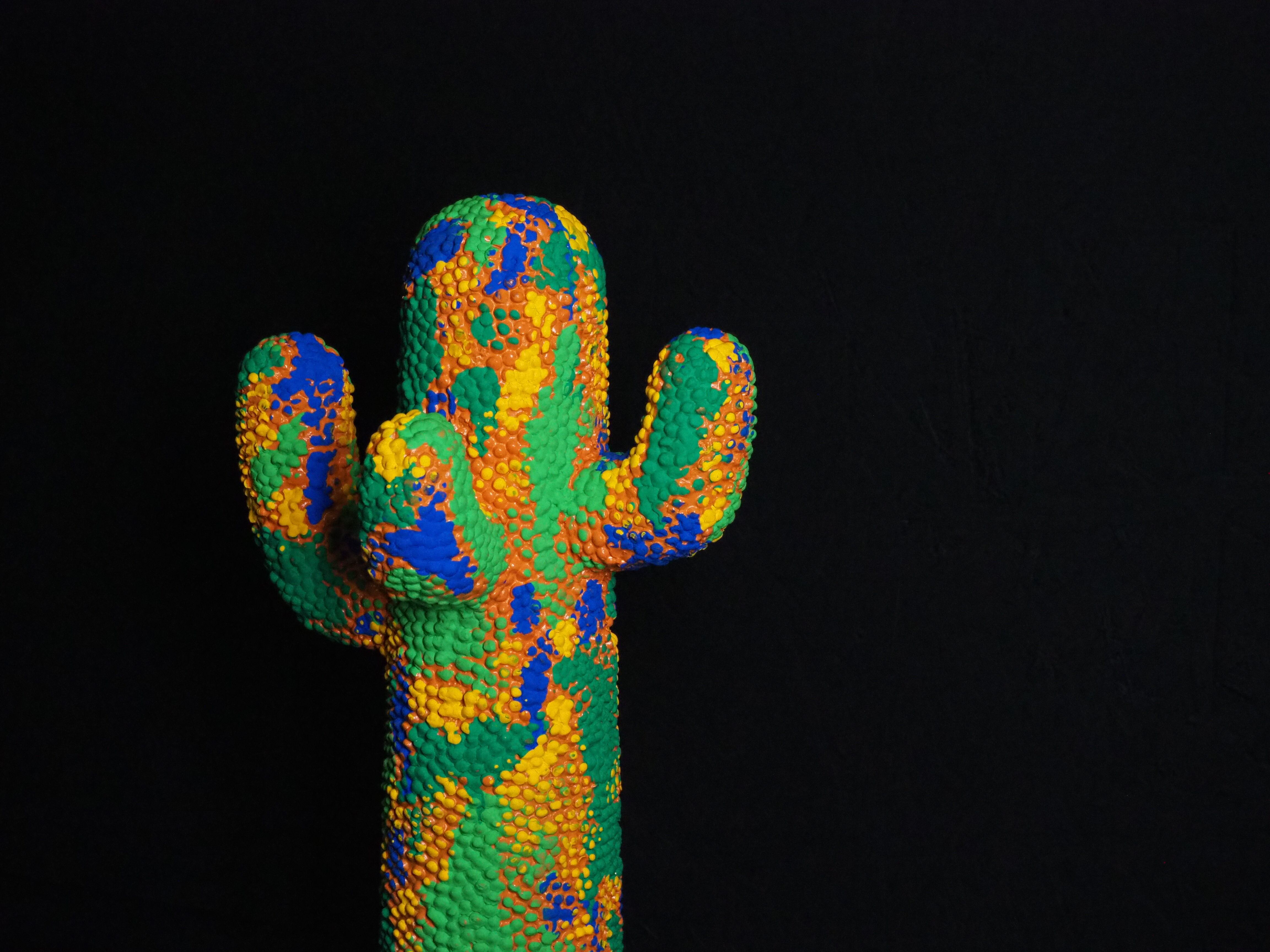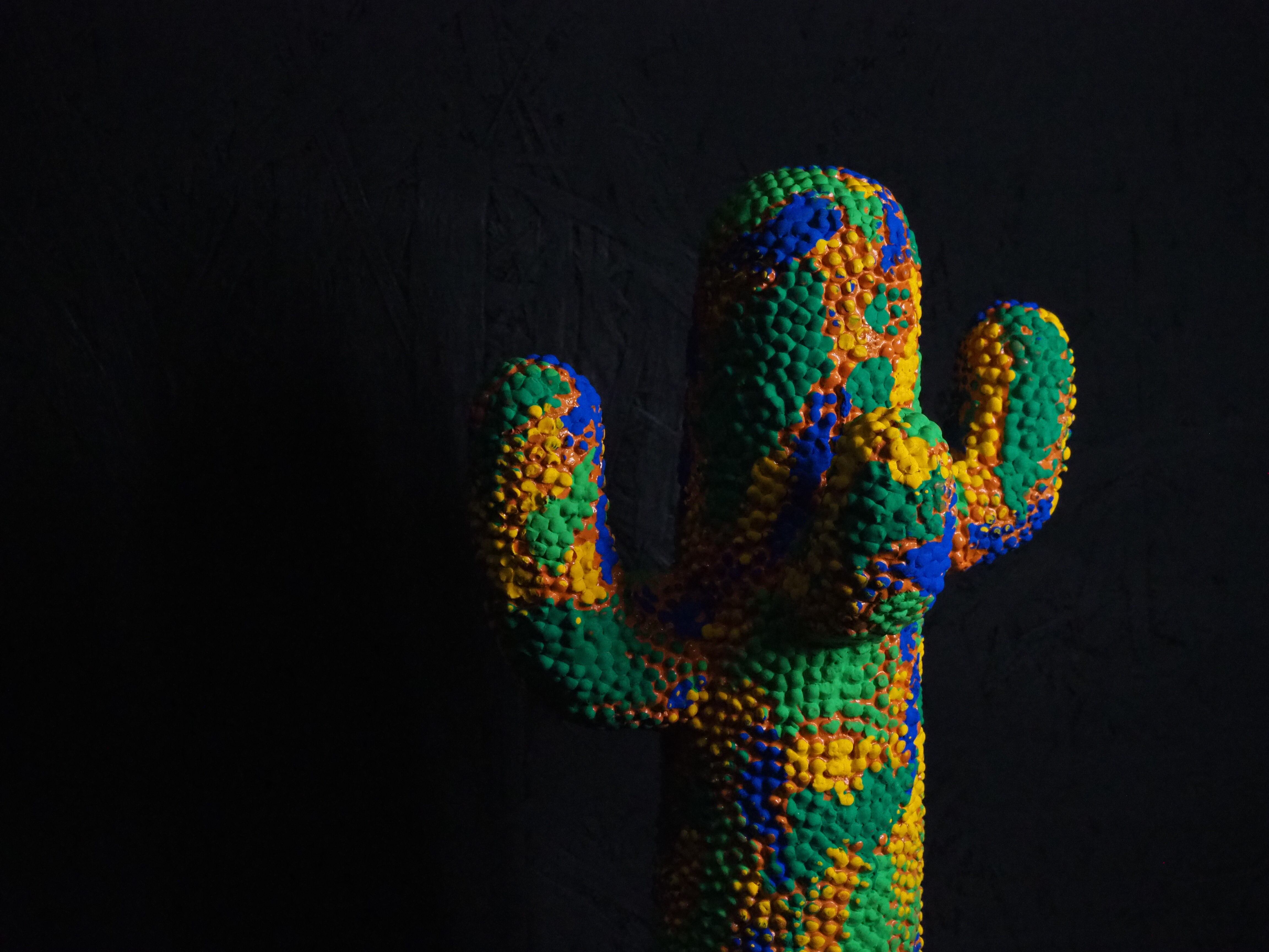 カラフルな迷彩柄を施した、当店完全オリジナルペイントのサボテンオブジェです。