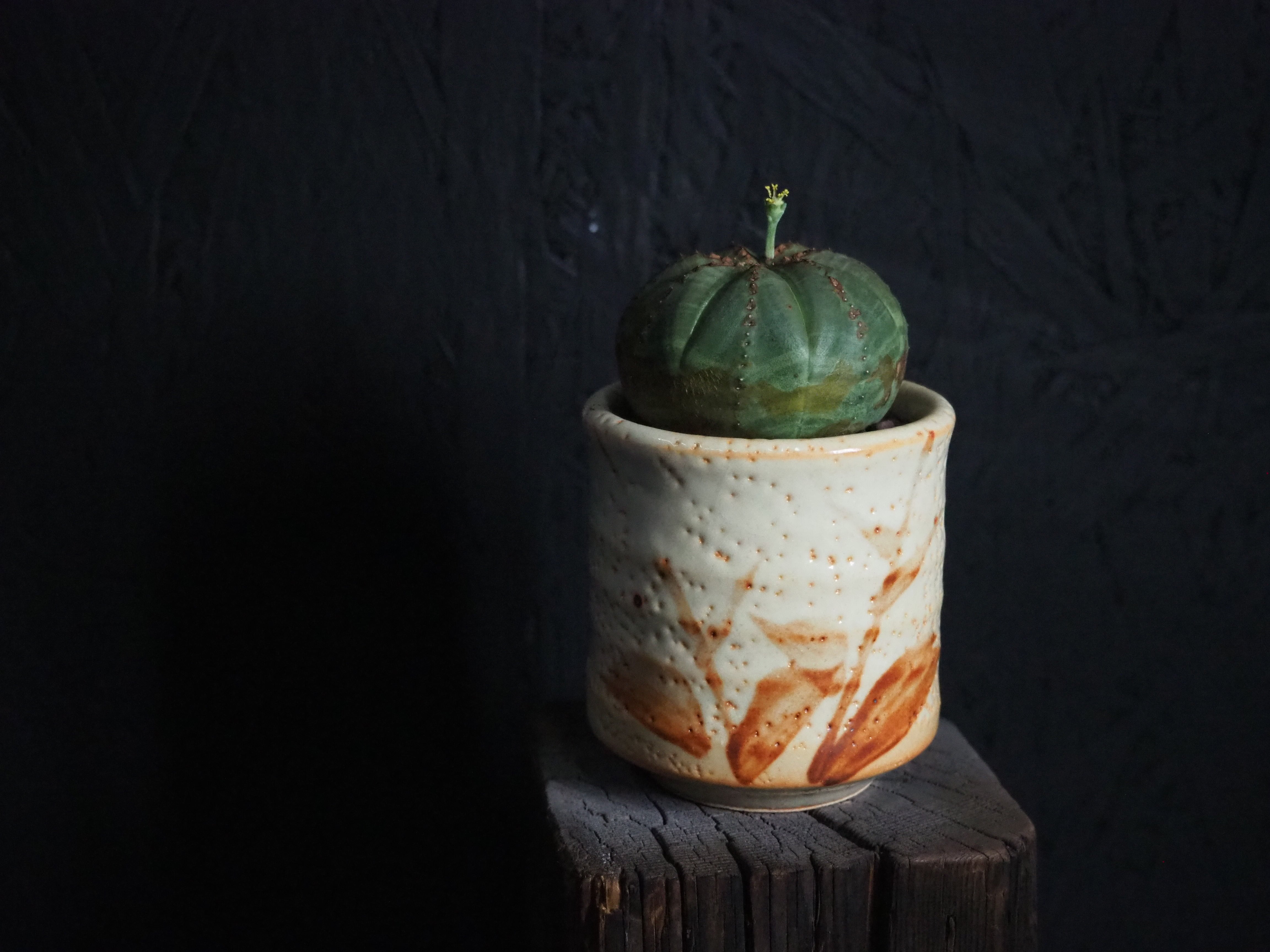 ユーフォルビア・オベサ<雄株>~昭和レトロ鉢/2022年秋