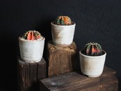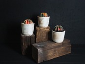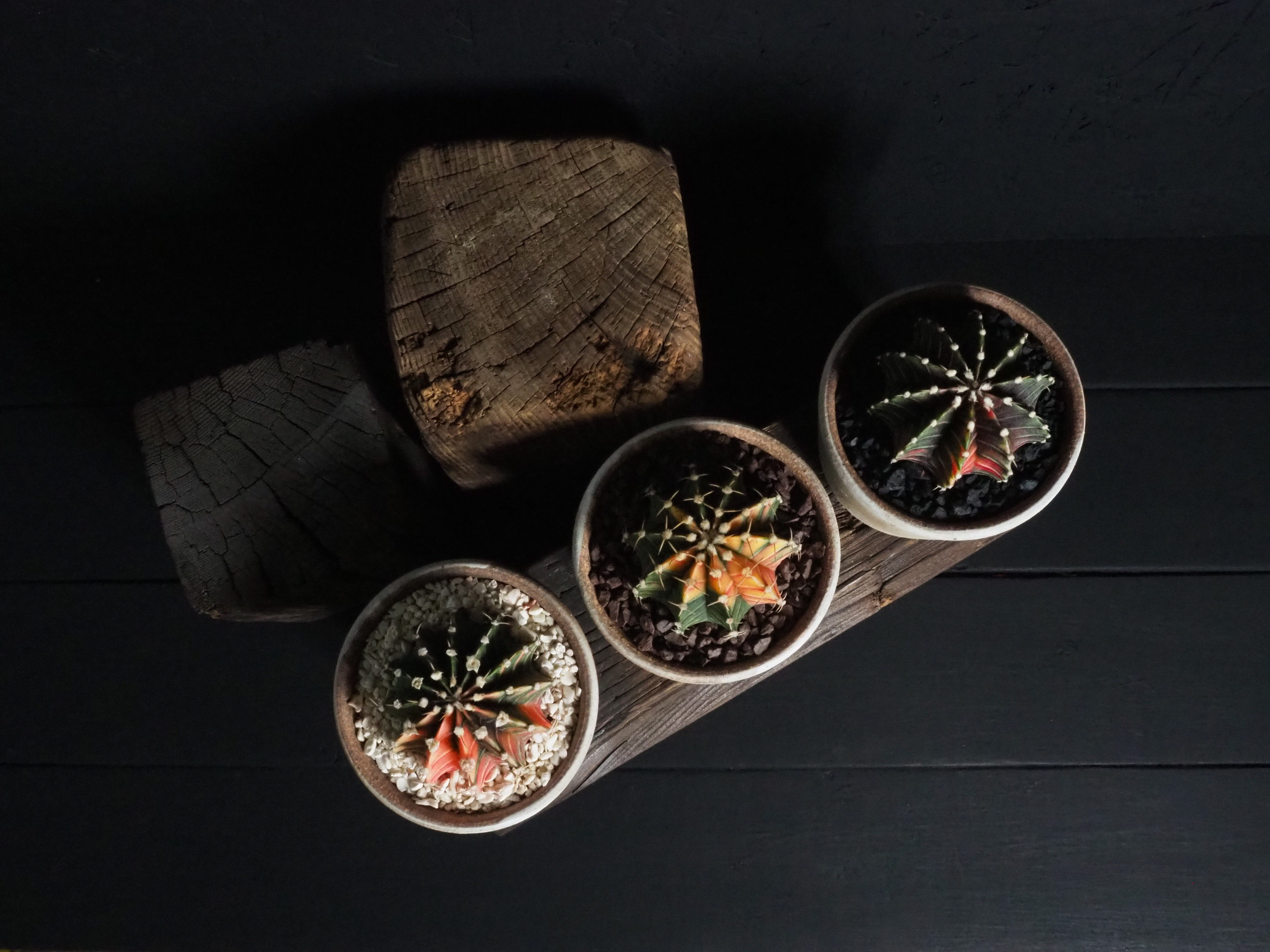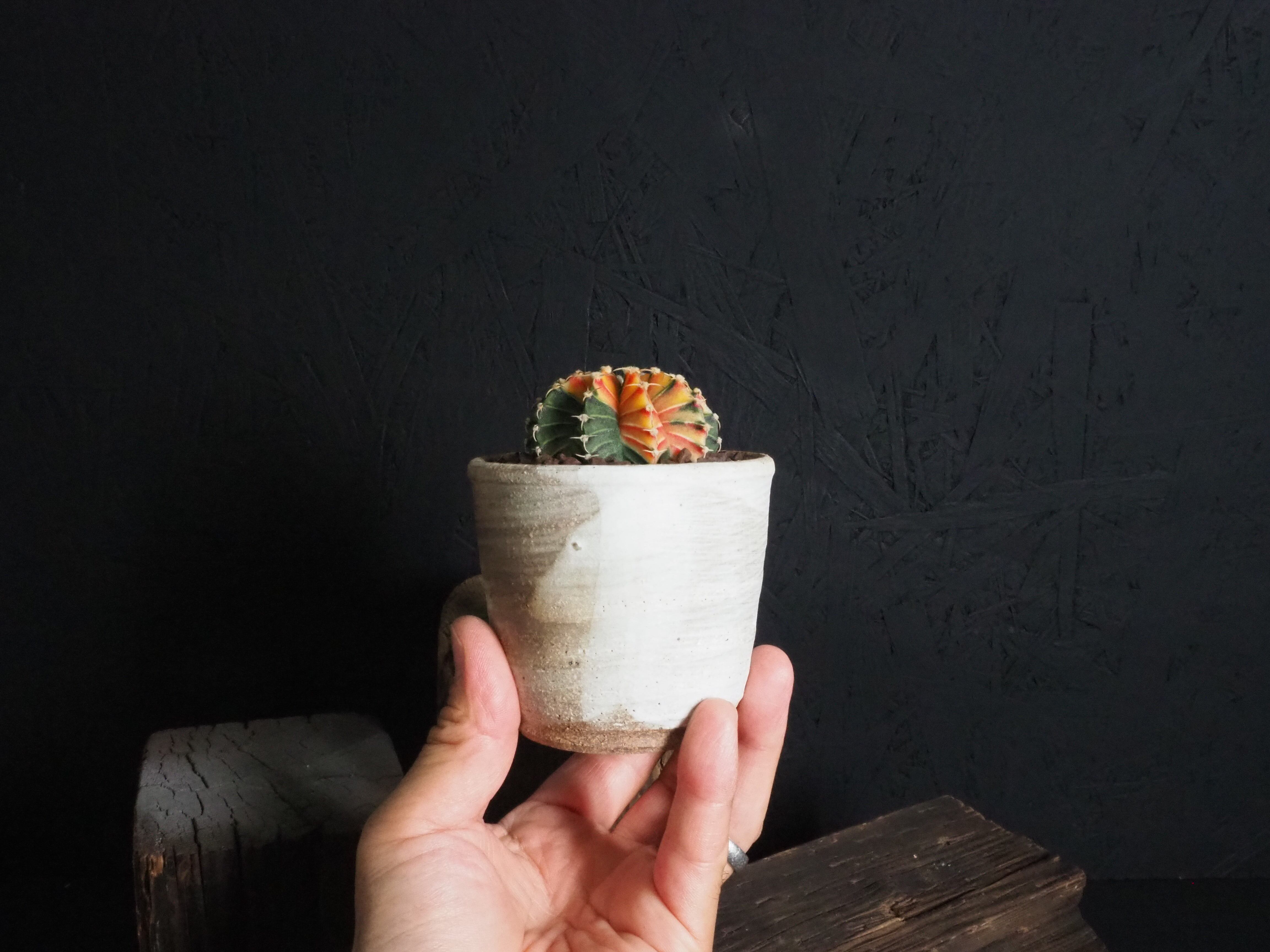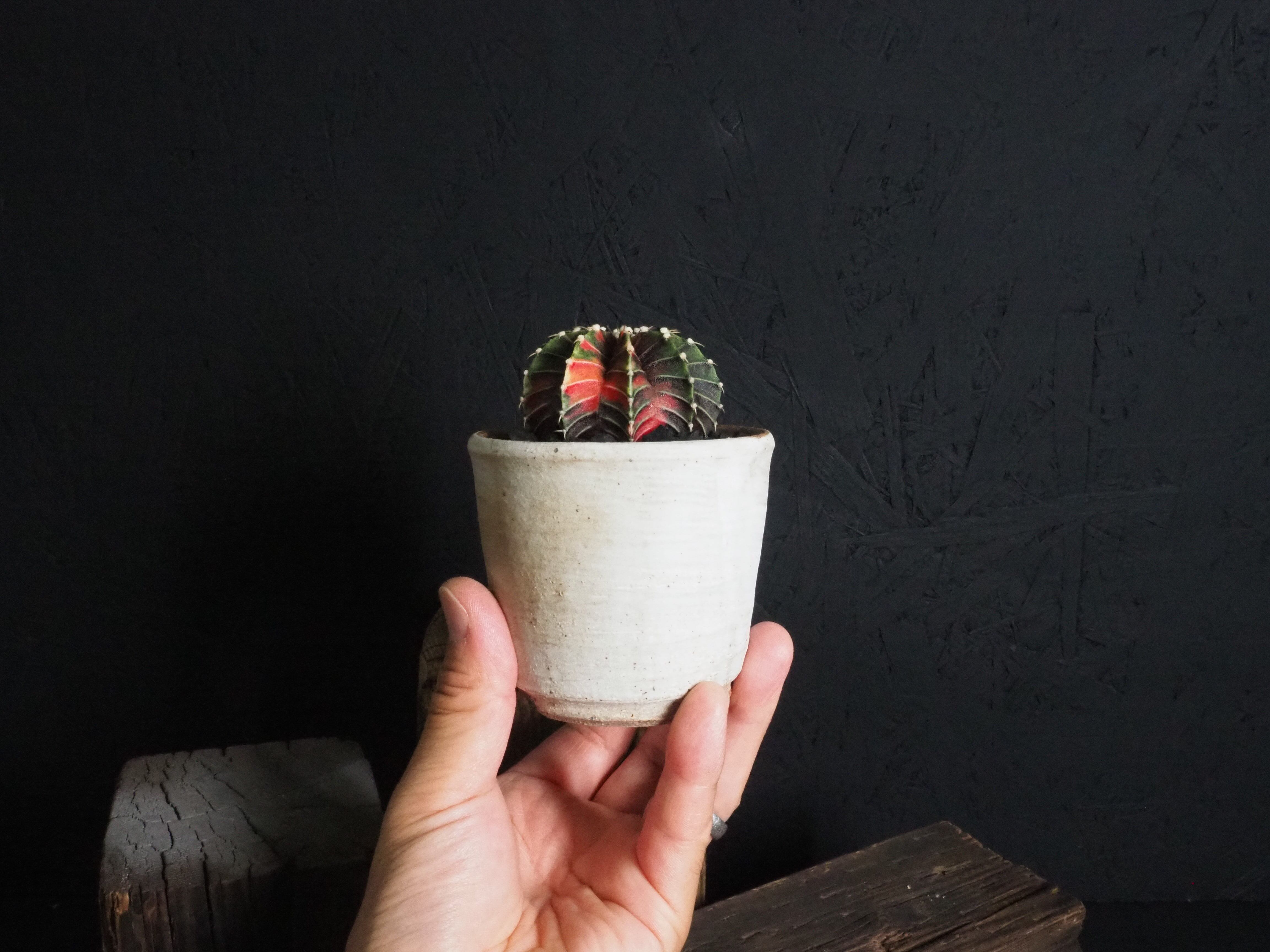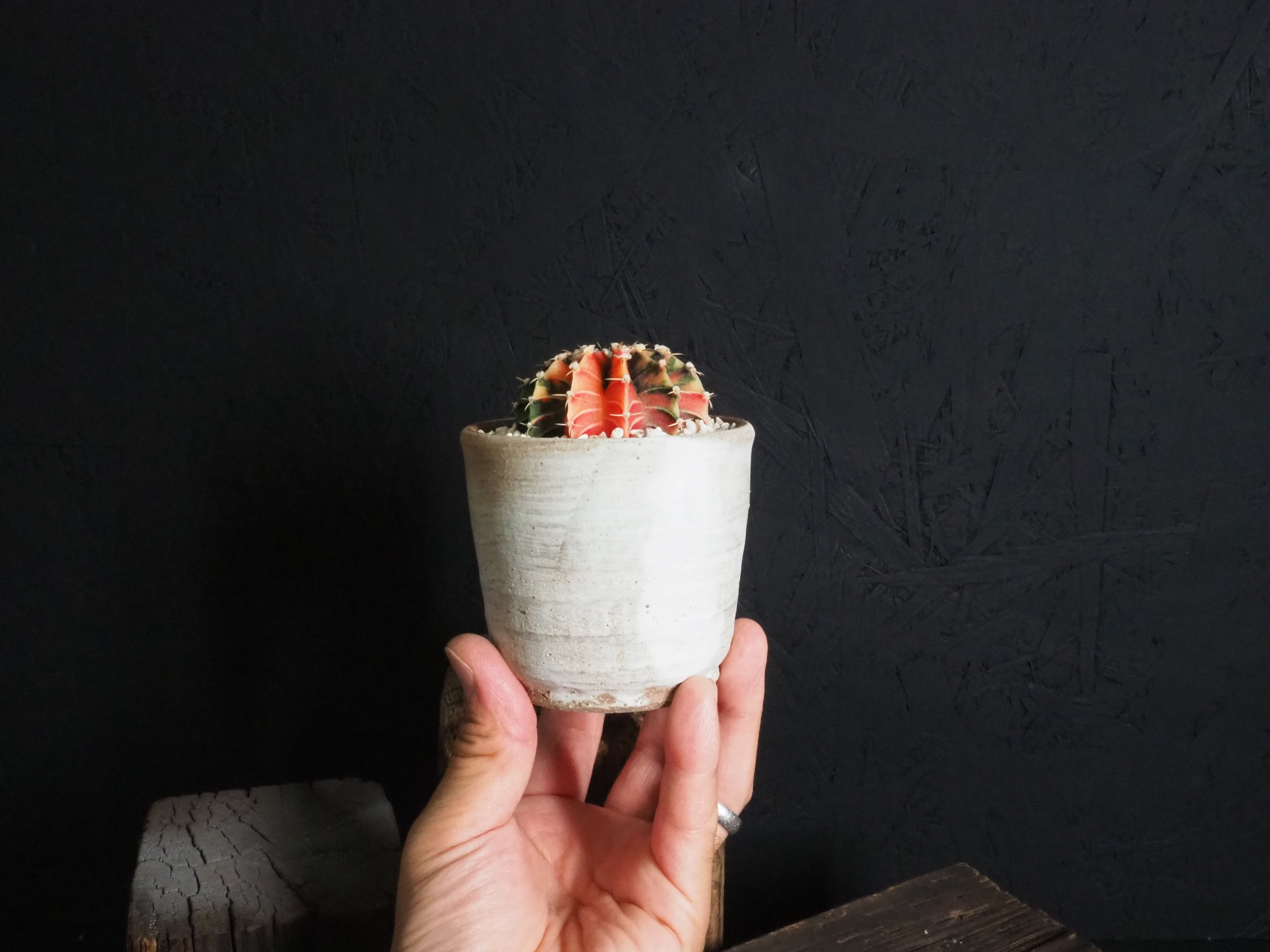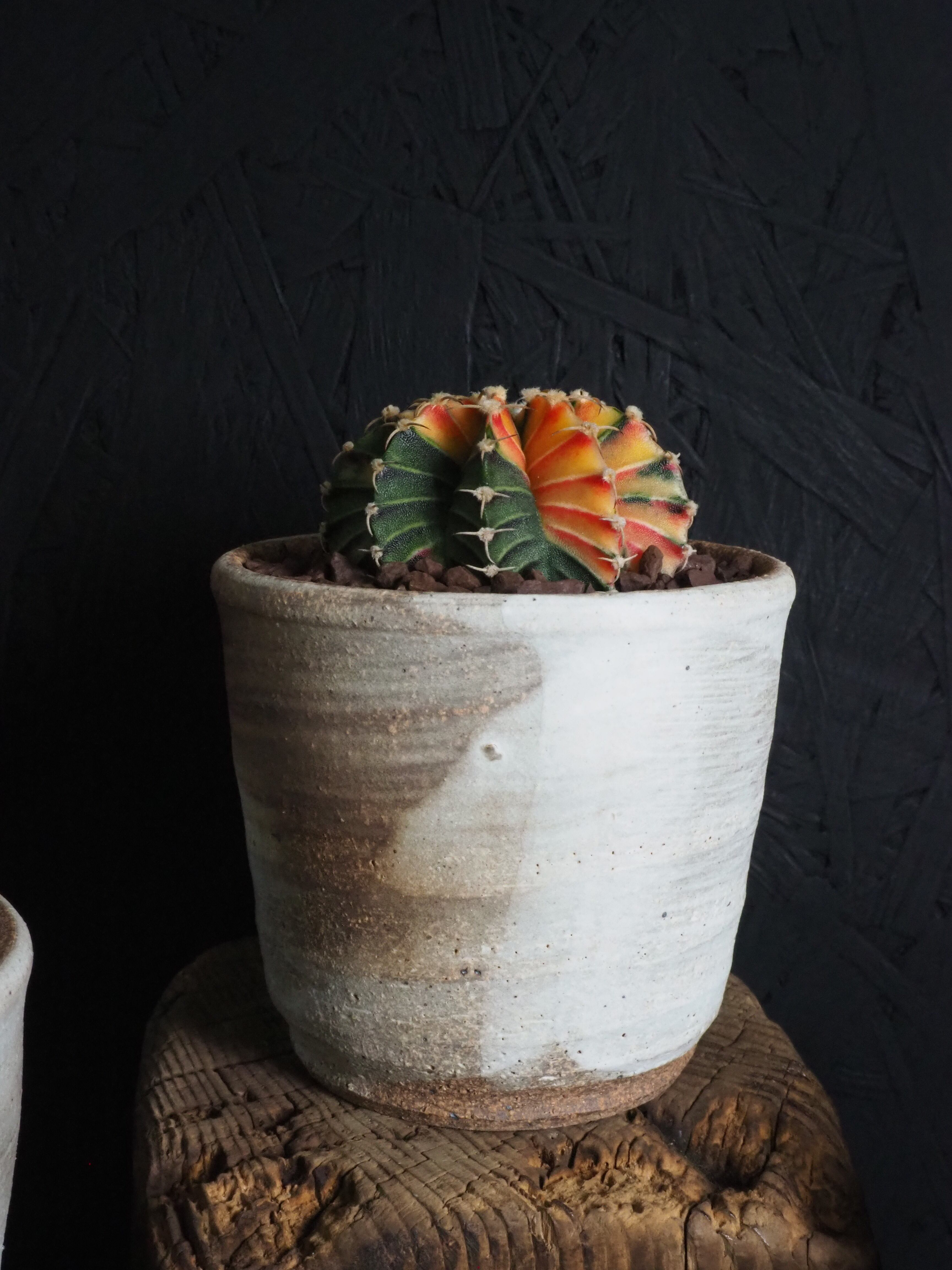 赤系、オレンジ系、ピンク系など、発色が大変強く非常に鮮やかで美しいのが最大の特徴です。それらが幾何学的な模様で絡みあい発色する様は正にアメージング。素晴らしいハイブリッドサボテンです。照度管理の違いで発色の濃淡が現れ、生命の躍動を感じさせてくれます。