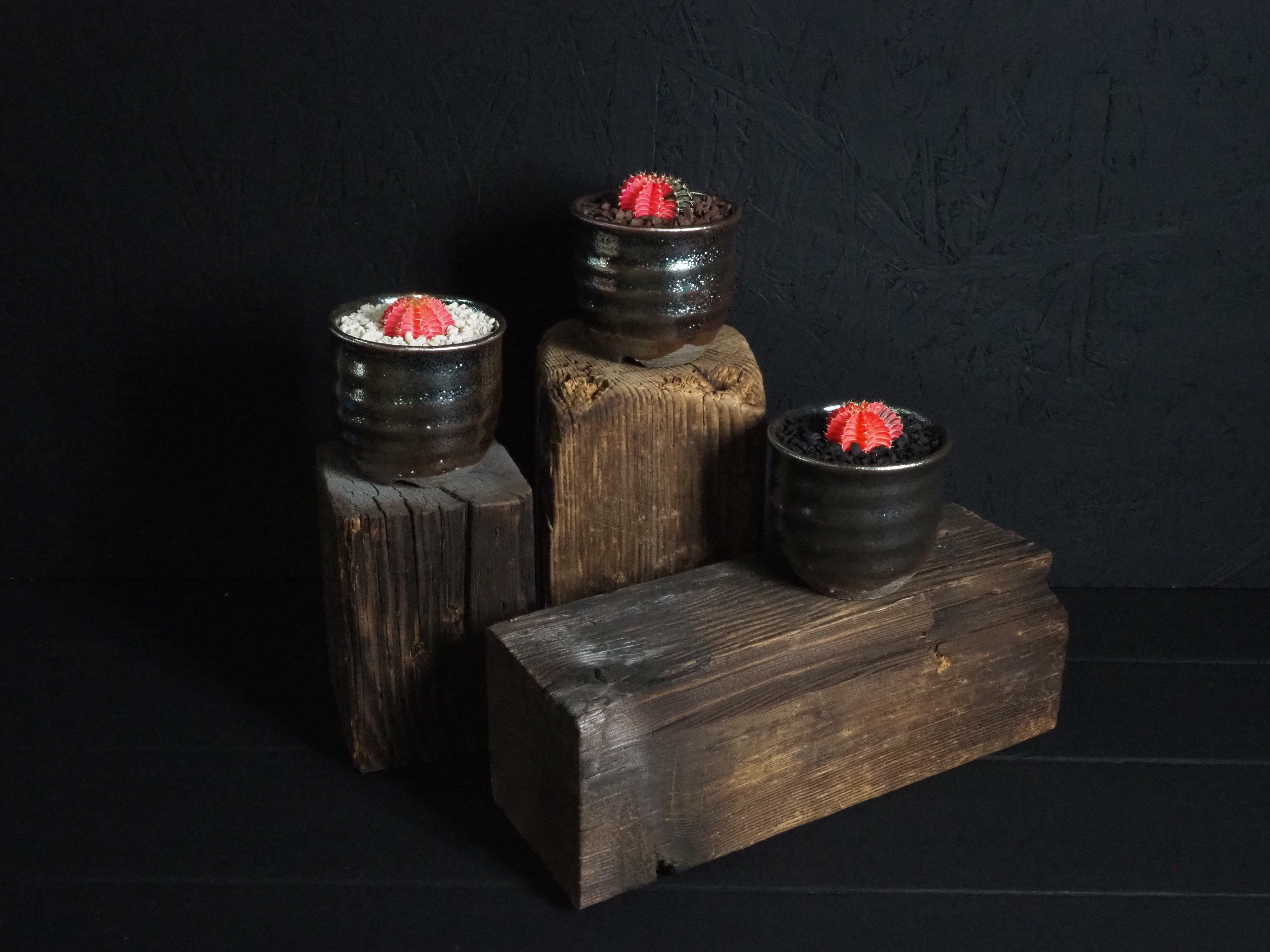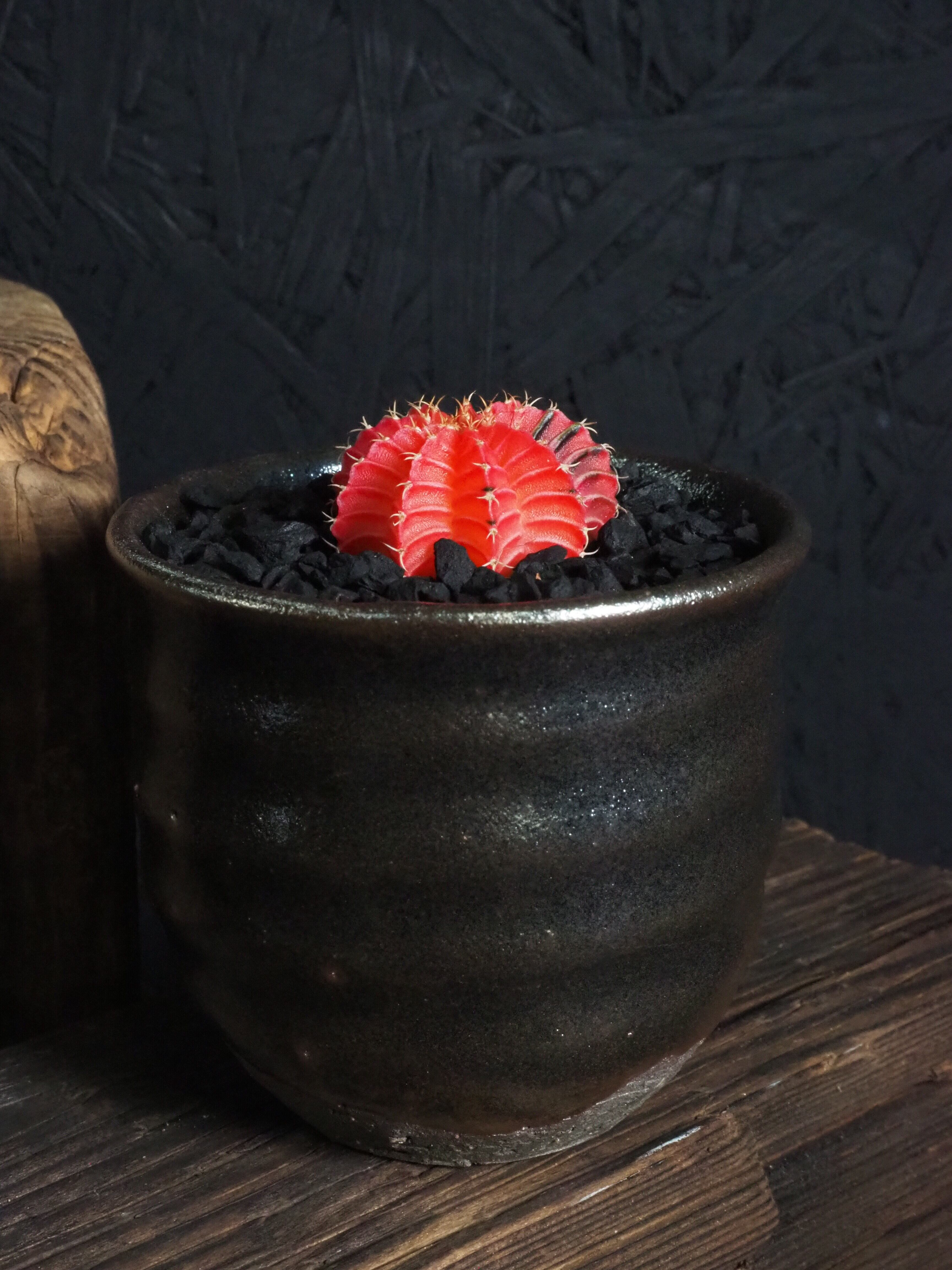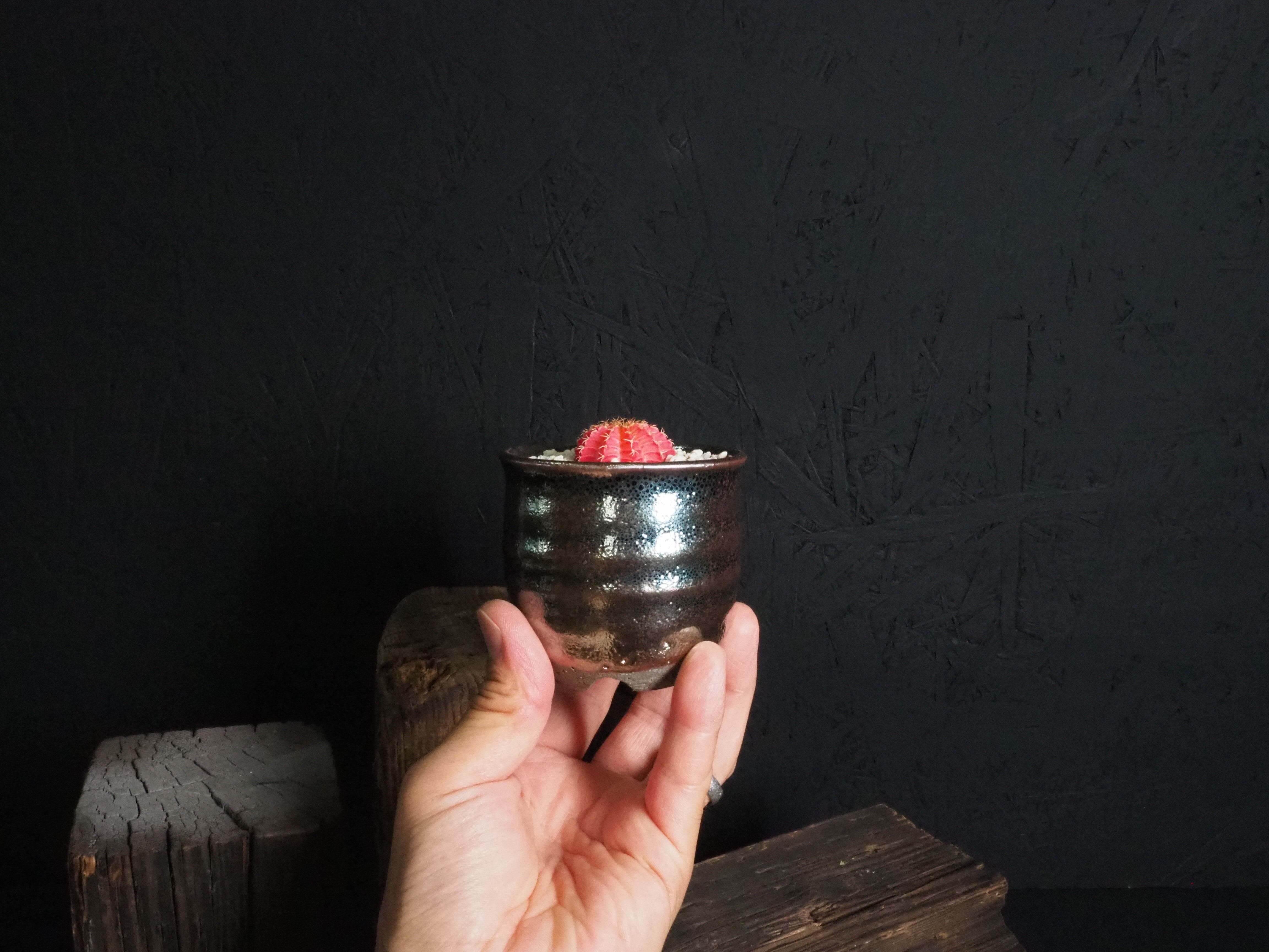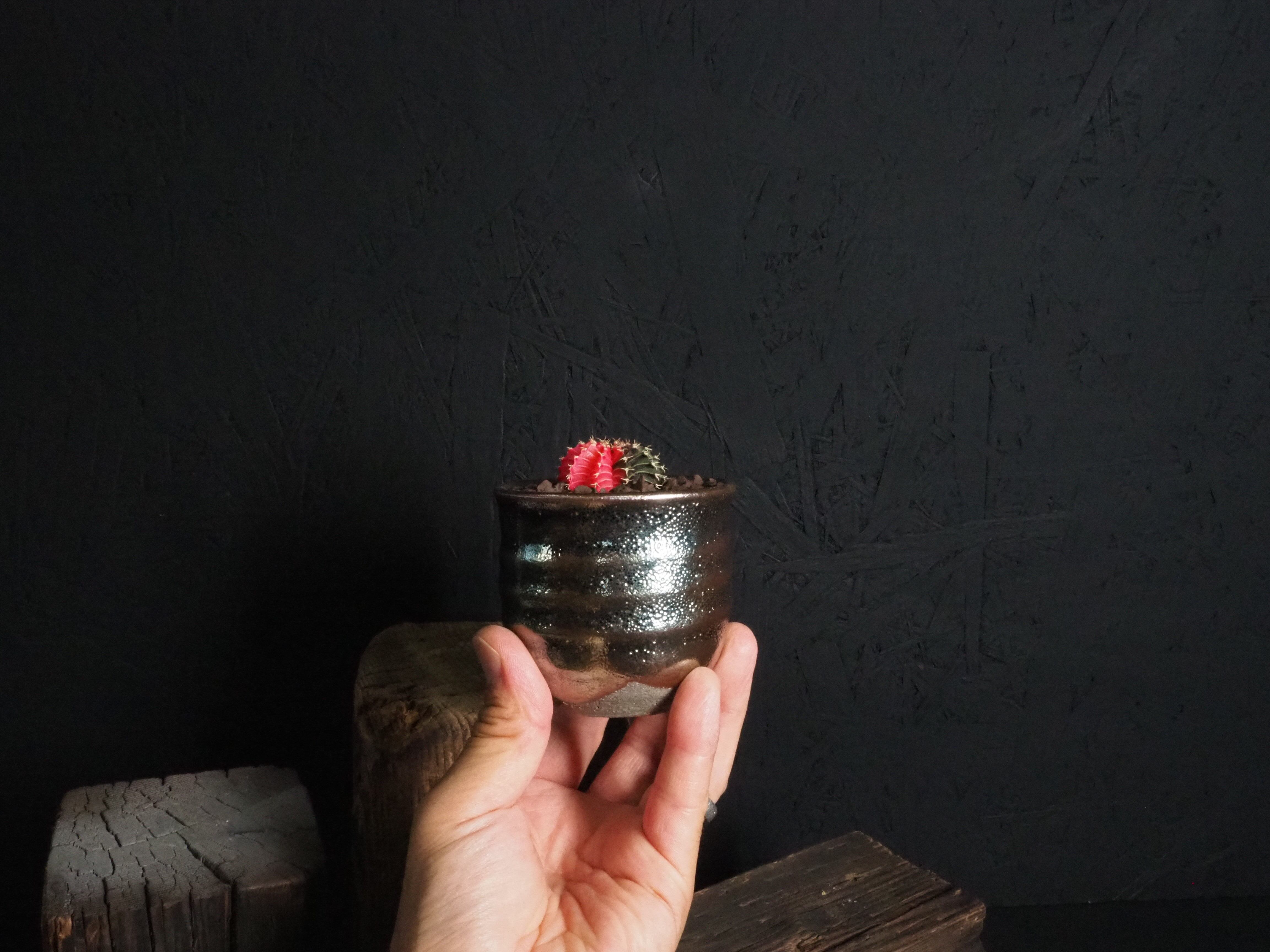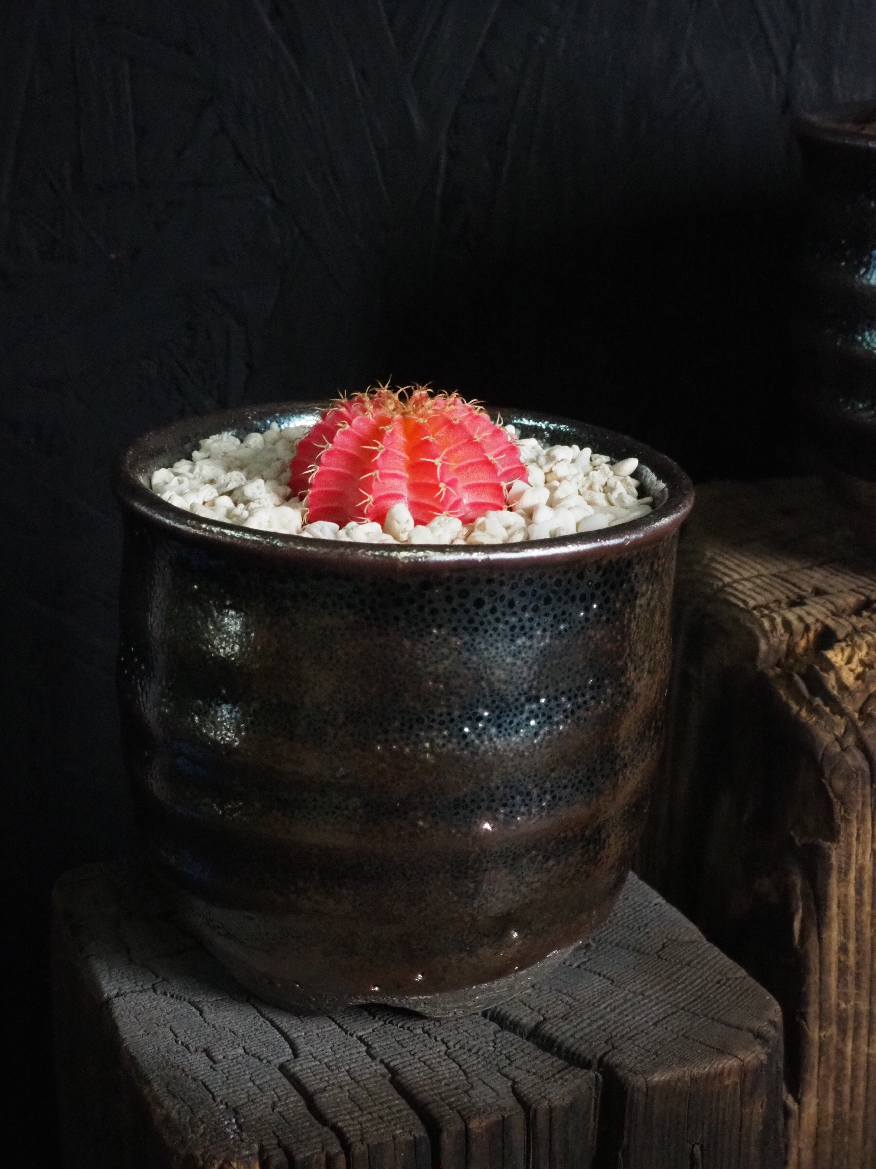 当店イチオシの信楽焼き『ラスター釉』にLB2178ハイブリッド錦を合わせ、光の加減で変化する味わい深い一品に仕上げました。贅沢に三株で並べて観賞すると更に深みが増すような何とも言えない雰囲気を醸し出してくれています。