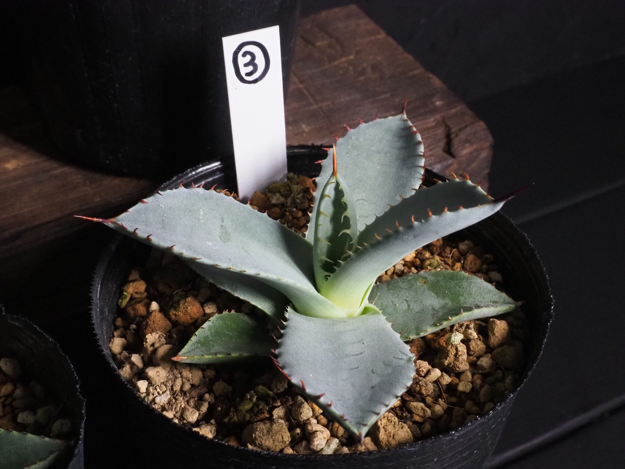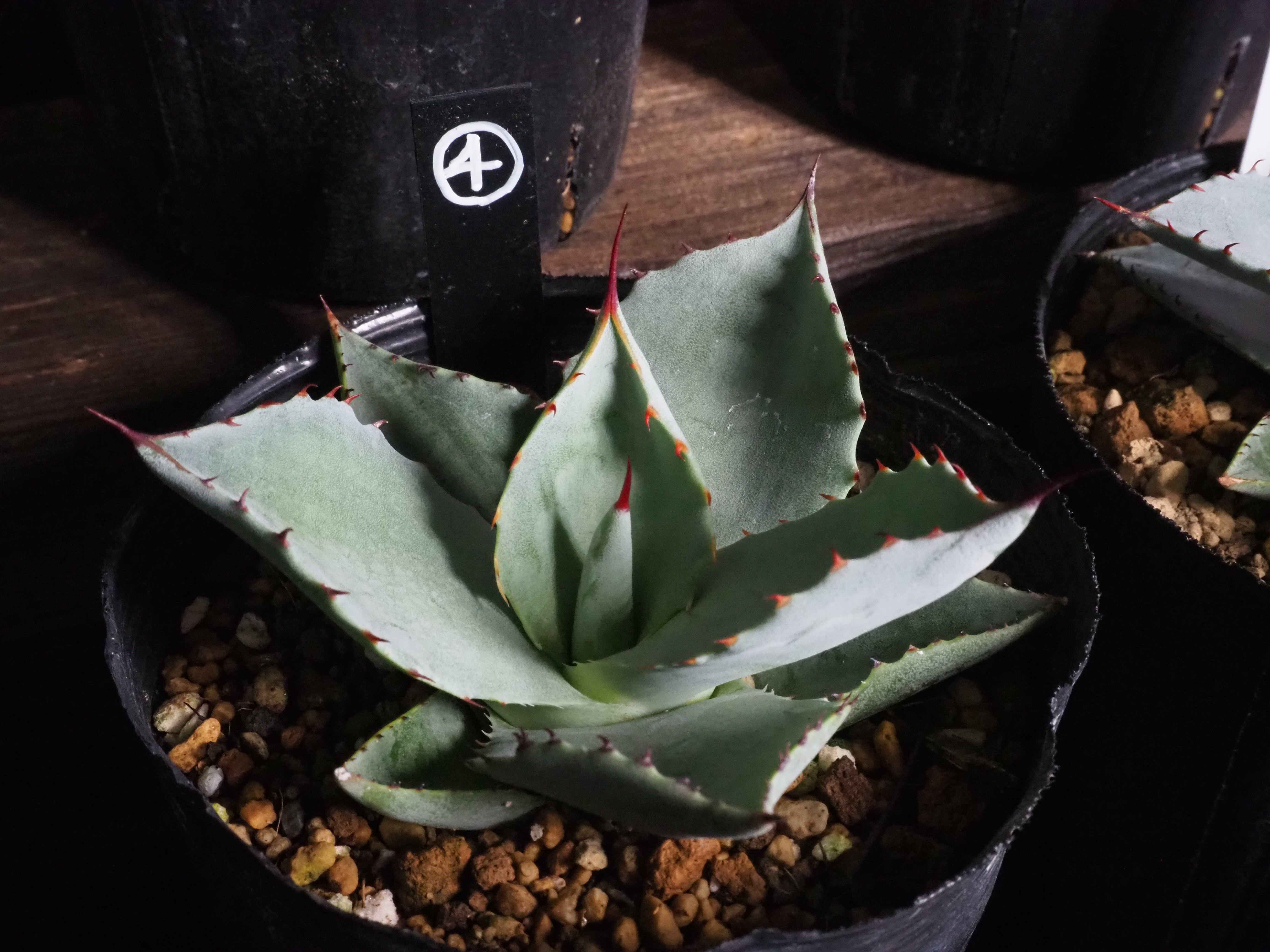 アメリカ南部に自生するアガベで成株になると80㎝位になるの中型種。パリーと同種で耐寒性はやや劣るもののマイナス9度くらいまで耐えると云われてます。葉が丸くて広いのが特徴で、棘は硬く強く漏れなく流血注意です。