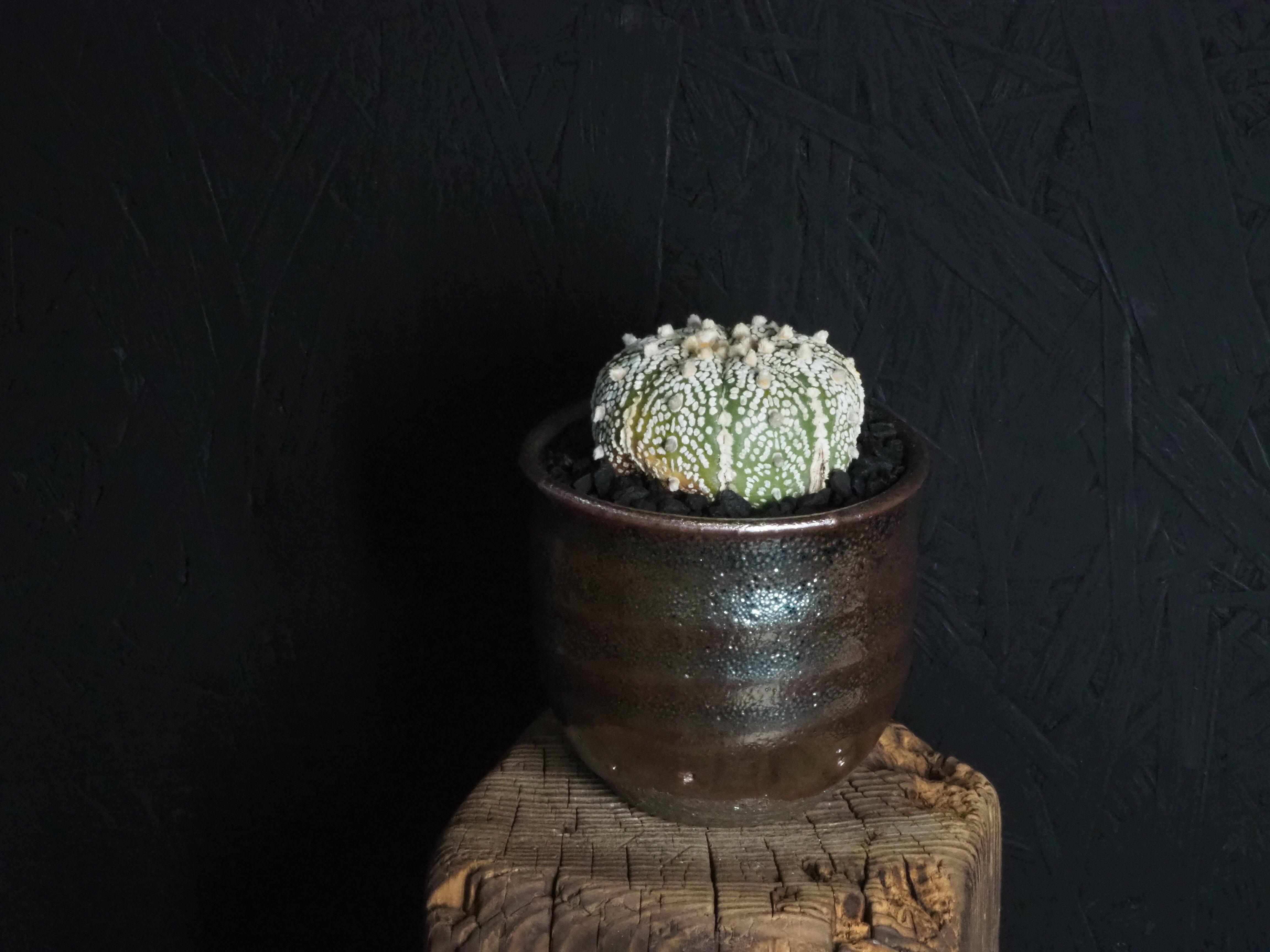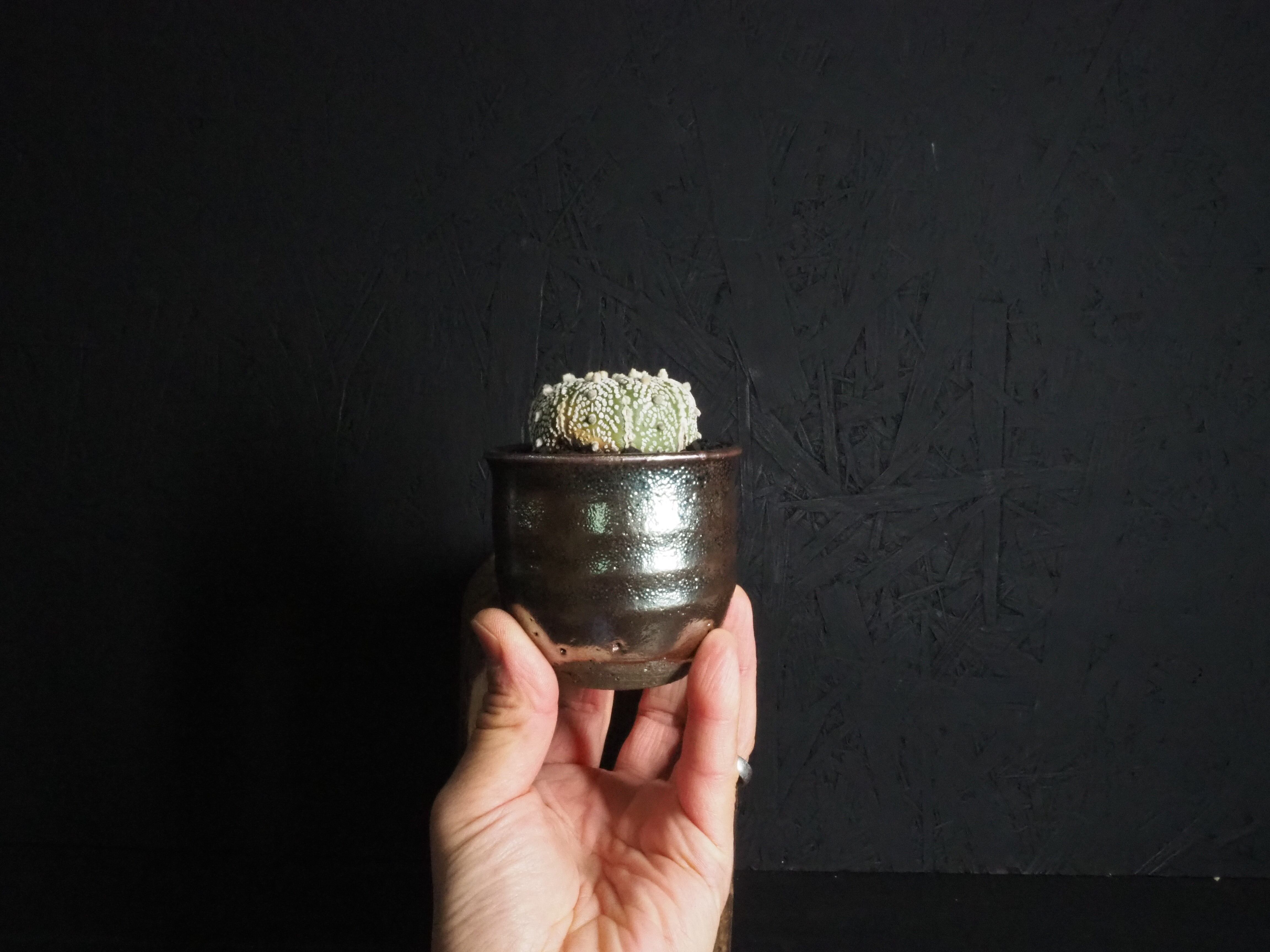 Made in Japan「信楽薬」ラスター釉と黒の化粧砂利で仕上げました。