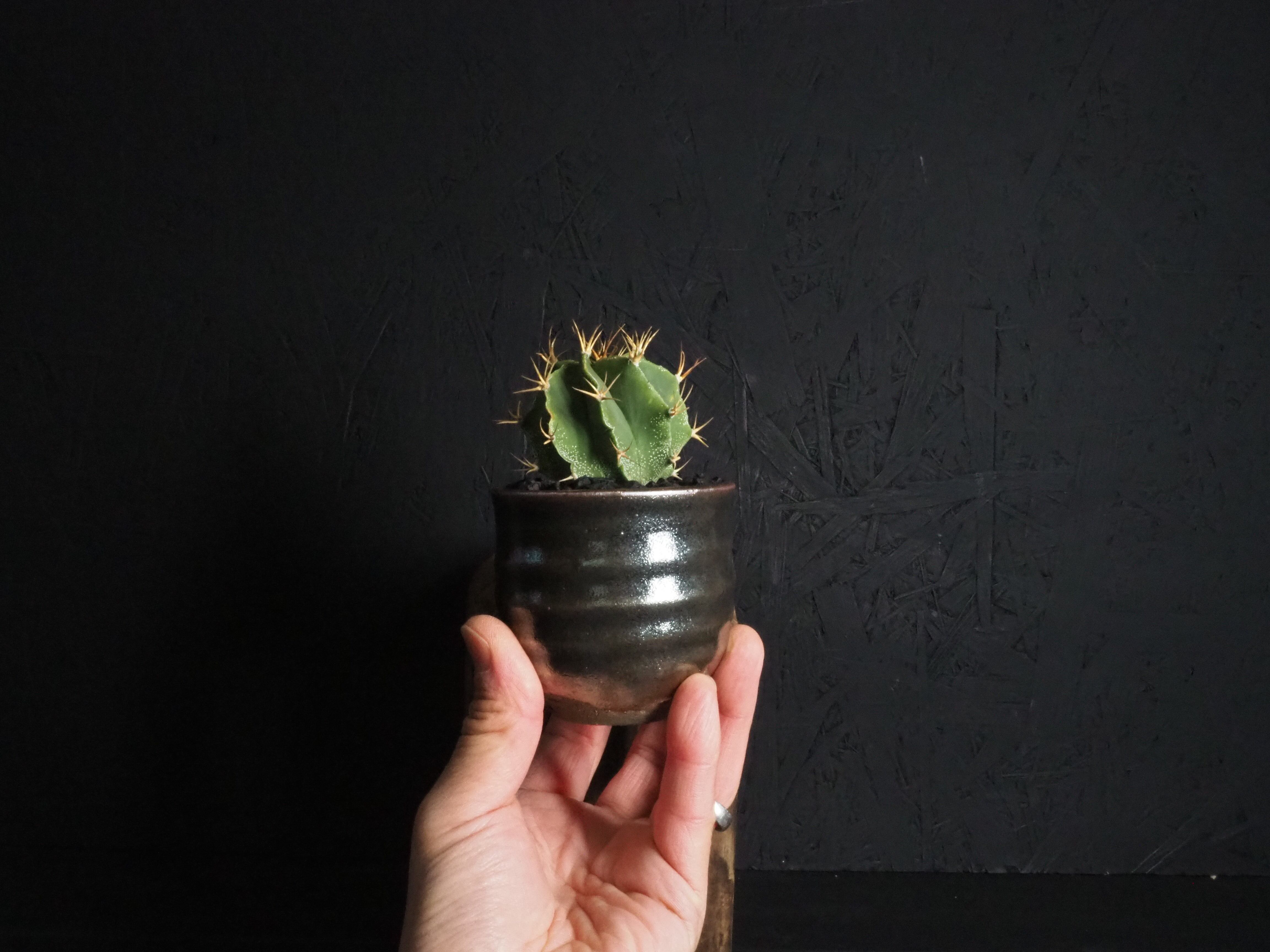 Made in Japan「信楽薬」ラスター釉と黒の化粧砂利で仕上げました。