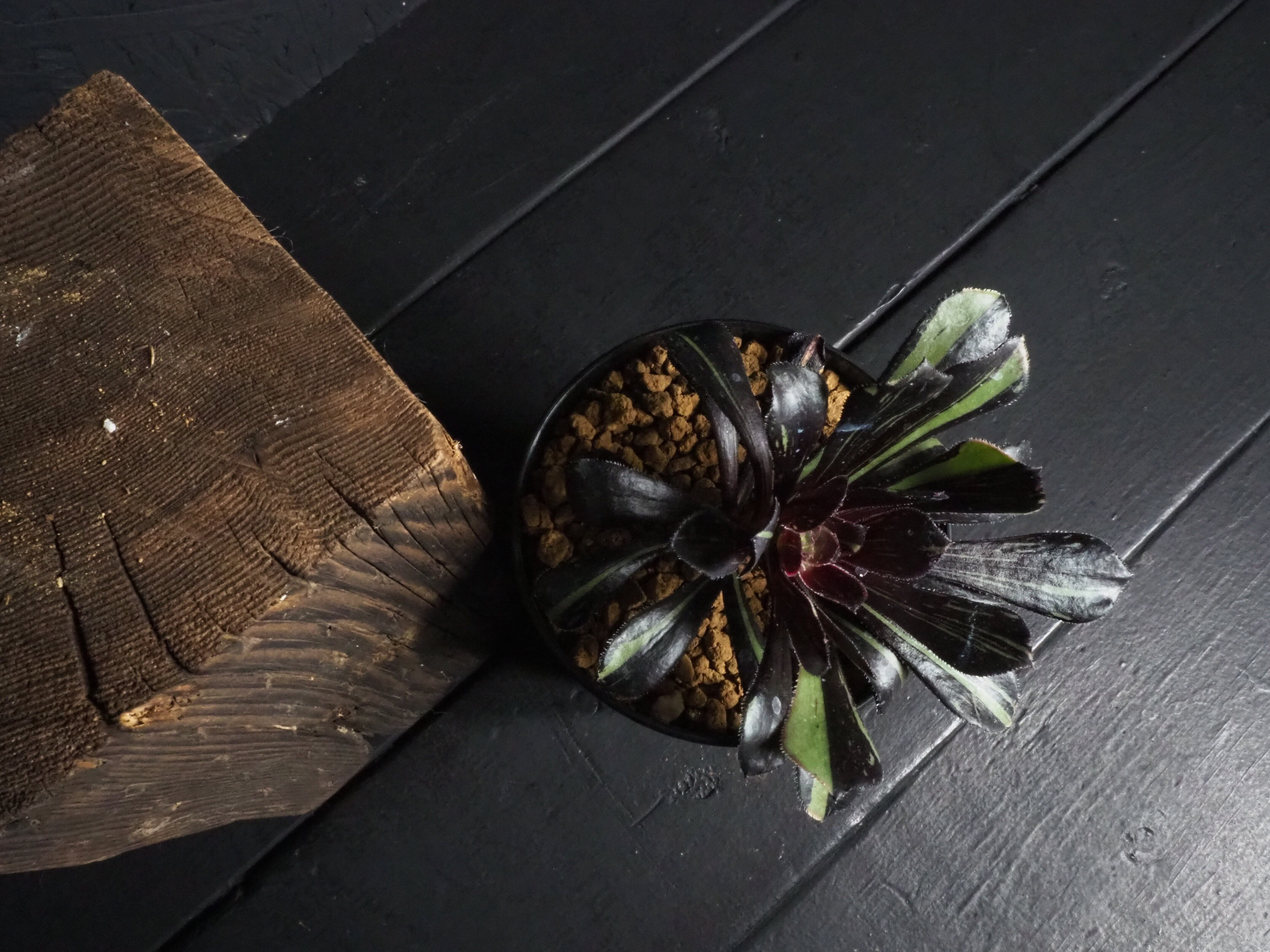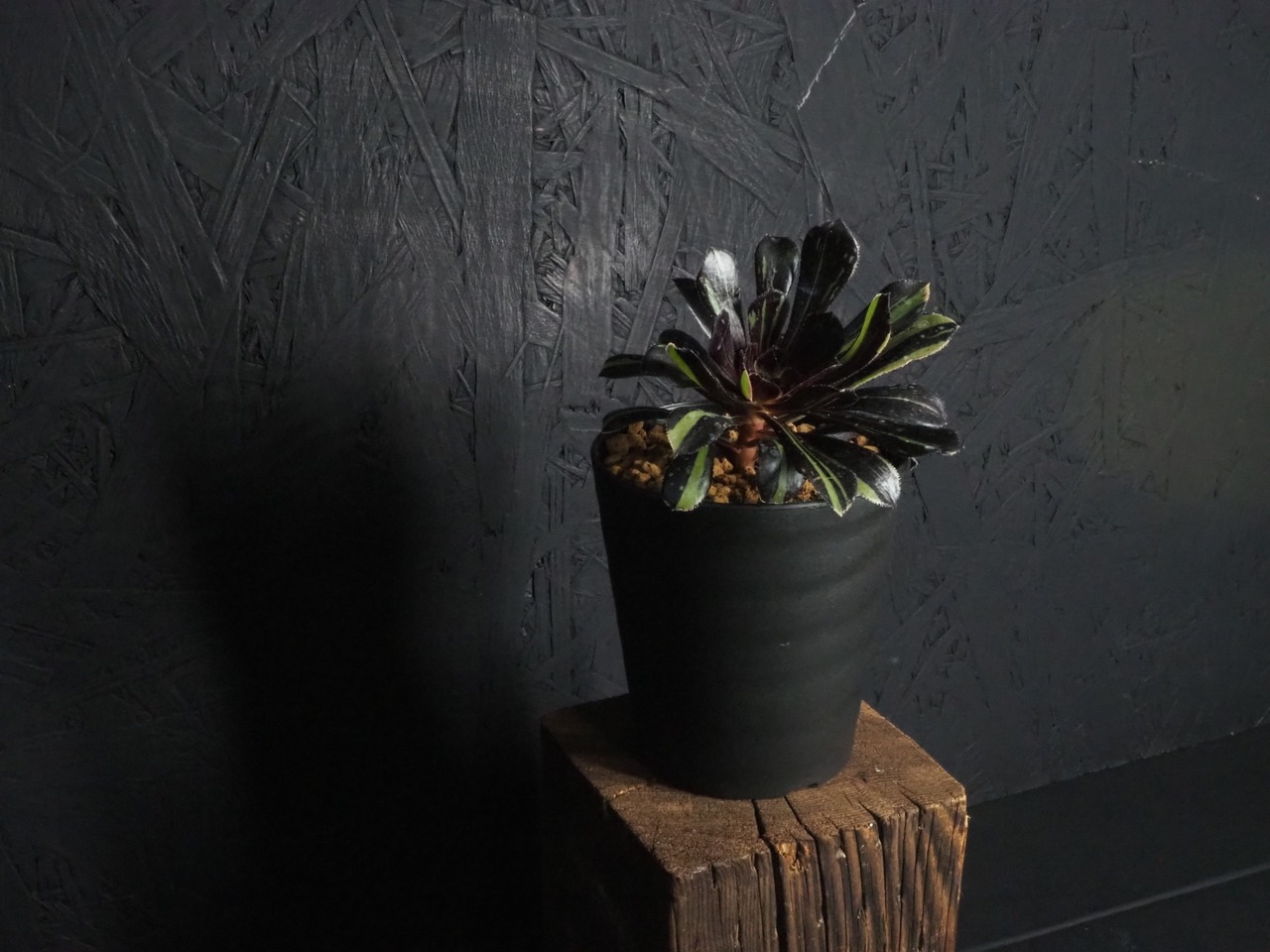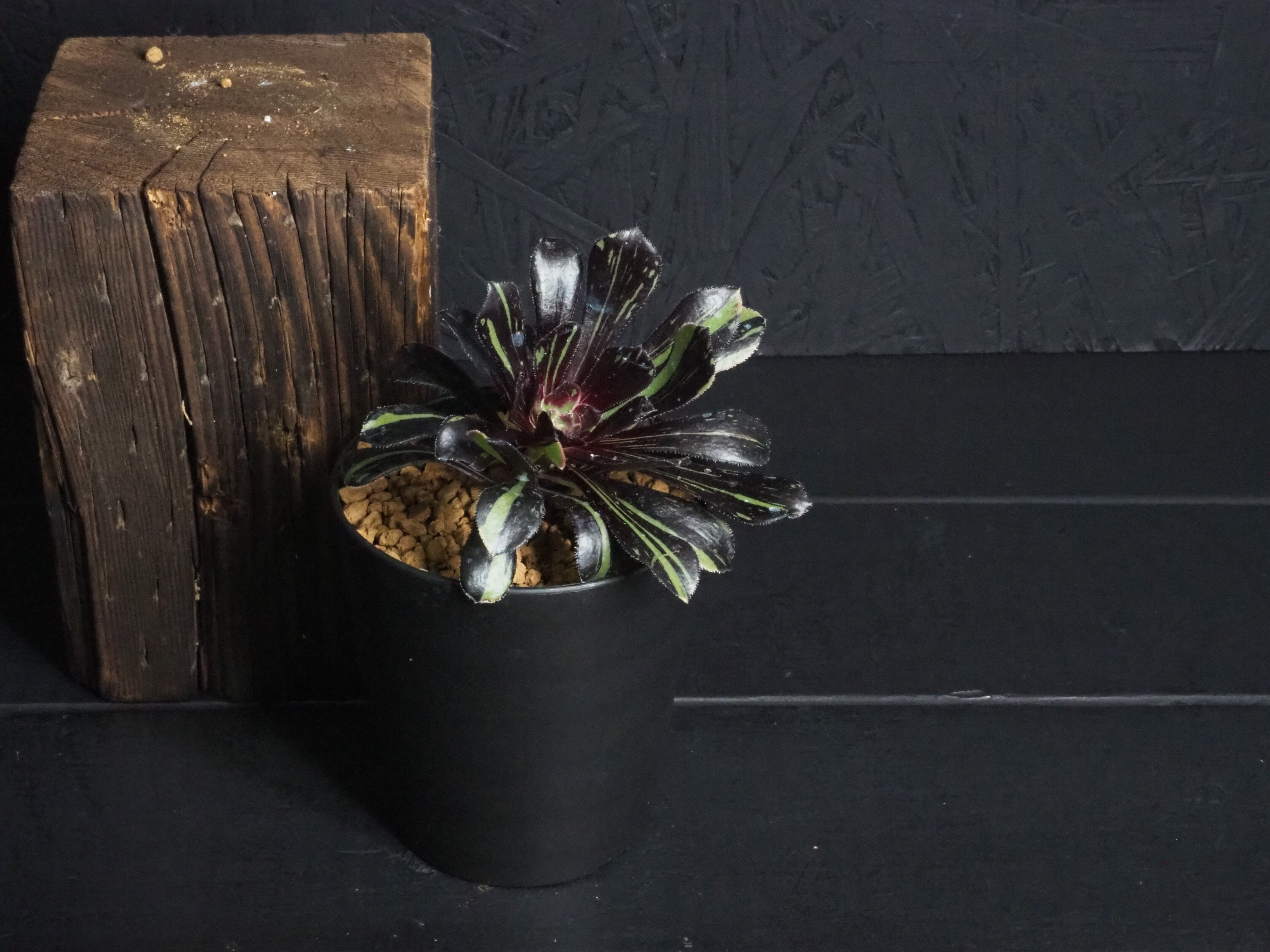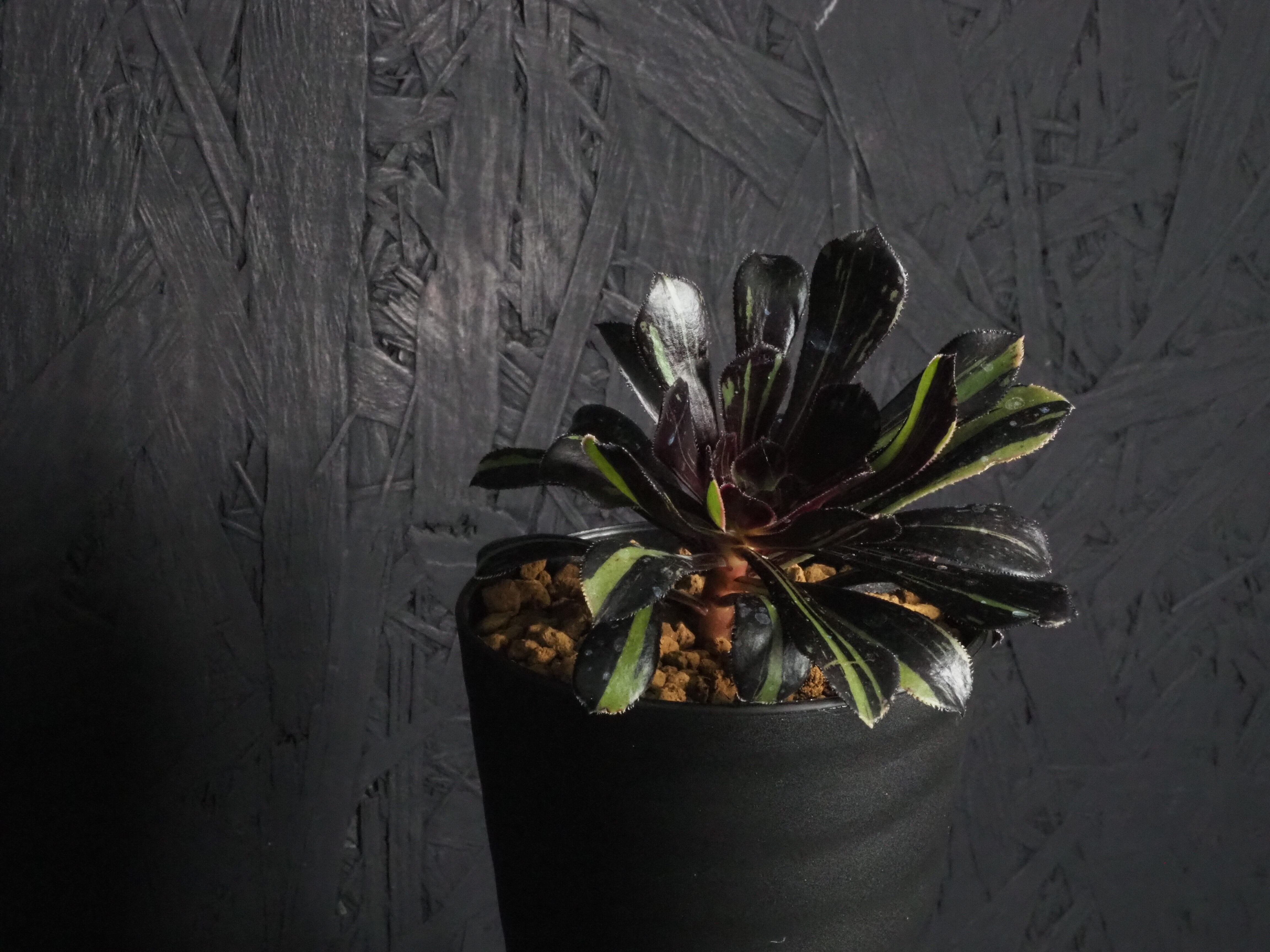 冬型植物のアオエニウム「ビックバン」、細い縞斑が入るタイプです。