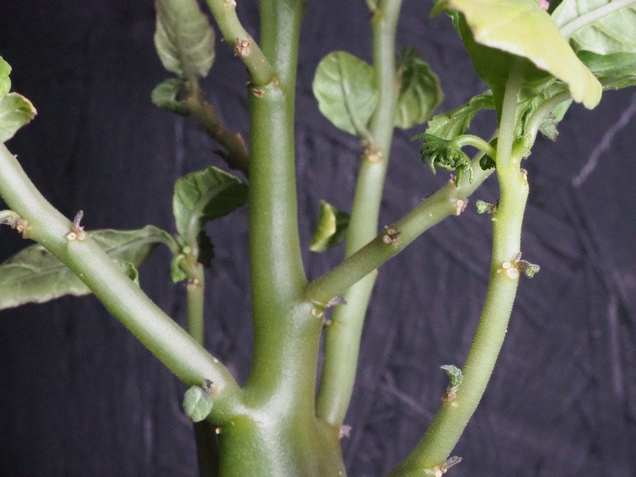 30cm程度まで育ったら大きめの植木鉢に植え替えをしてください。その際、根を傷つけないように土を抱かせたままで植え替えを行いましょう。同時に新しい土と緩効性の肥料を少し混ぜ込んであげて下さい。生長スイッチが入って大きくなり過ぎたら整枝剪定を行い、高さを調節してください。挿し木(水挿し)で簡単に増やせますよ♬