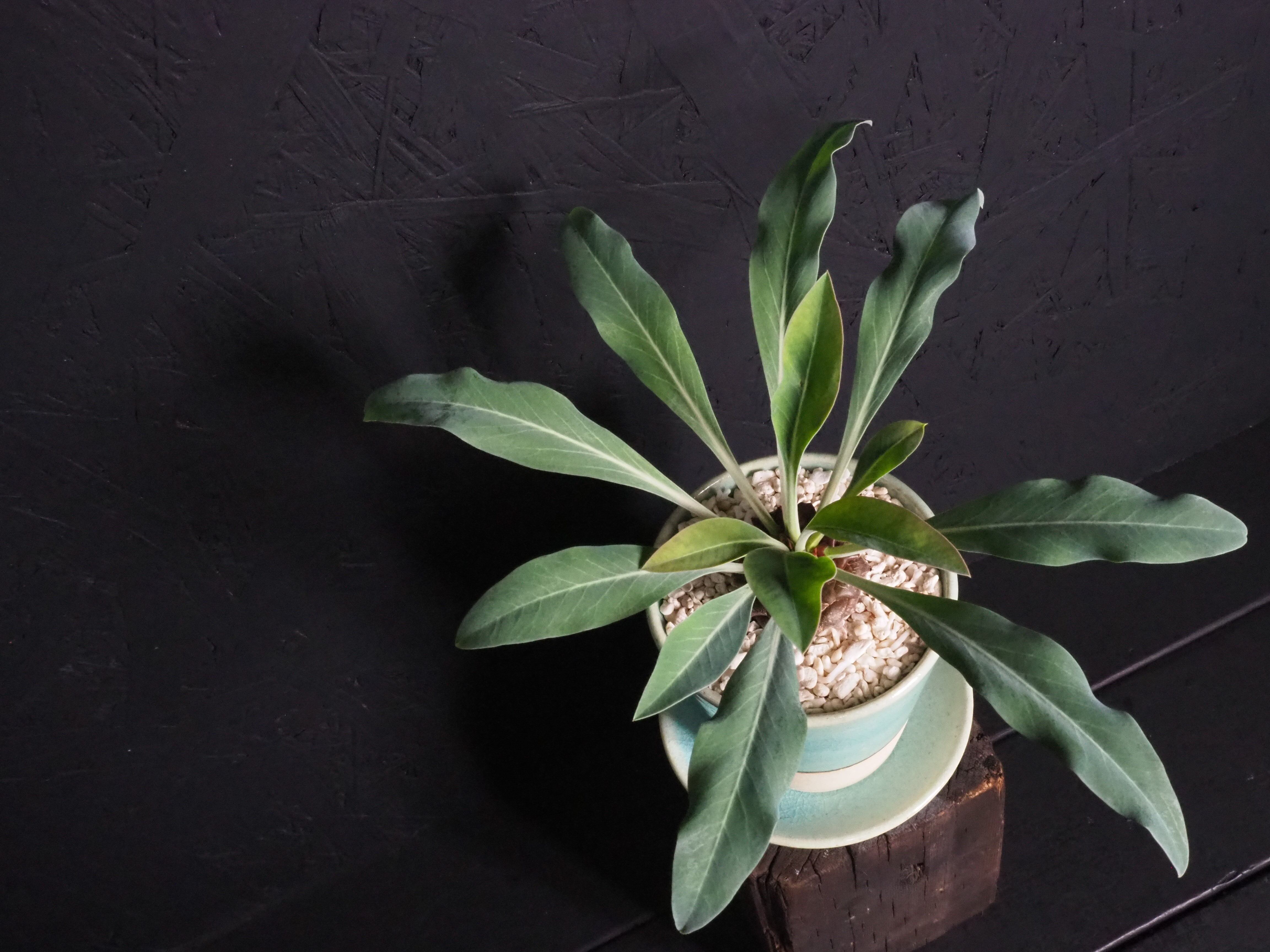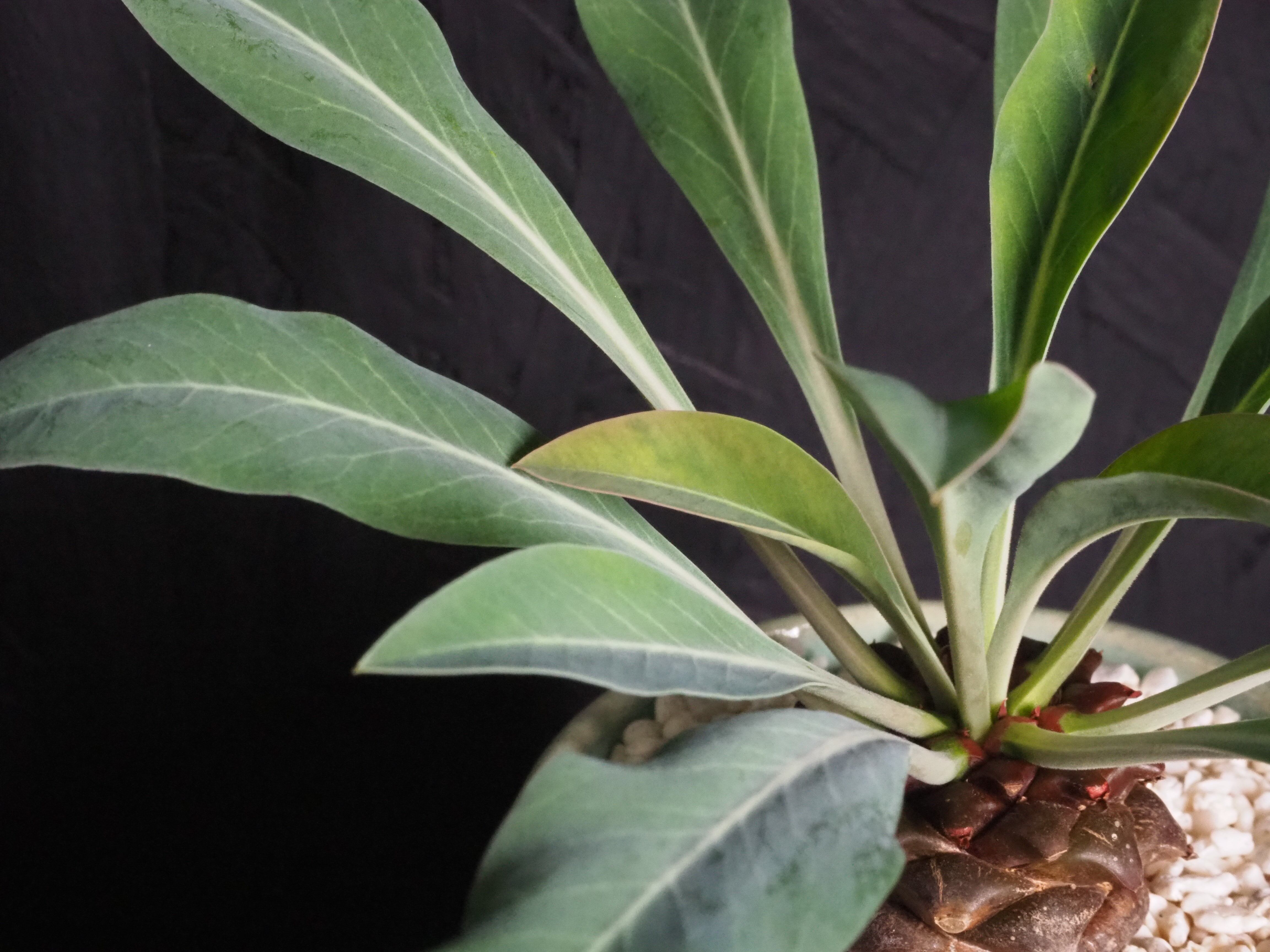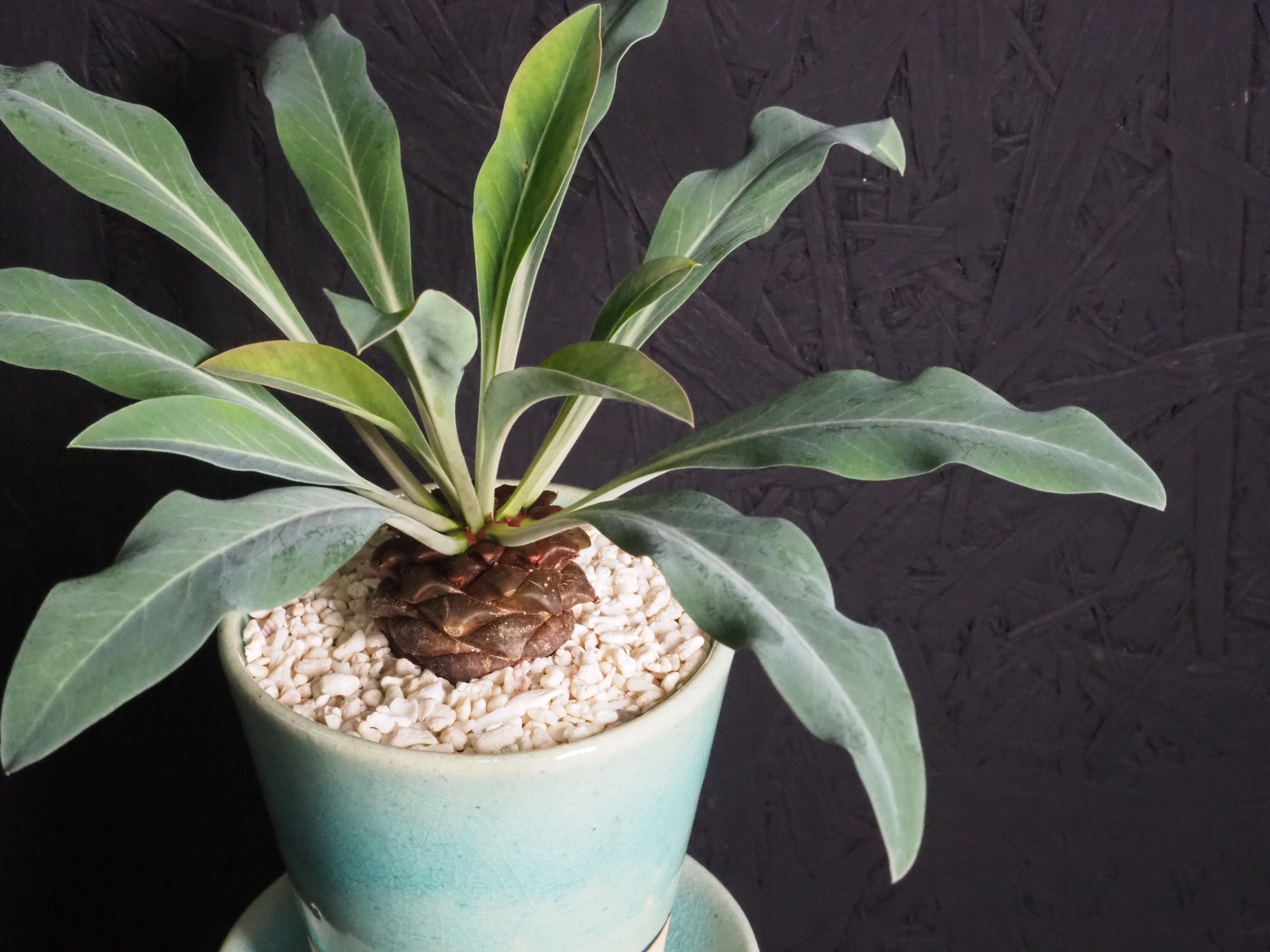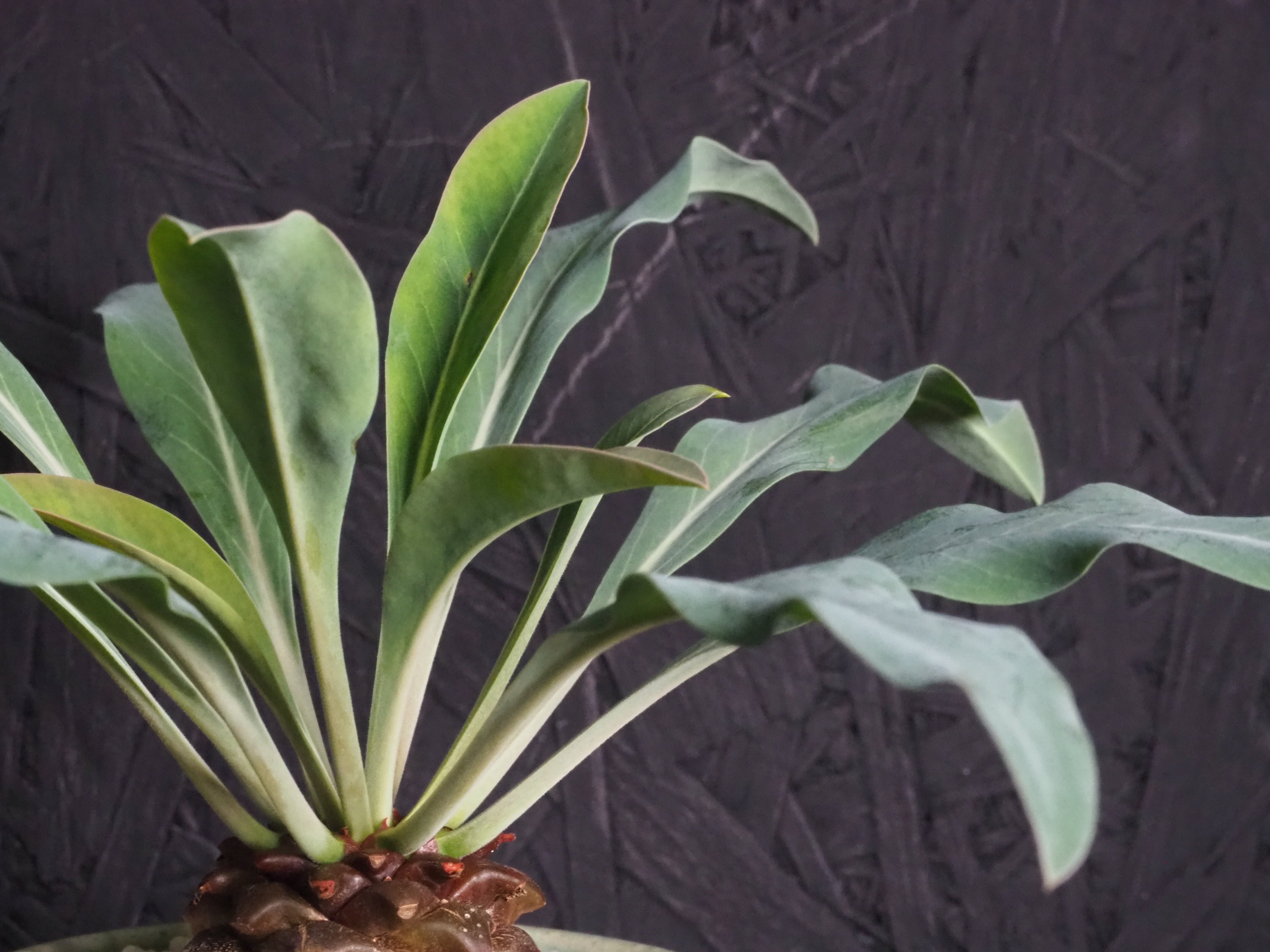 ユーフォルビアのなかでも少し性質が神経質ですが、基本的には他のユーフォルビアと同じ扱いで管理してくださいね。陽当たりと風通し良くは大原則で、鉢内の過湿は厳禁です。給水後はしっかり完全に用土を乾かしてから次の水やりをしてくださいね。雌雄異株で花を咲かせます。