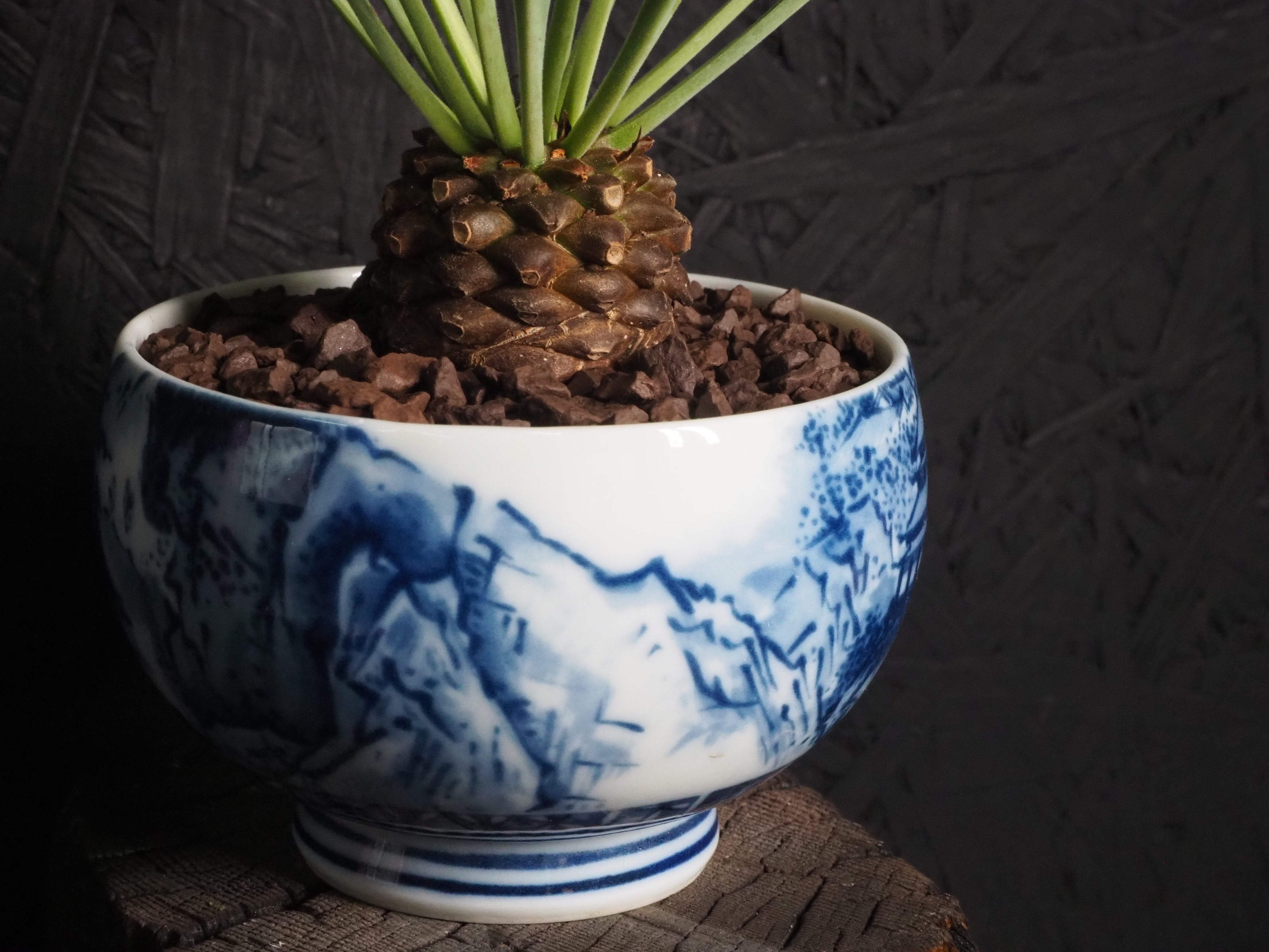 この鉄甲丸は実生二年生の個体で、まだミニサイズですがしっかりした幹を形成して立派な葉を展開しています。昭和の雰囲気漂う湯呑を鉢にお直し、レトロな雰囲気を醸し出しております♪