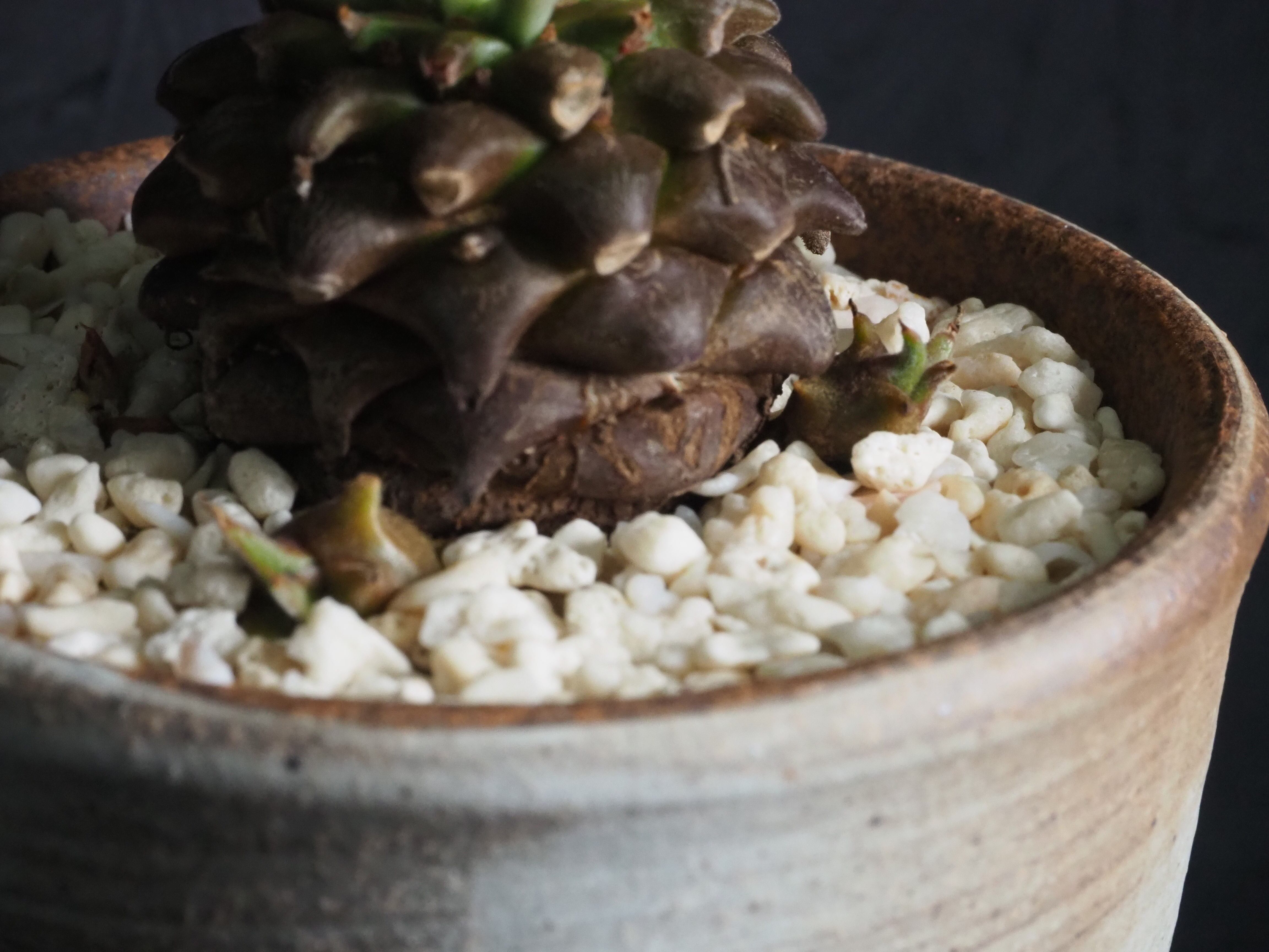 ユーフォルビア・鉄甲丸<仔吹き>~国内実生株/10選~信楽焼「白刷毛目」