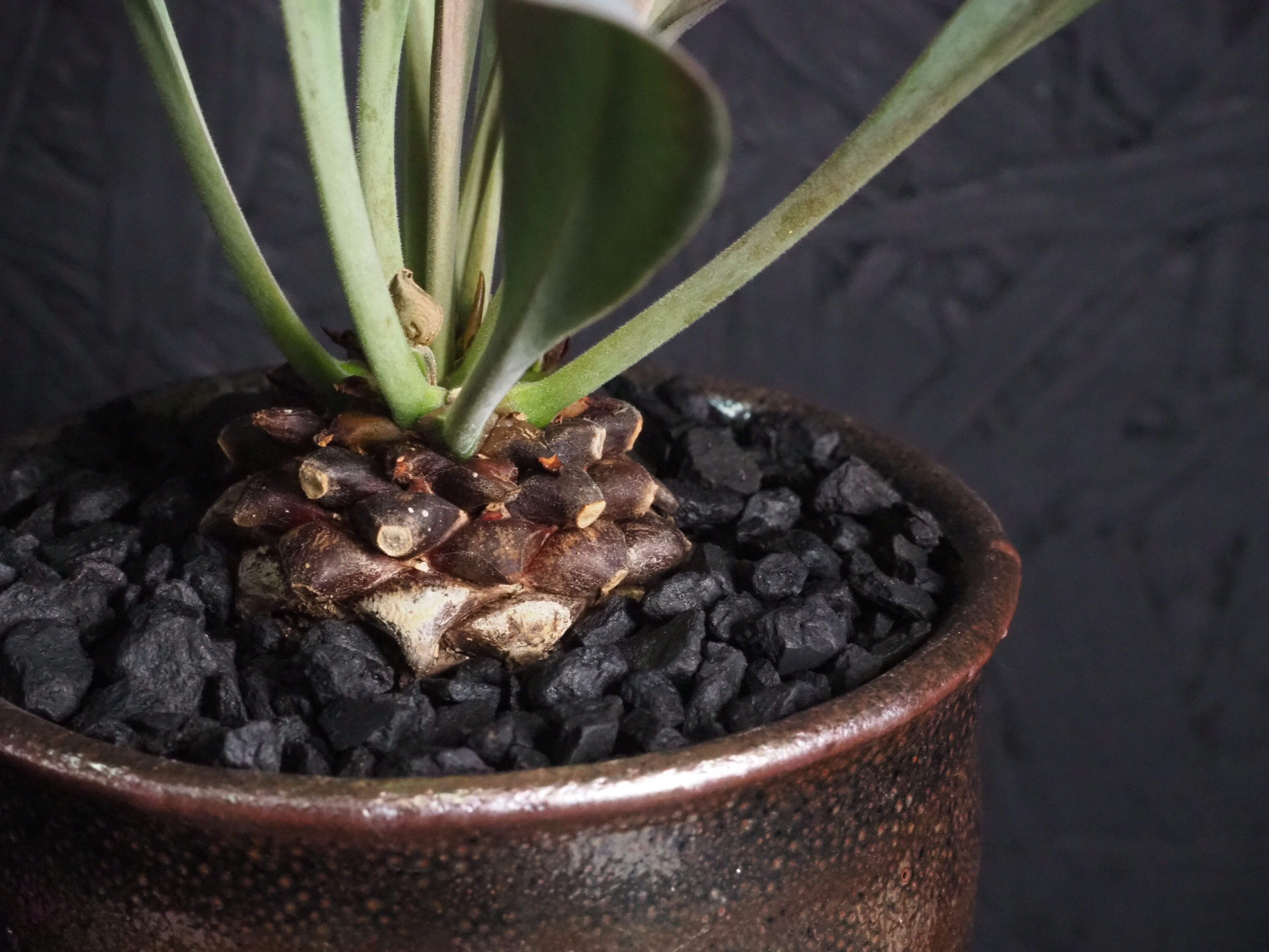 この鉄甲丸は実生二年生の個体で、まだミニサイズですがしっかりした幹を形成して立派な葉を展開しています。