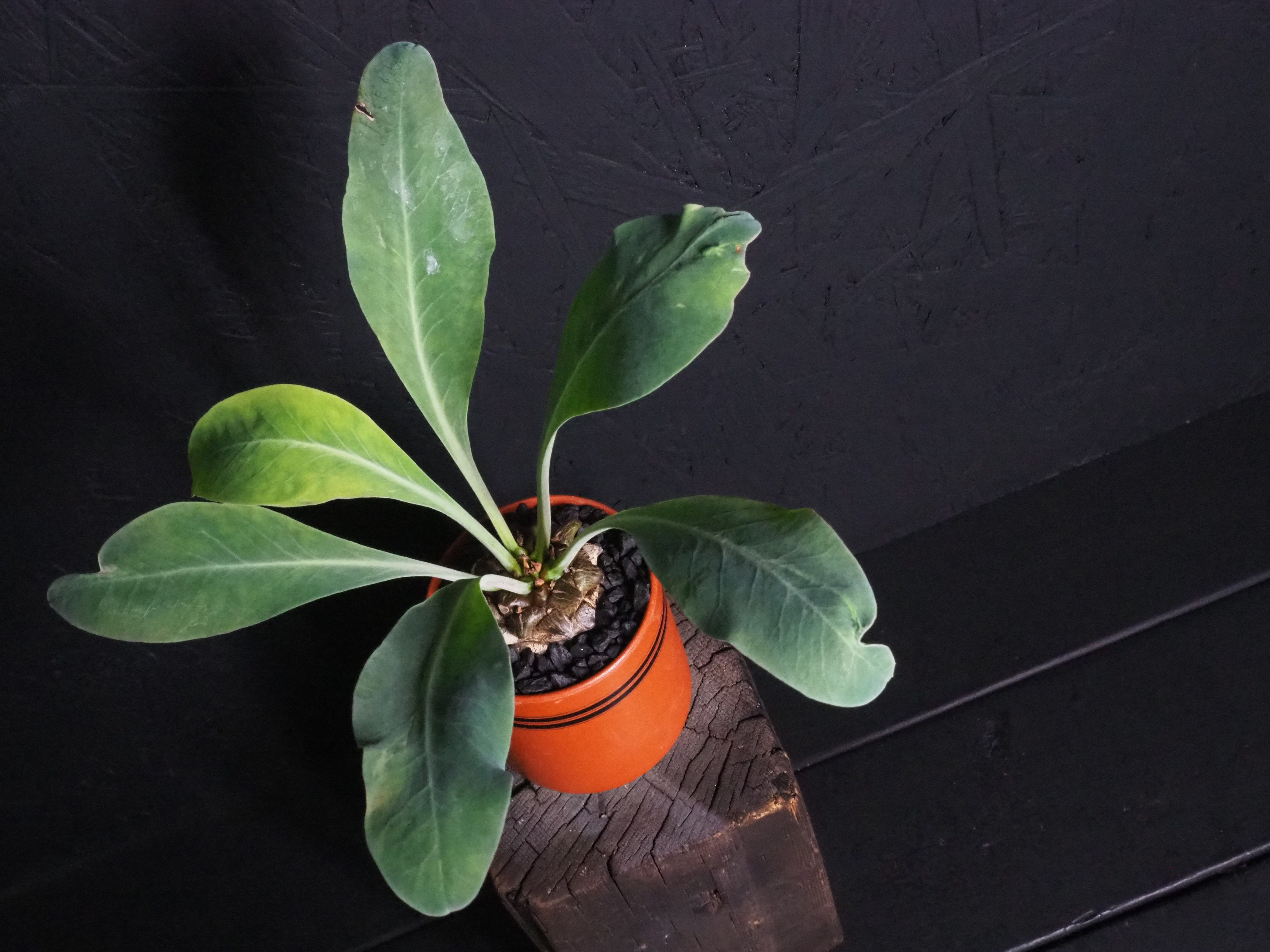 ユーフォルビアのなかでも少し性質が神経質ですが、基本的には他のユーフォルビアと同じ扱いで管理してくださいね。陽当たりと風通し良くは大原則で、鉢内の過湿は厳禁です。給水後はしっかり完全に用土を乾かしてから次の水やりをしてください。