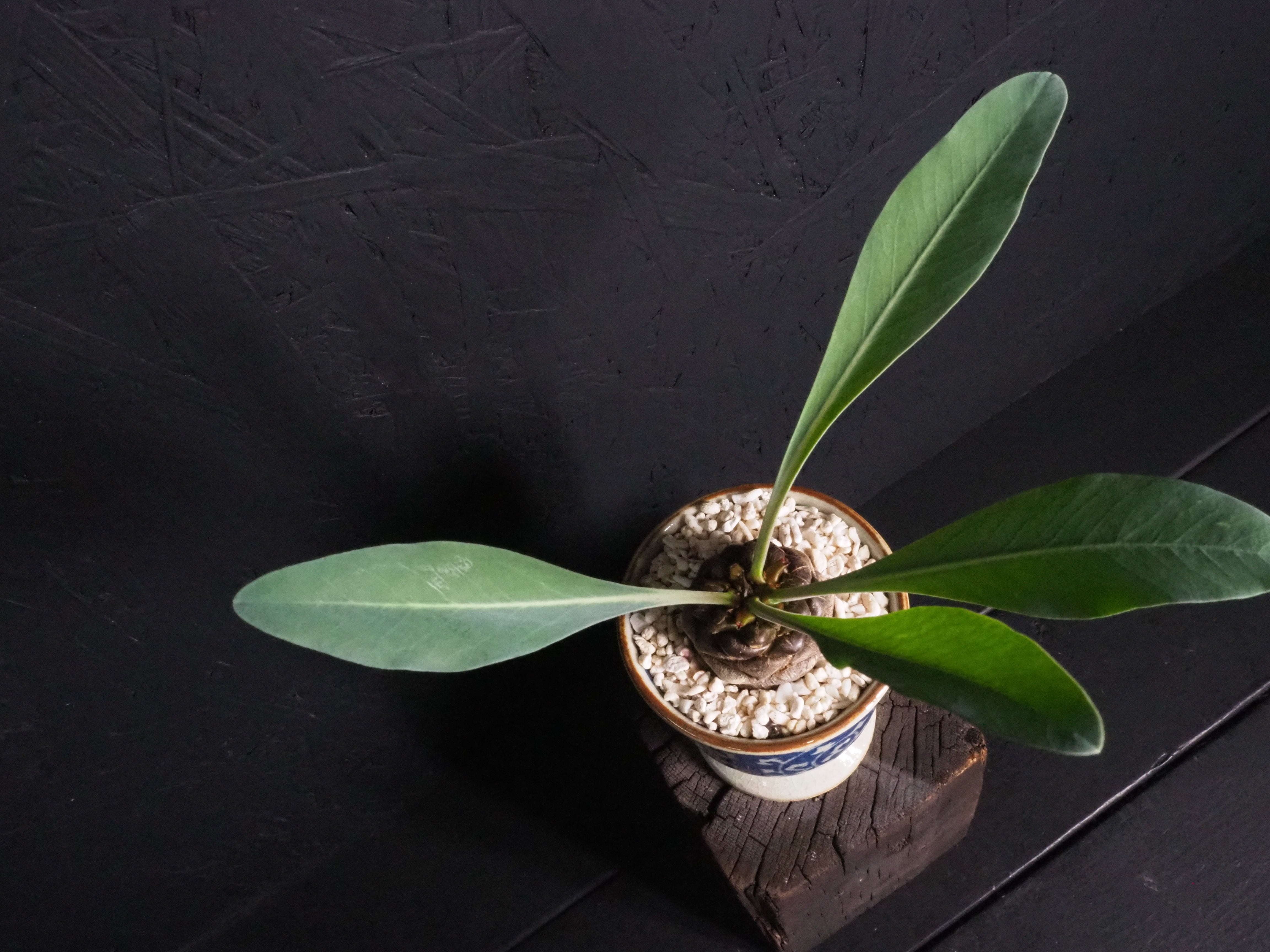 ユーフォルビアのなかでも少し性質が神経質ですが、基本的には他のユーフォルビアと同じ扱いで管理してくださいね。陽当たりと風通し良くは大原則で、鉢内の過湿は厳禁です。給水後はしっかり完全に用土を乾かしてから次の水やりをしてください。